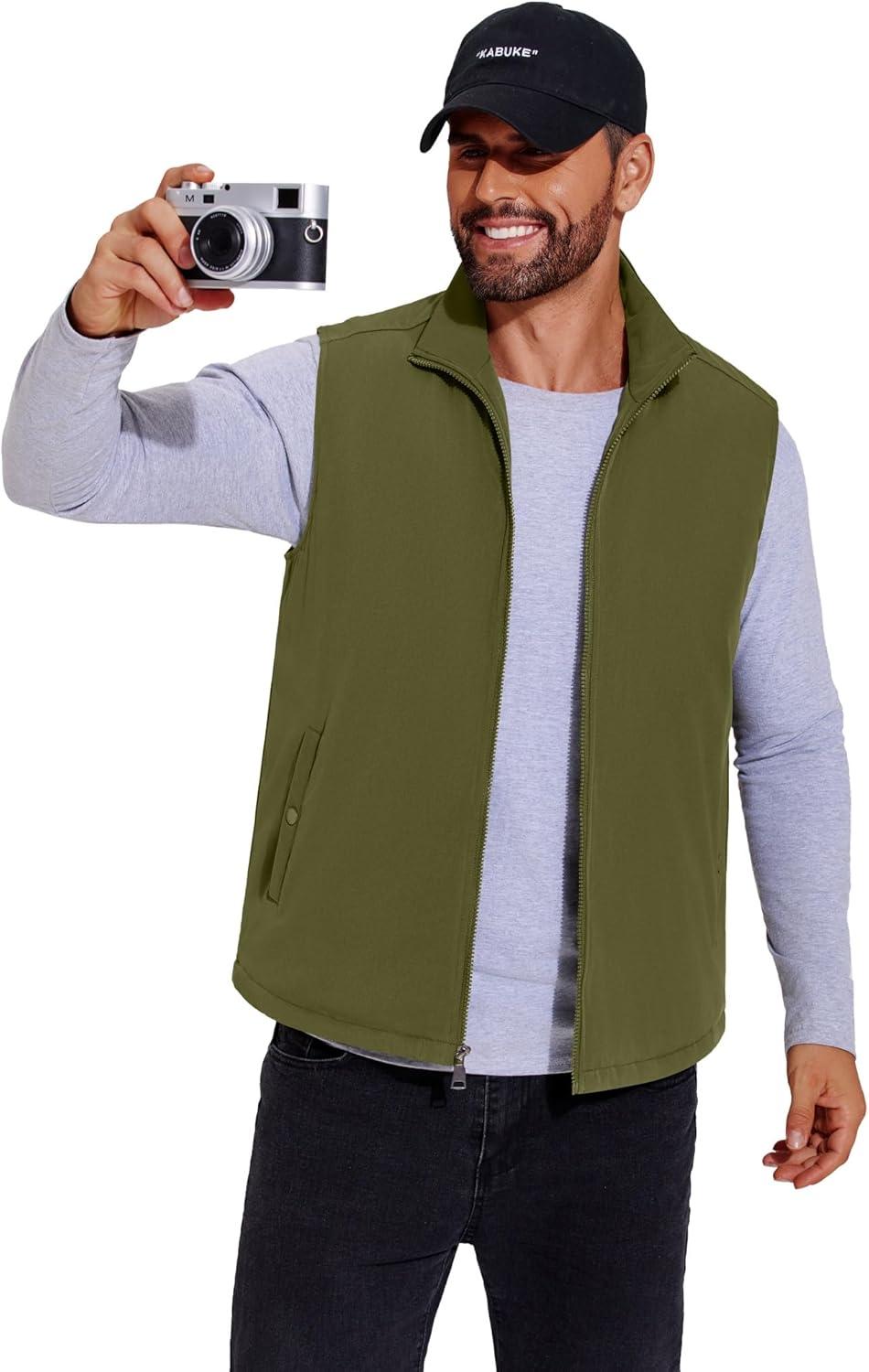 COOFANDY Men’s Casual Outerwear Vest Lightweight Full-Zip Sleeveless Jacket Outdoor Hiking Travel Golf Vest with Pockets(Army Green)