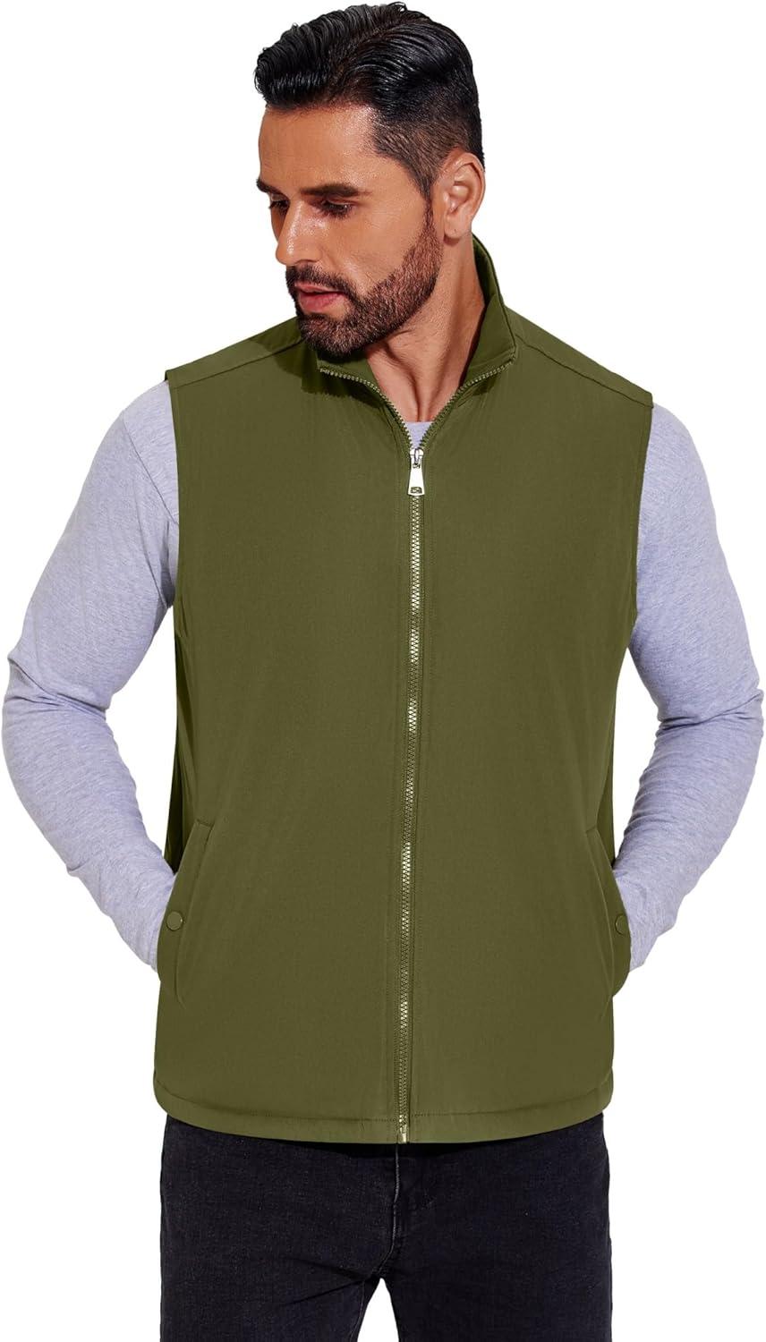 COOFANDY Men's Casual Outerwear Vest Lightweight Full-Zip Sleeveless Jacket Outdoor Hiking Travel Golf Vest with Pockets(Army Green)
