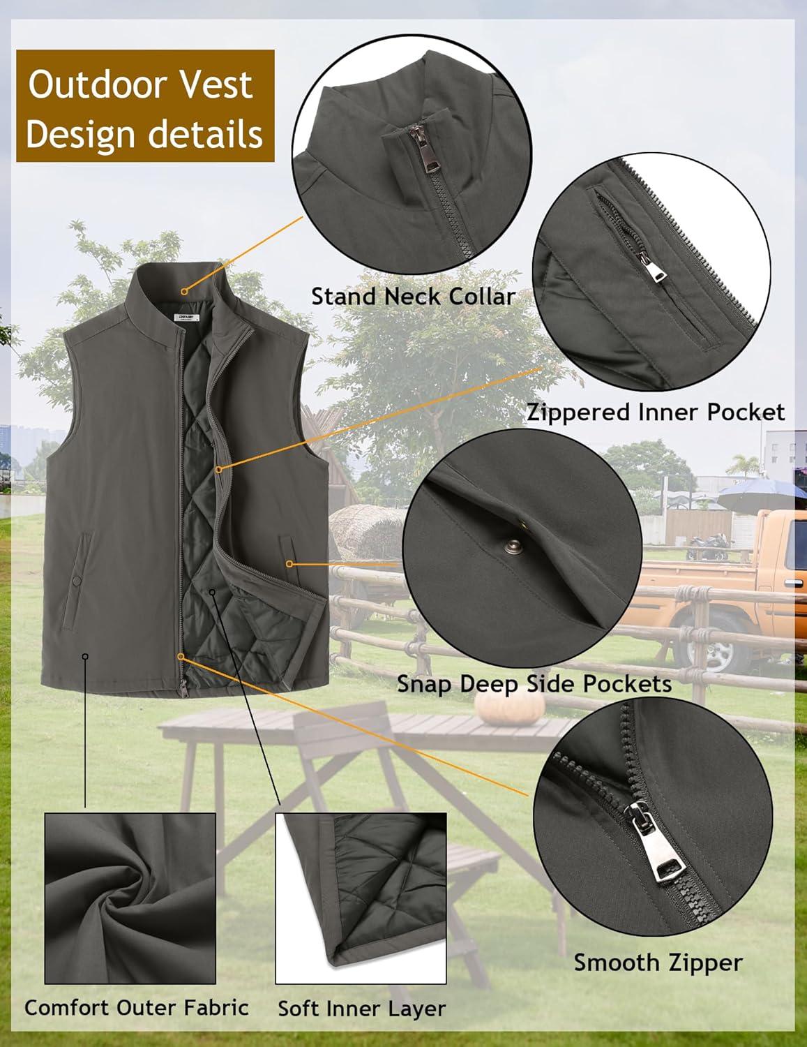 COOFANDY Men's Casual Outerwear Vest Lightweight Full-Zip Sleeveless Jacket Outdoor Hiking Travel Golf Vest with Pockets(Dark Grey)
