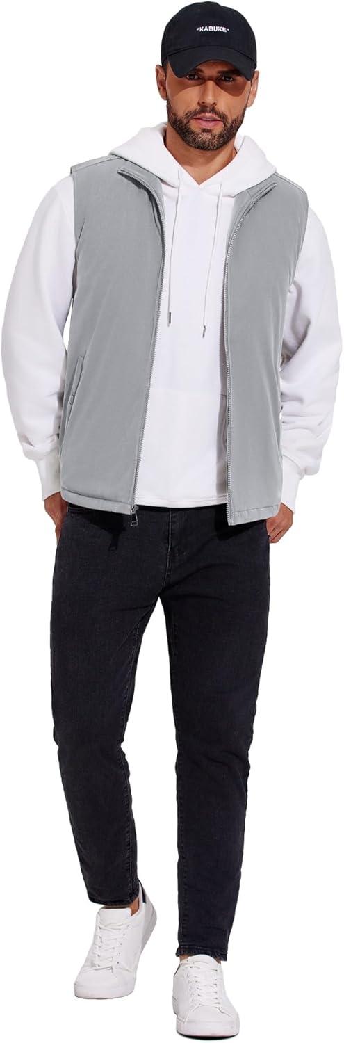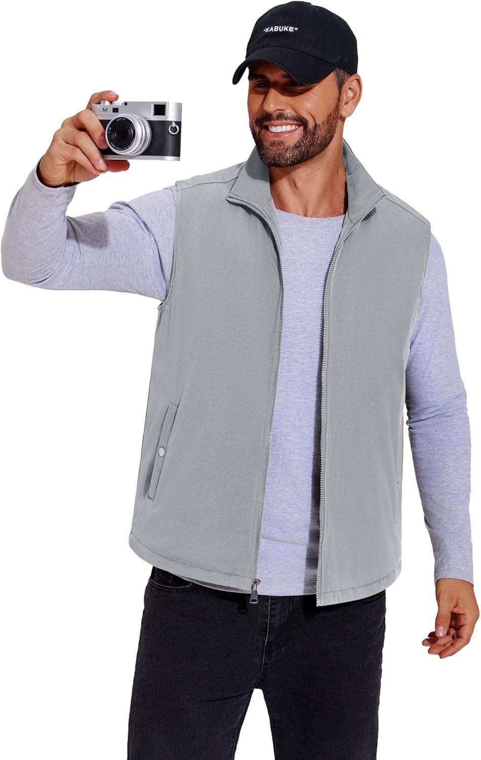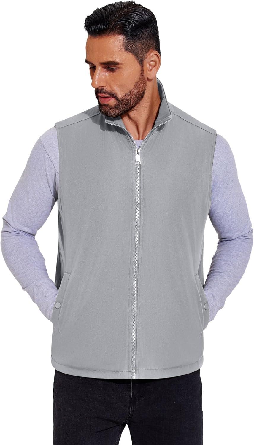 COOFANDY Men's Casual Outerwear Vest Lightweight Full-Zip Sleeveless Jacket Outdoor Hiking Travel Golf Vest with Pockets(Light Grey)