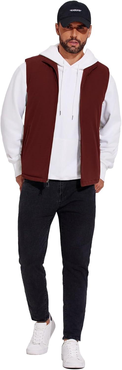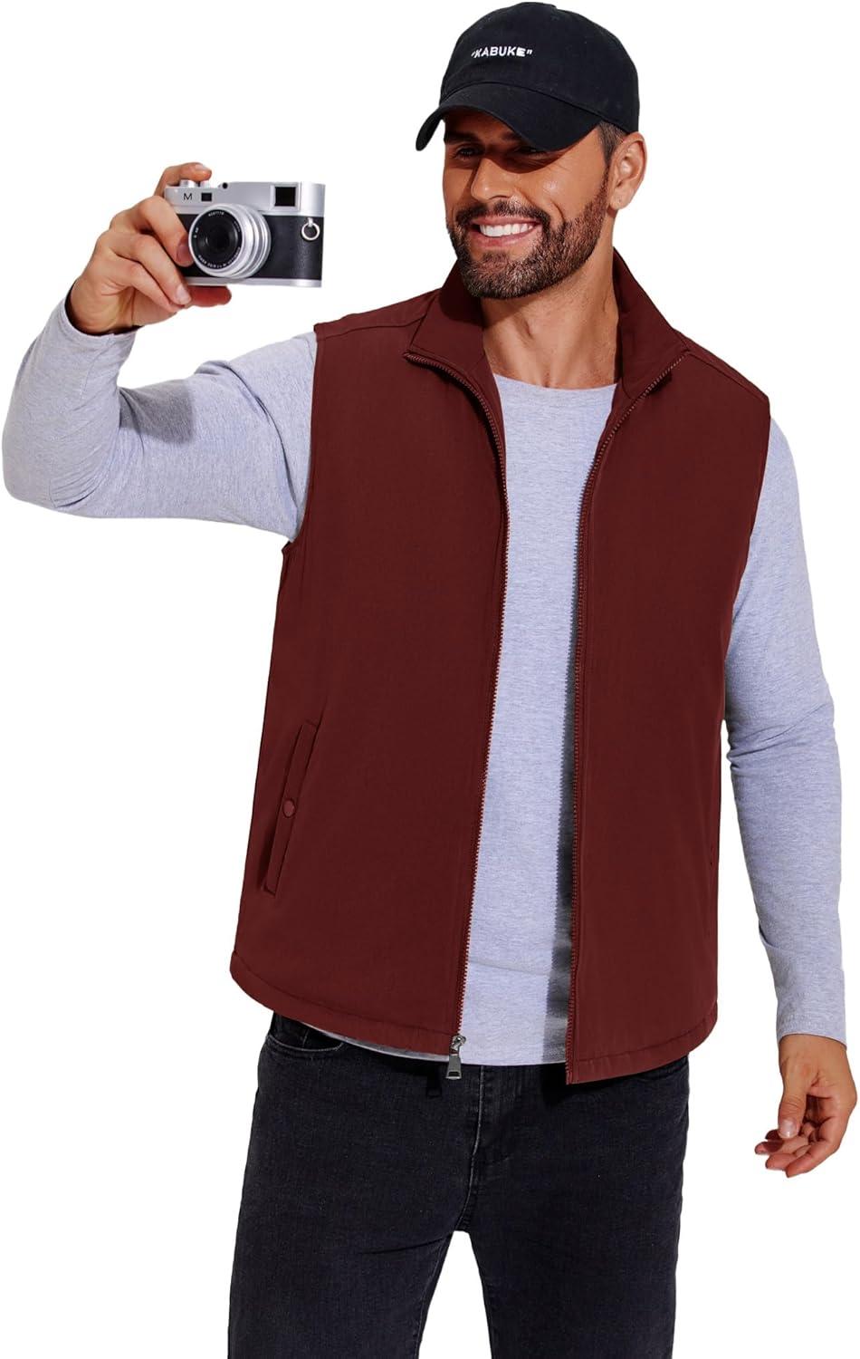 COOFANDY Men's Casual Outerwear Vest Lightweight Full-Zip Sleeveless Jacket Outdoor Hiking Travel Golf Vest with Pockets(Wine Red)