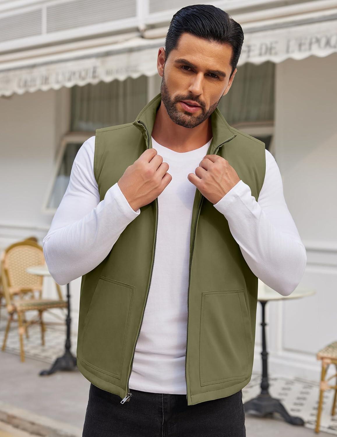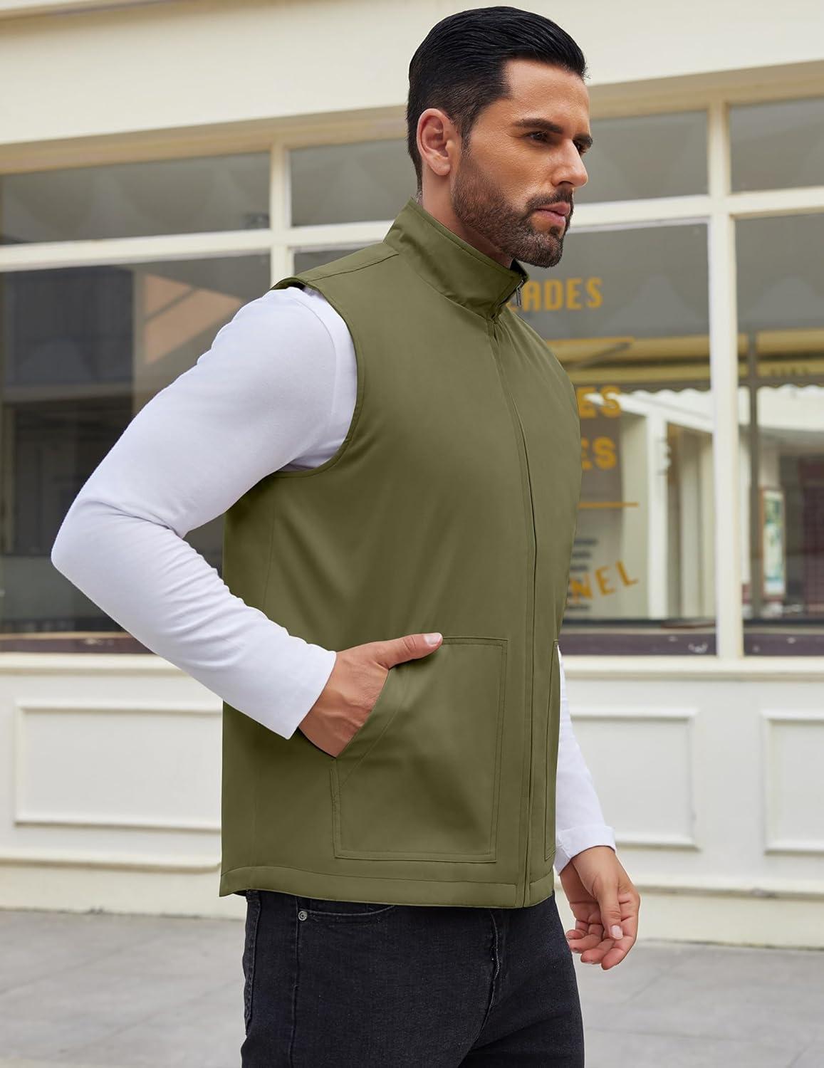 COOFANDY Men's Casual Outerwear Vest Lightweight Zip Up Sleeveless Jacket Outdoor Work Hiking Travel Golf Vest with Pockets(Army Green)