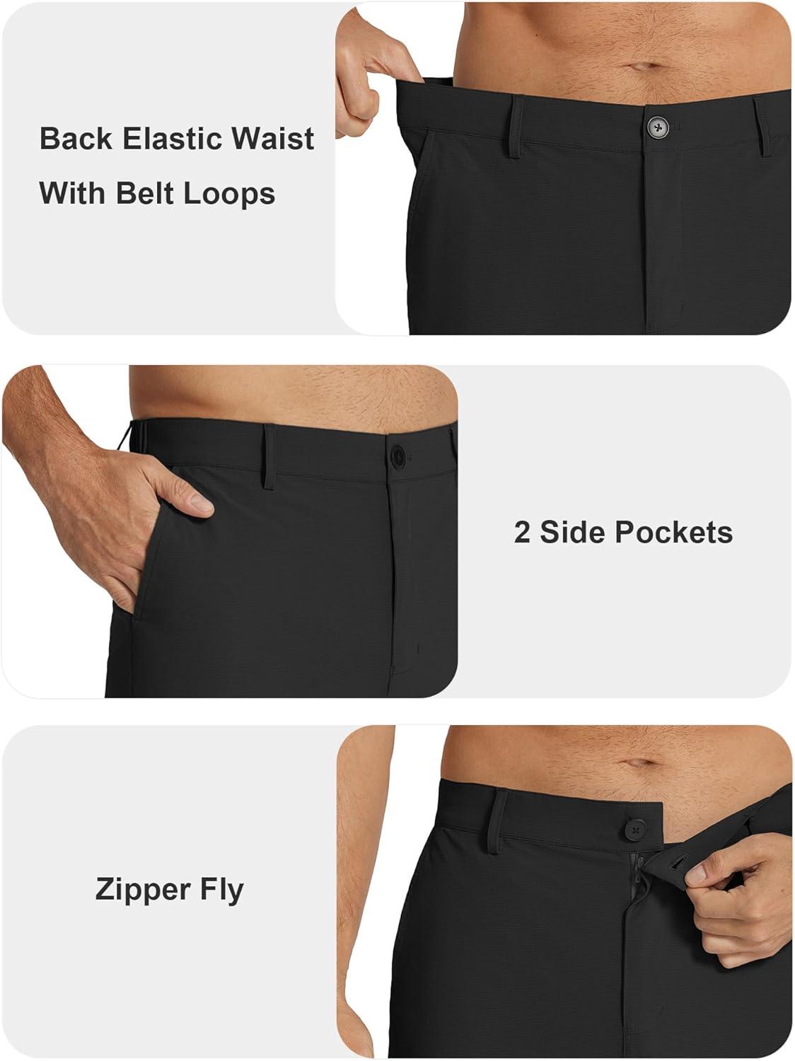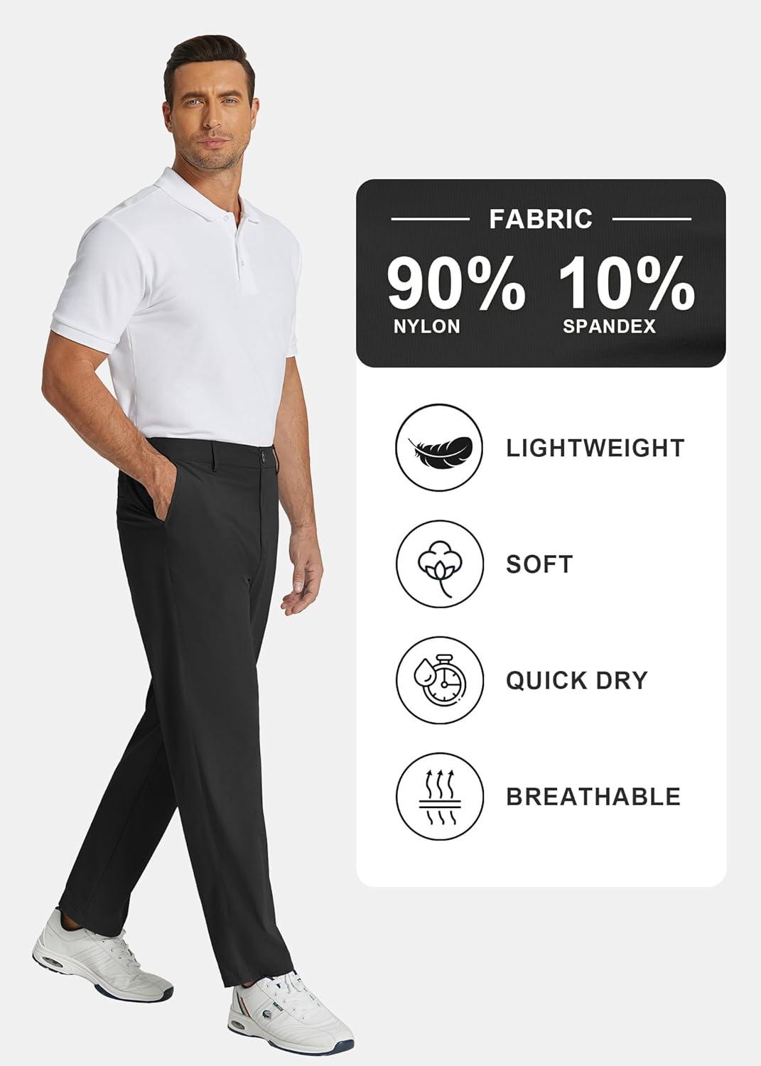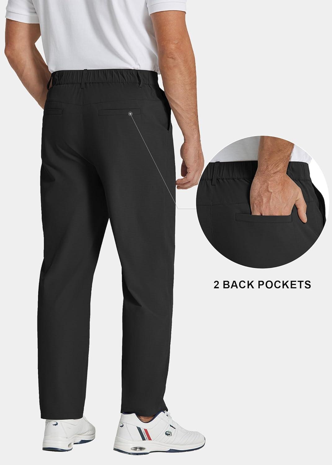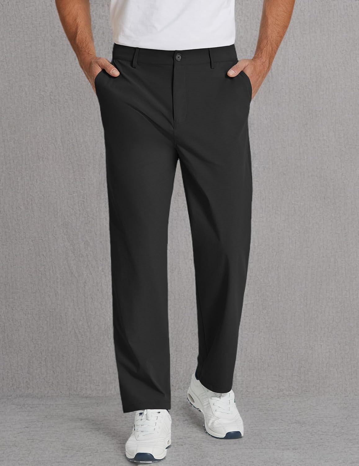 COOFANDY Men's Casual Pants Classic Fit Flat Front Pants Lightweight Elastic Waist Golf Trousers with Pockets(Black)