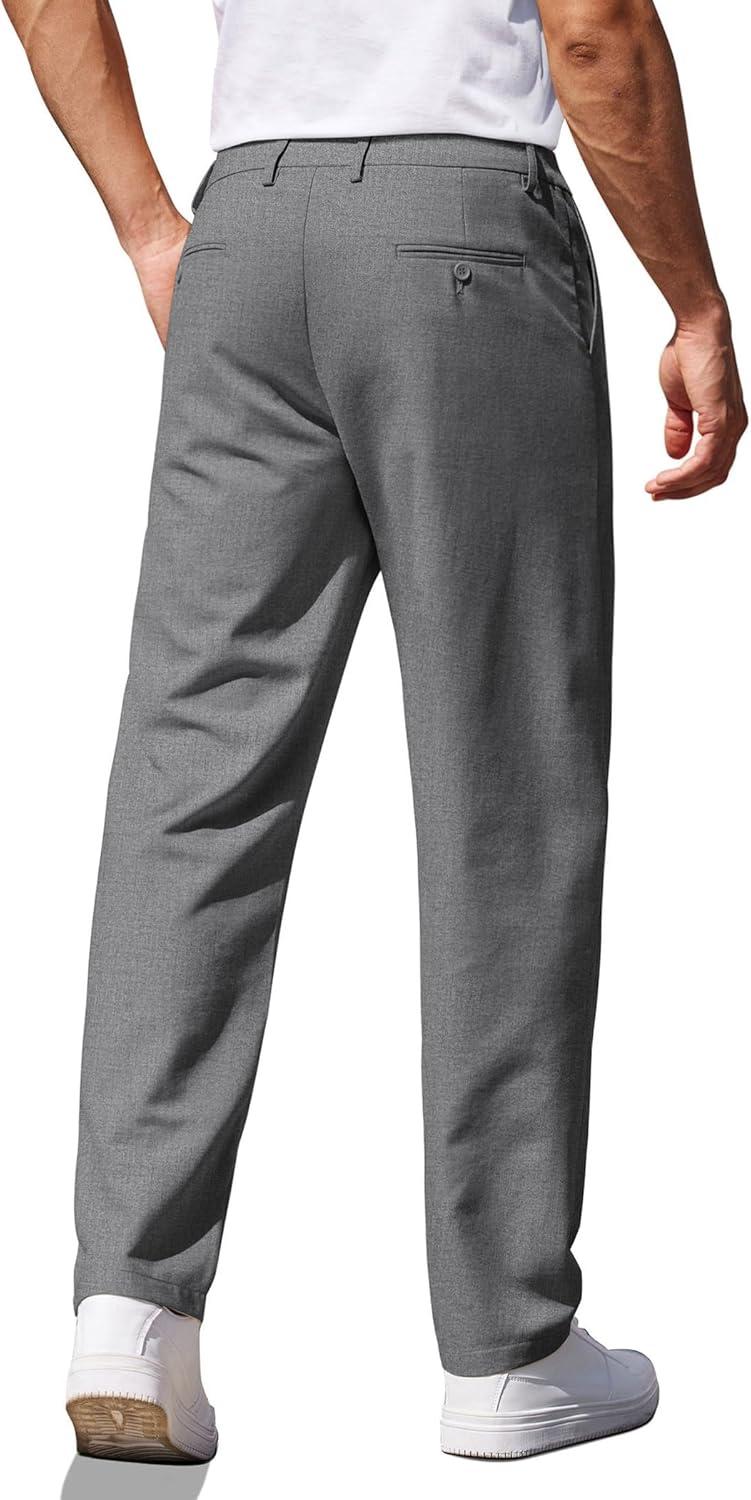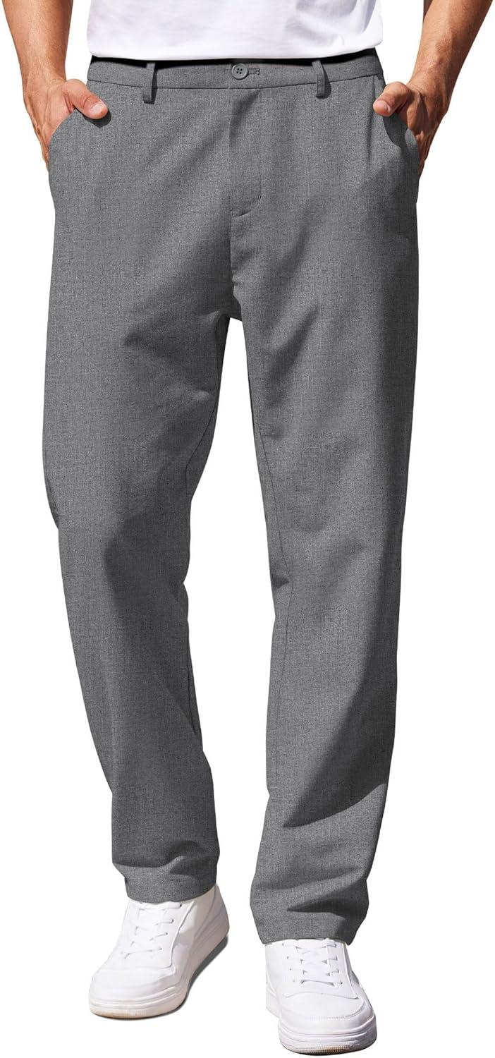 COOFANDY Men's Casual Pants Classic Fit Straight Legs Flat Front Twill Pants(Grey)