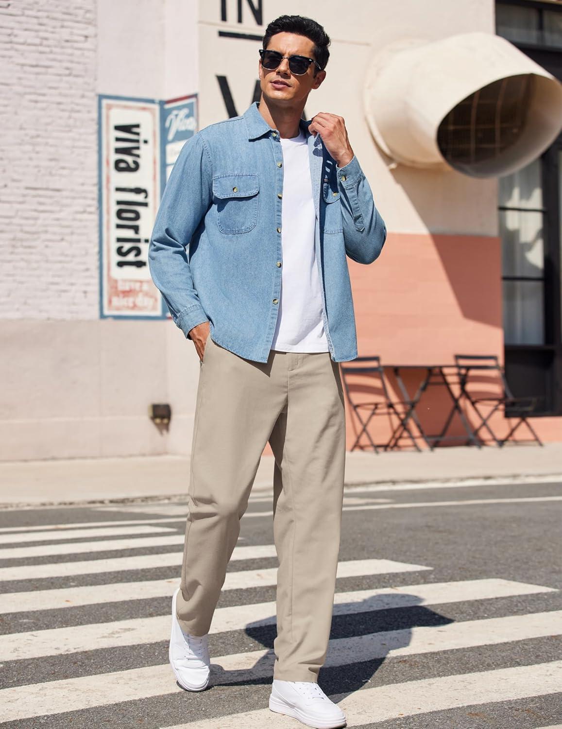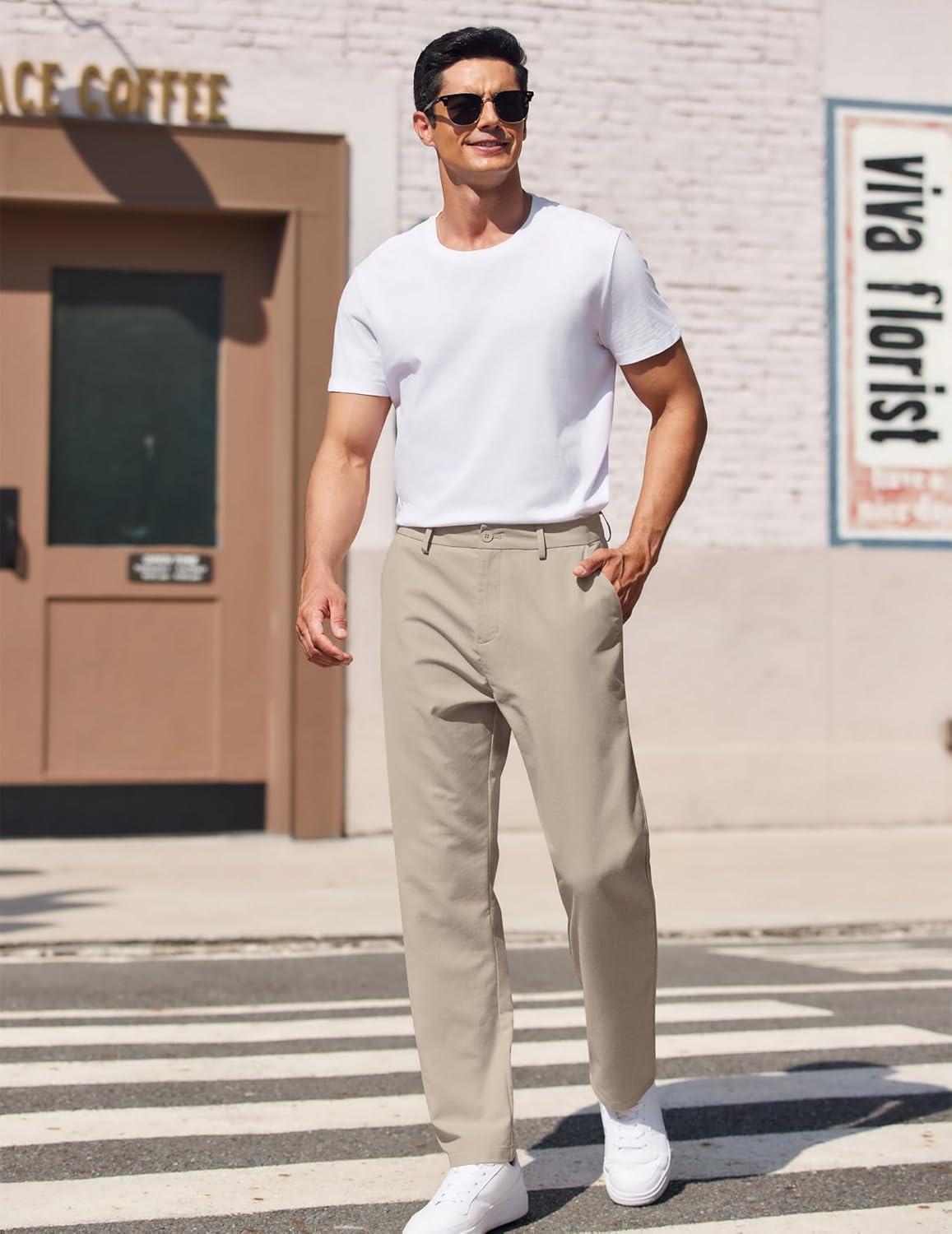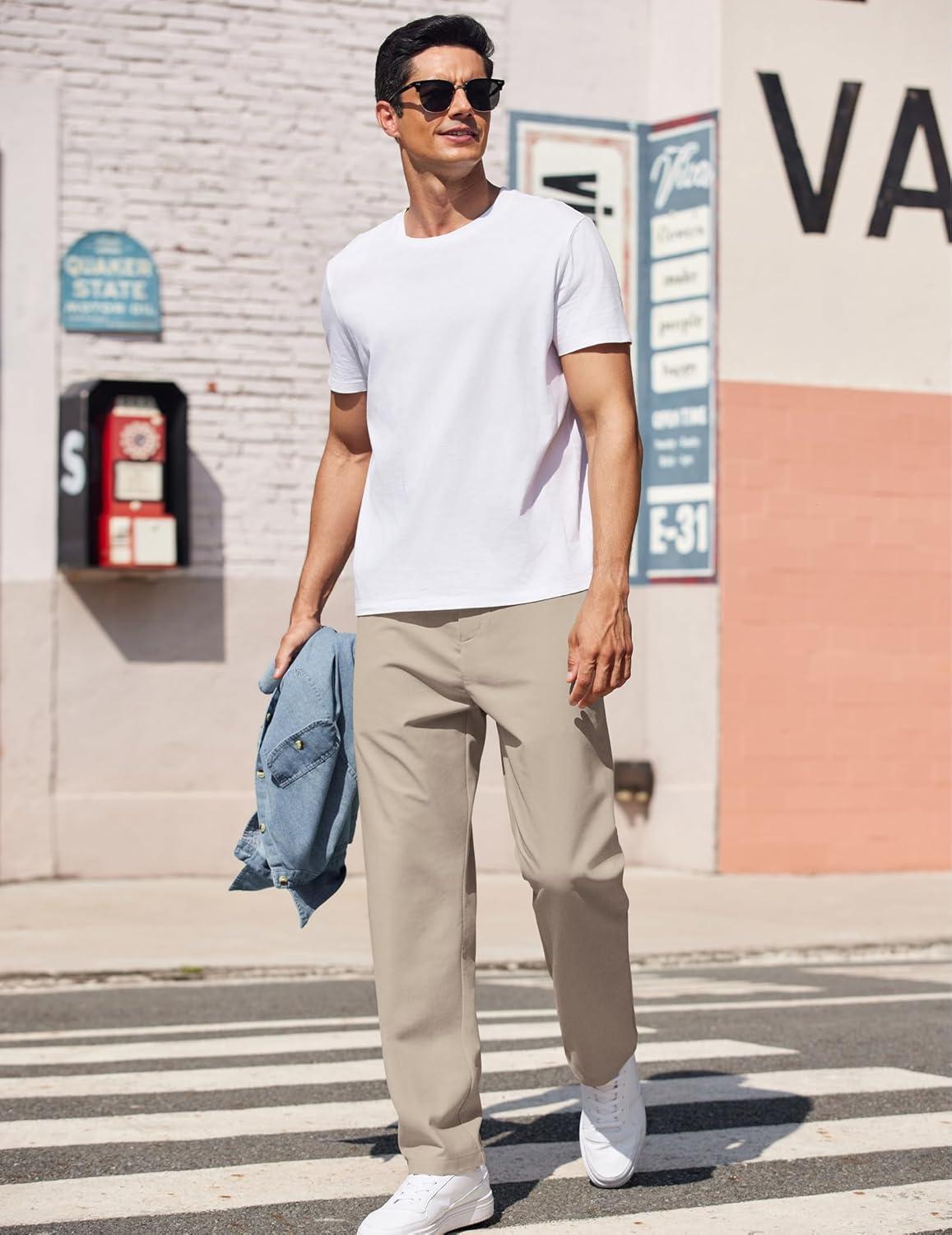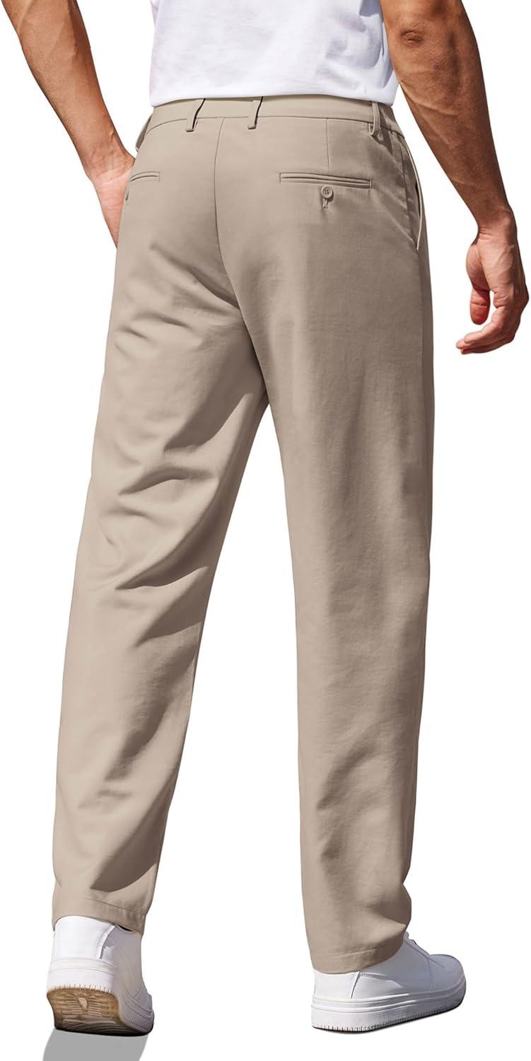 Men's Casual Slacks Relaxed Fit Flat Front Pant Cotton Chinos Pants