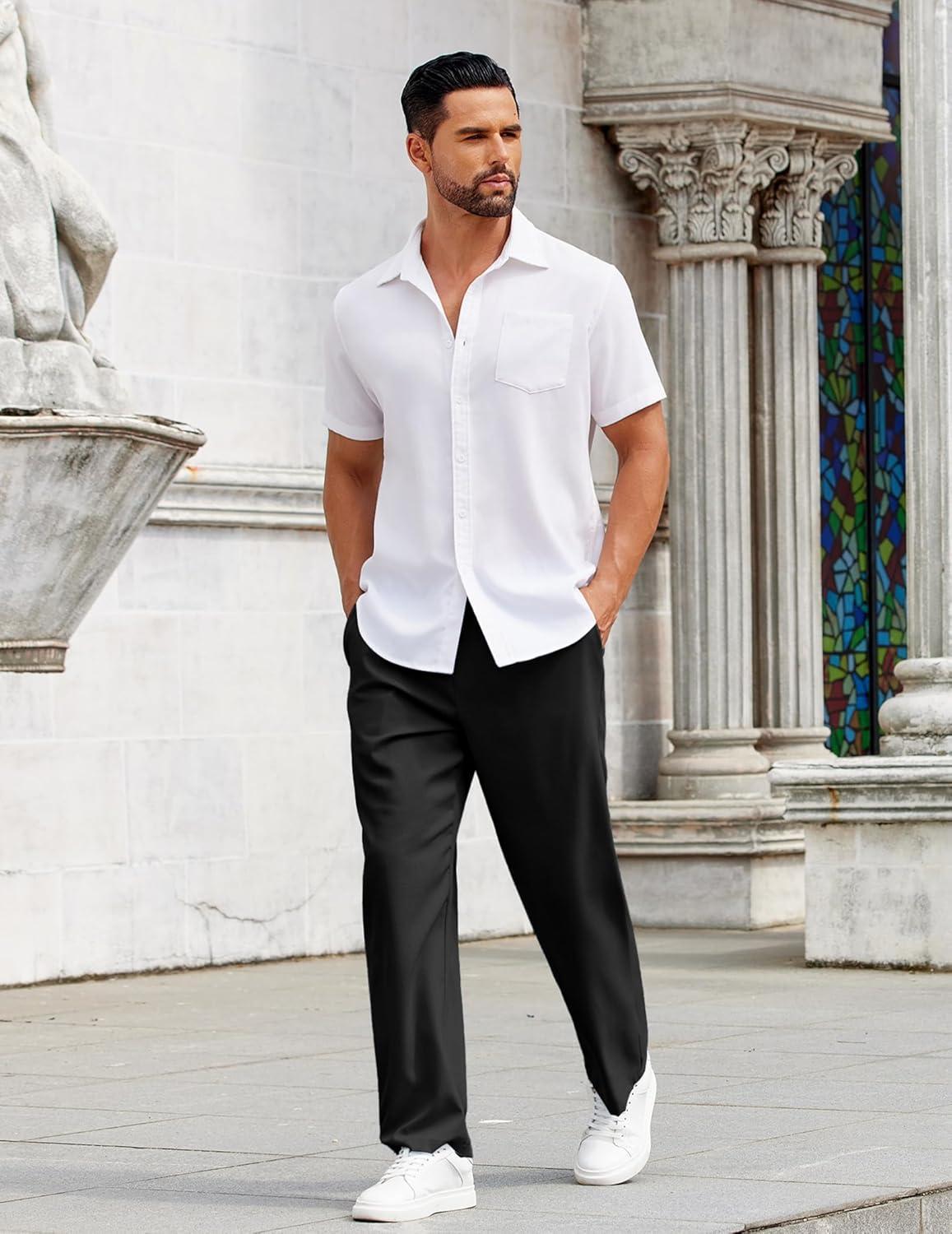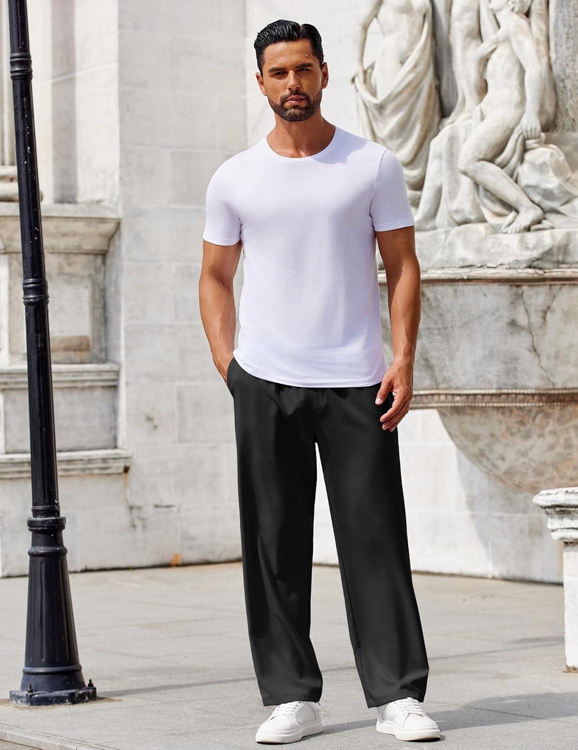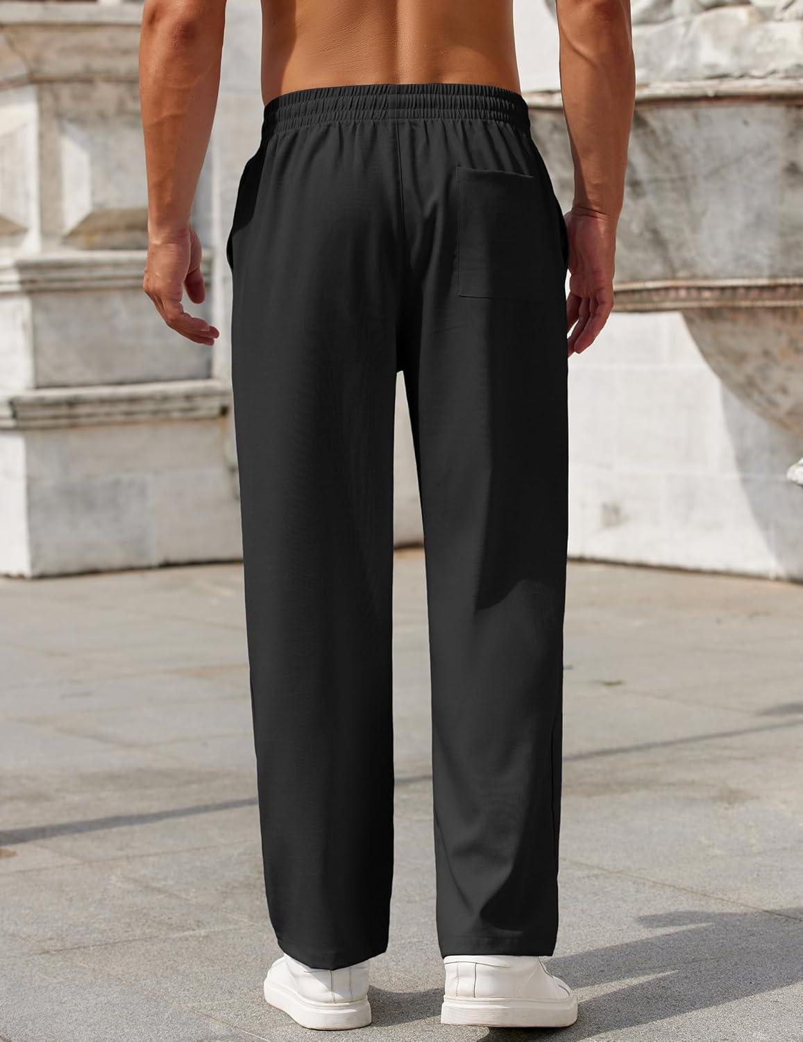 COOFANDY Mens Casual Pants Drawstring Elastic Waist Pants Linen Summer Beach Pants(Black)