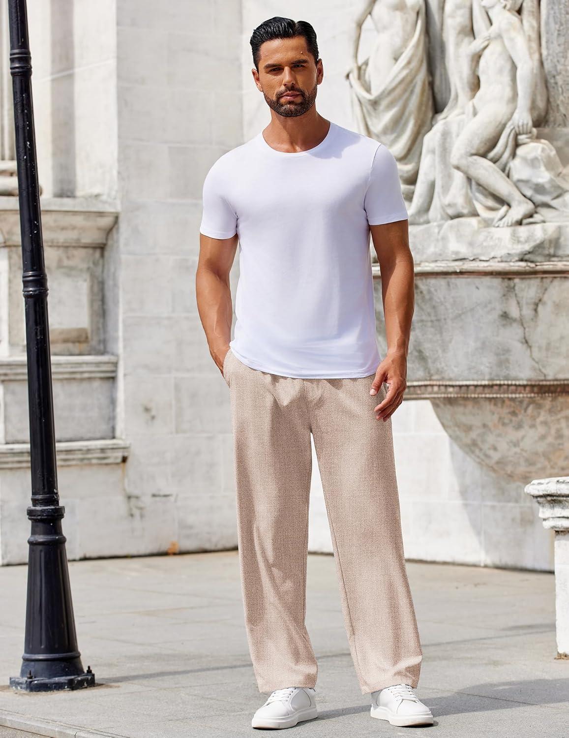 COOFANDY Mens Casual Pants Drawstring Elastic Waist Pants Linen Summer Beach Pants(Beige)