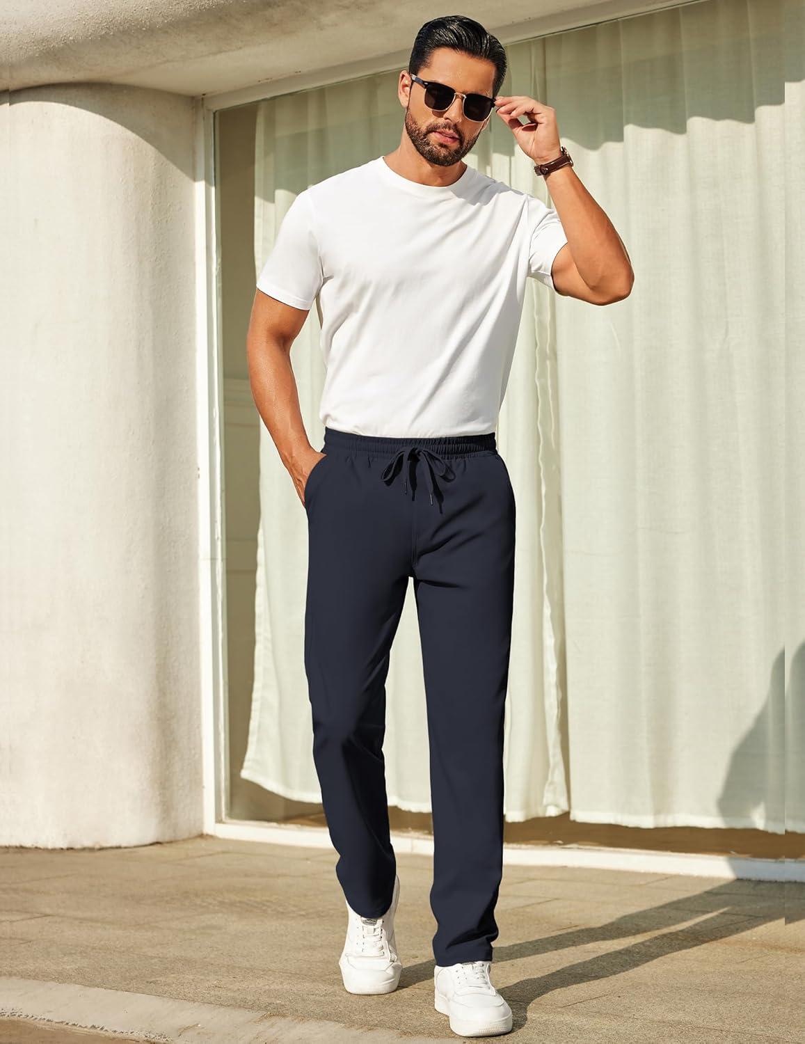 Get the COOFANDY Mens Casual Pants Elastic Waist Chino Pants Lightweight Drawstring Pants with Pockets(Navy Blue) you want at a discounted price during our markdown sale event.