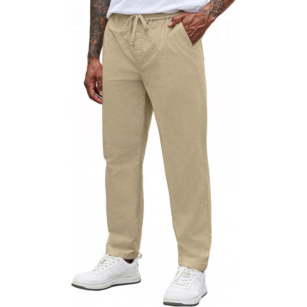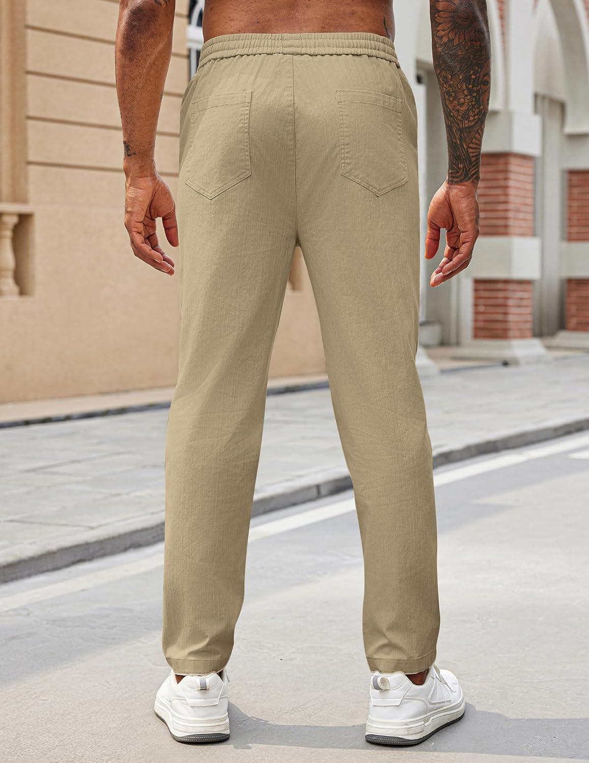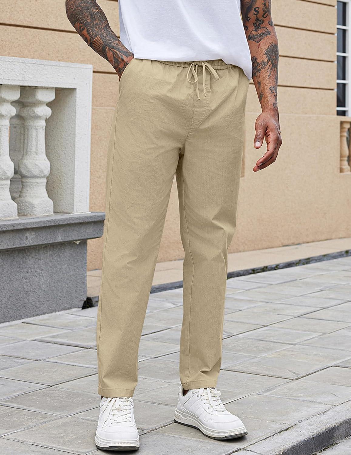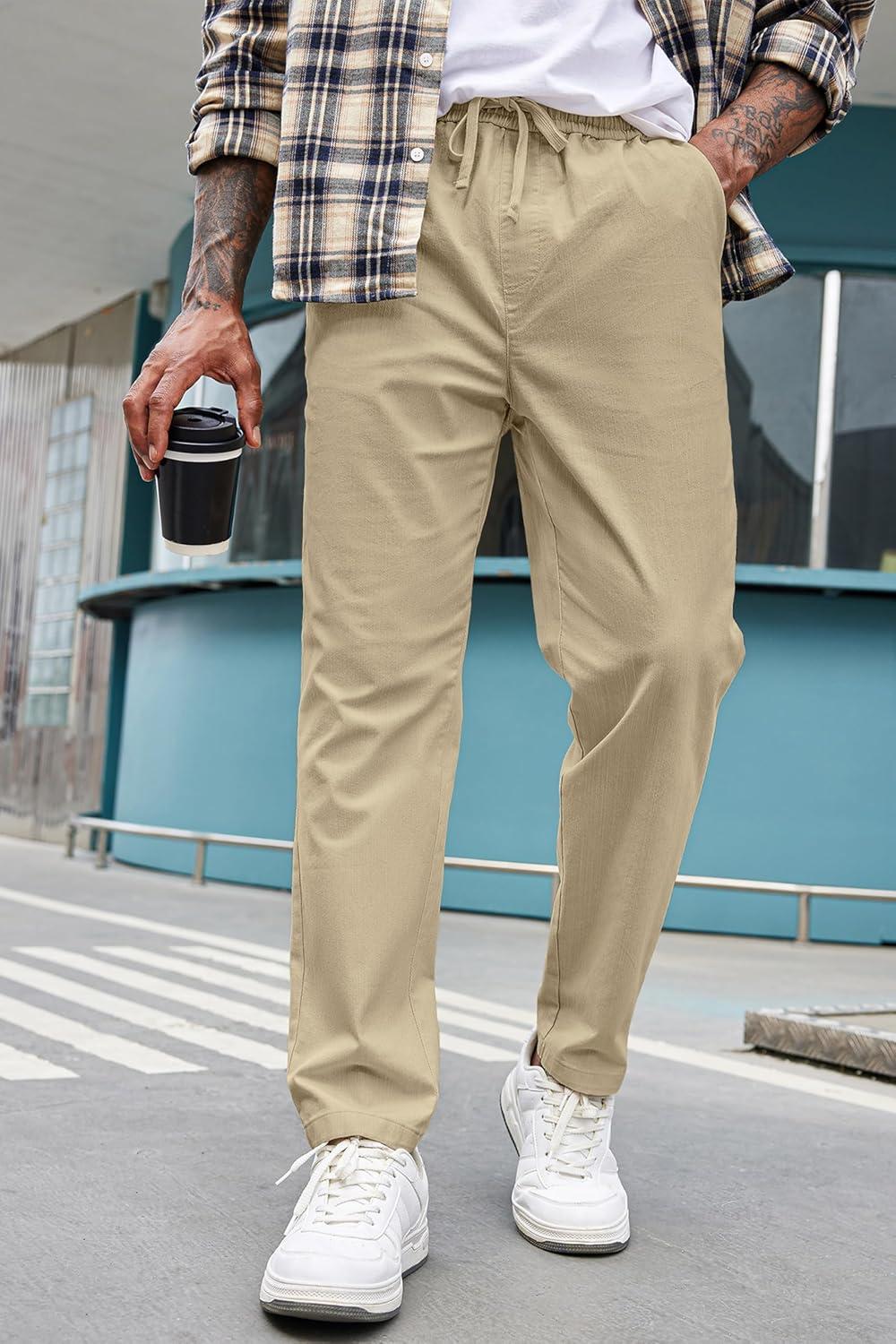 COOFANDY Mens Casual Pants Elastic Waist Drawstring Chino Pants Cotton Twill Trousers with Pockets(Khaki)