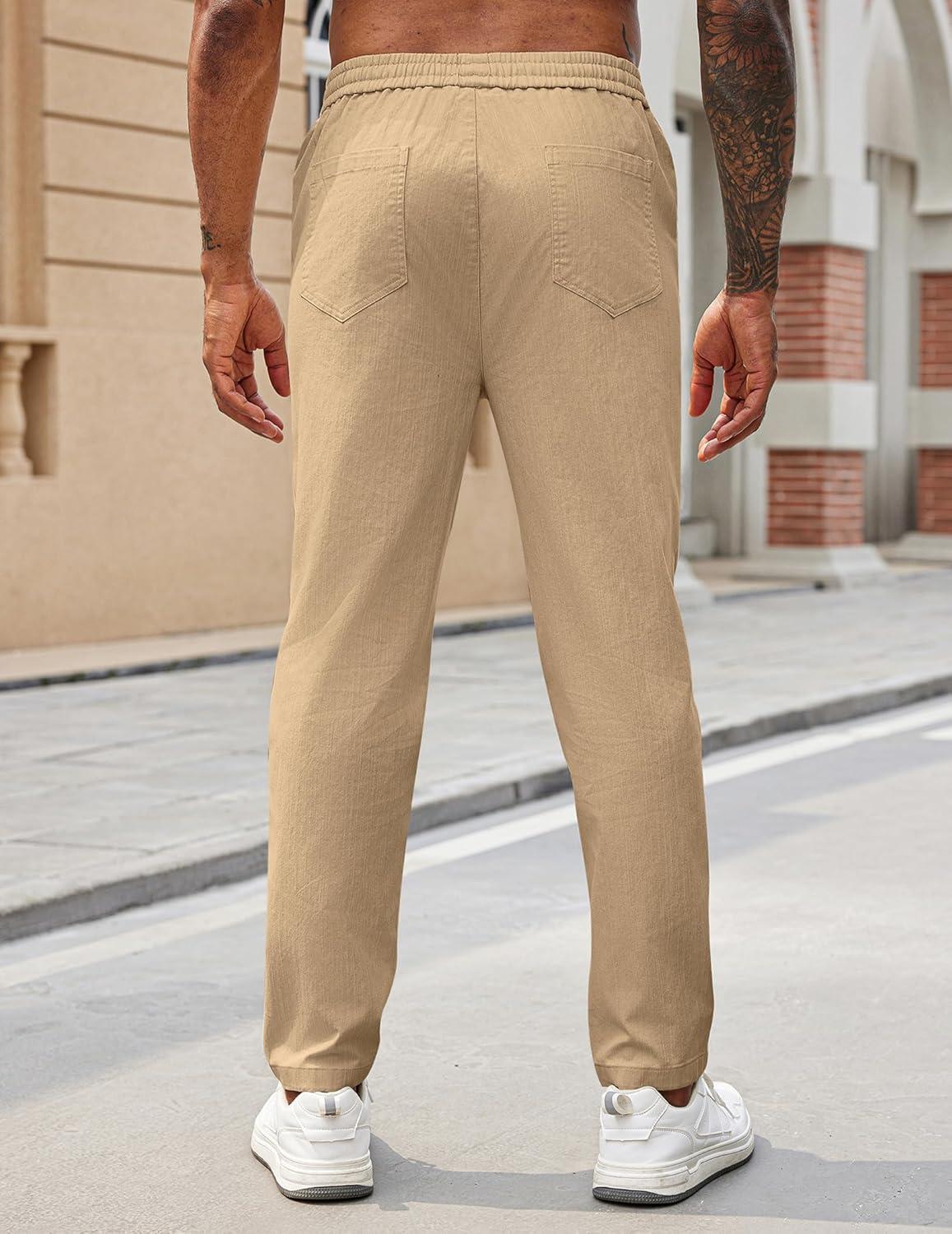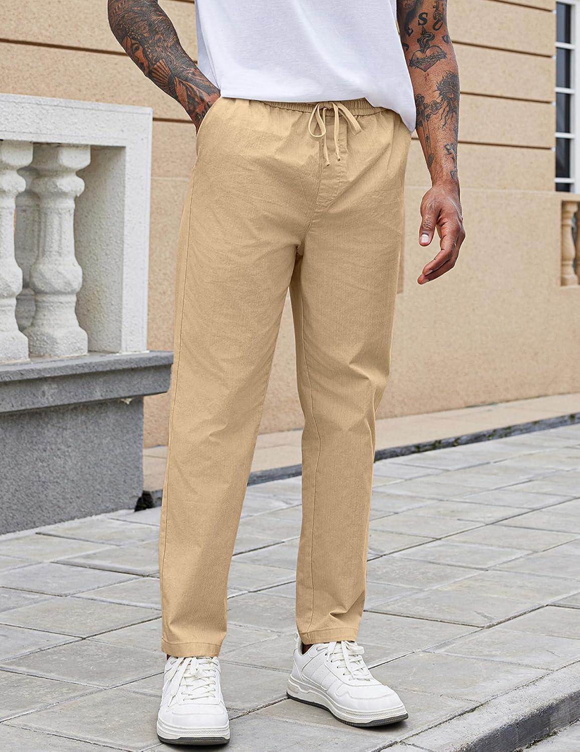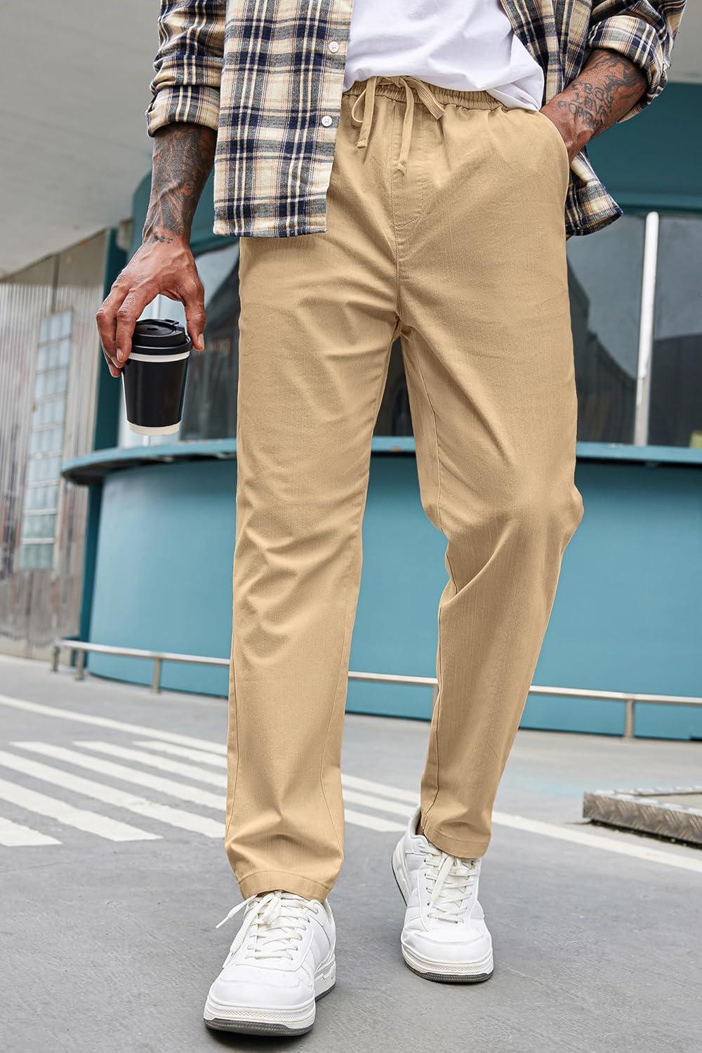 COOFANDY Mens Casual Pants Elastic Waist Drawstring Chino Pants Cotton Twill Trousers with Pockets(Beige)