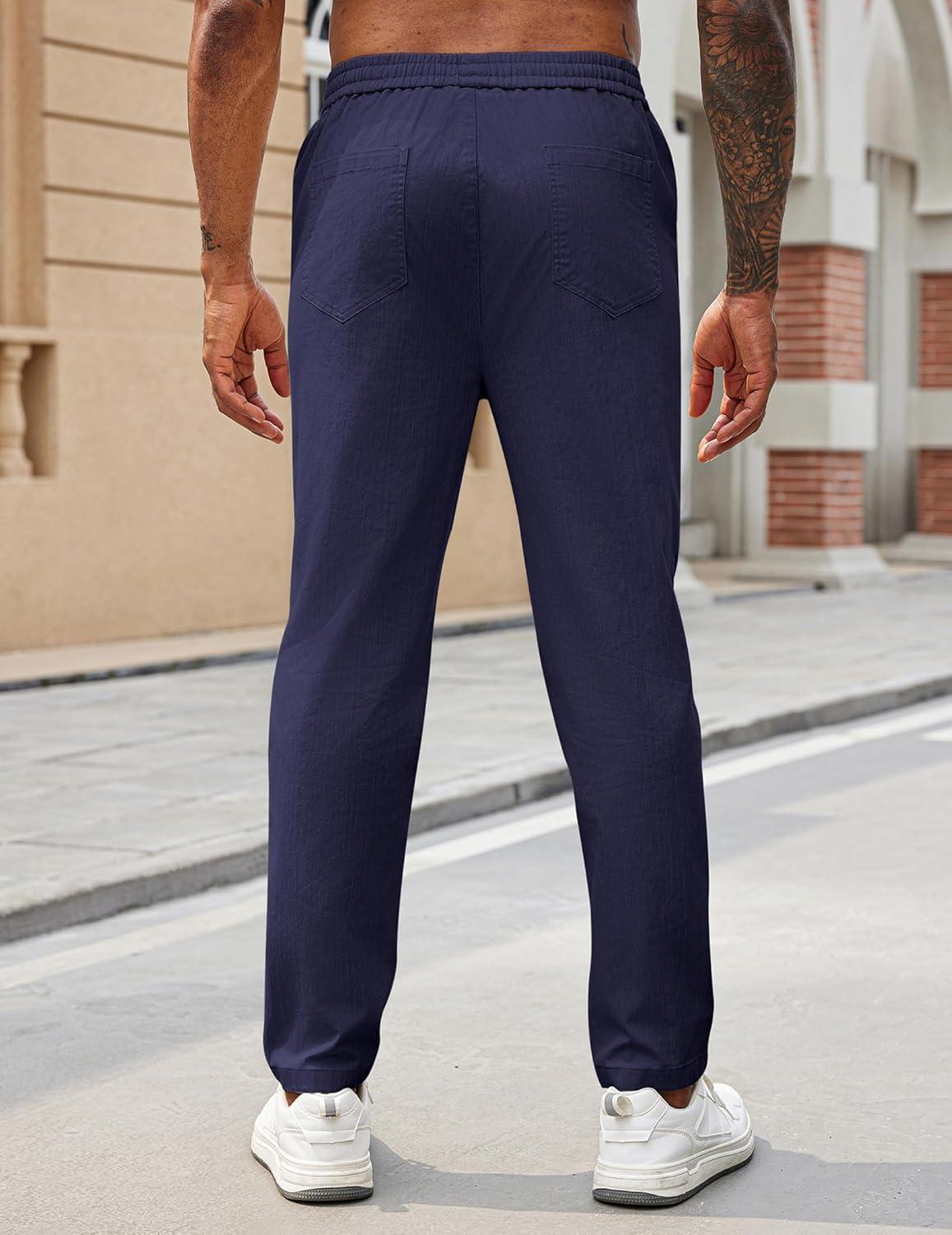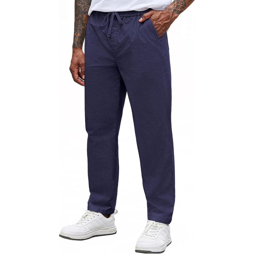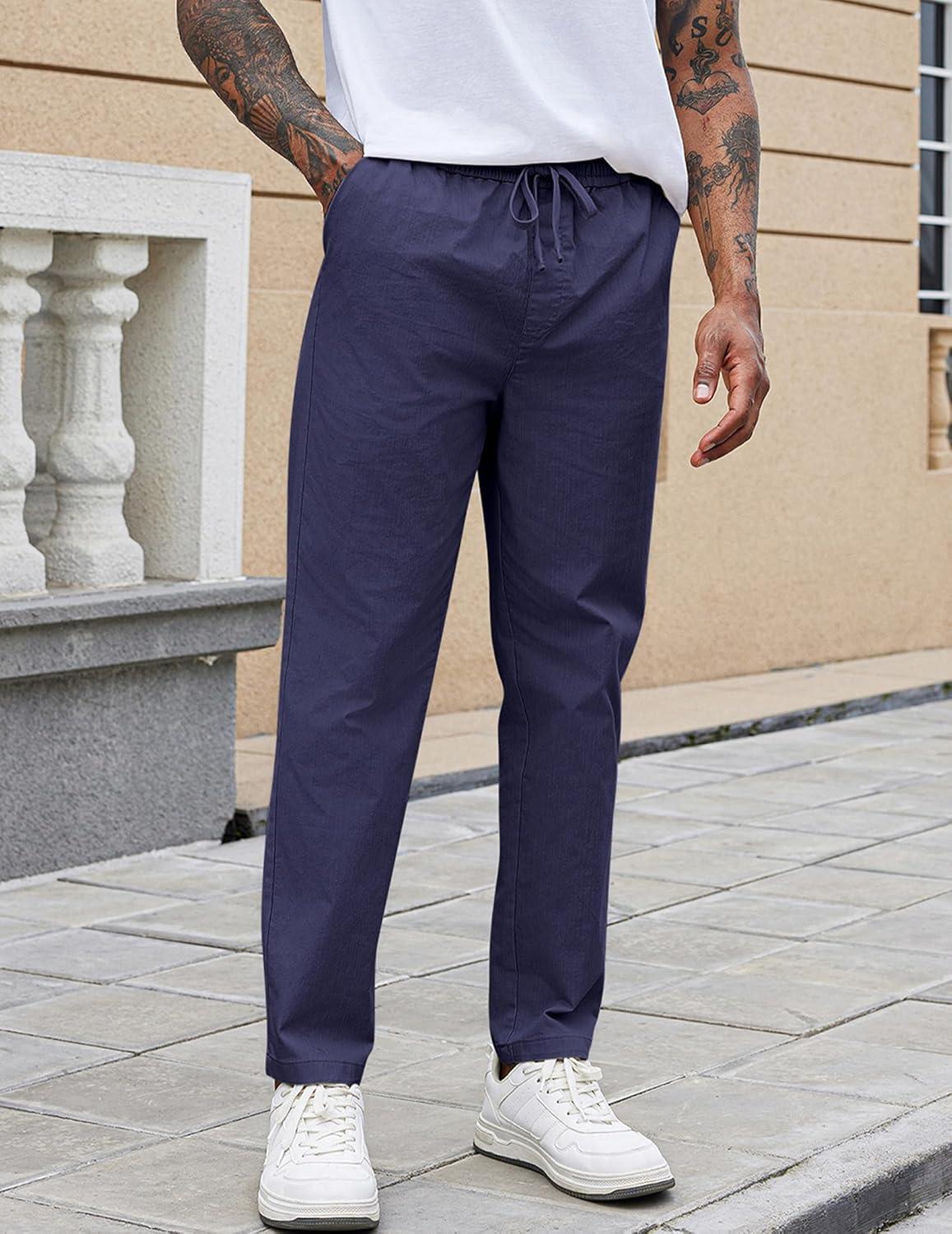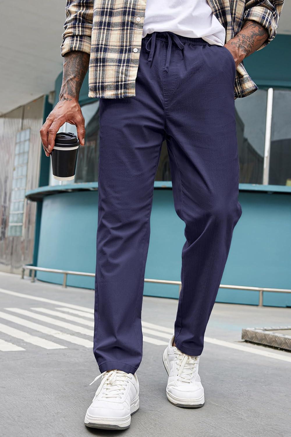 COOFANDY Mens Casual Pants Elastic Waist Drawstring Chino Pants Cotton Twill Trousers with Pockets(Indigo)