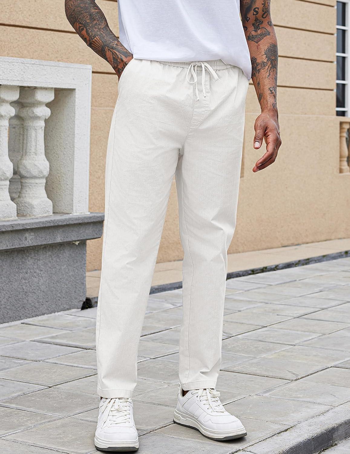 Get the COOFANDY Mens Casual Pants Elastic Waist Drawstring Chino Pants Cotton Twill Trousers with Pockets(White) you’ve been eyeing at a discounted price during our seasonal sale event.