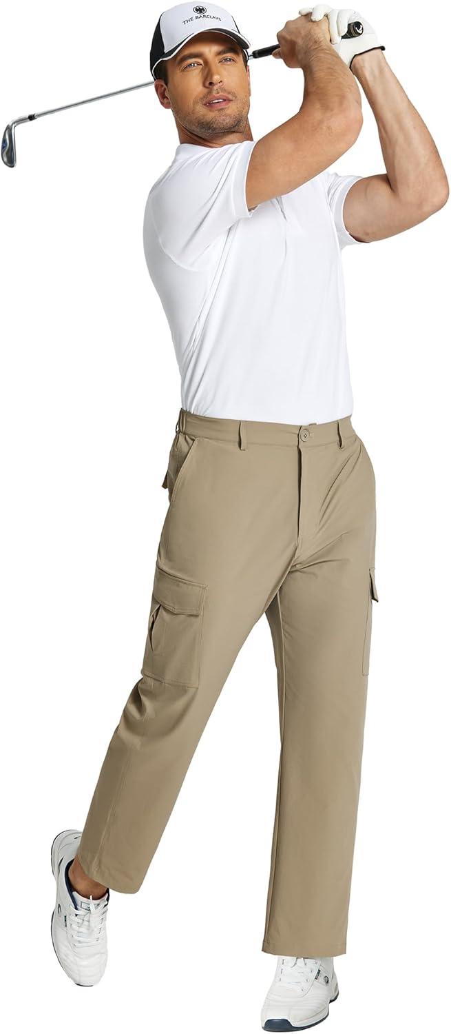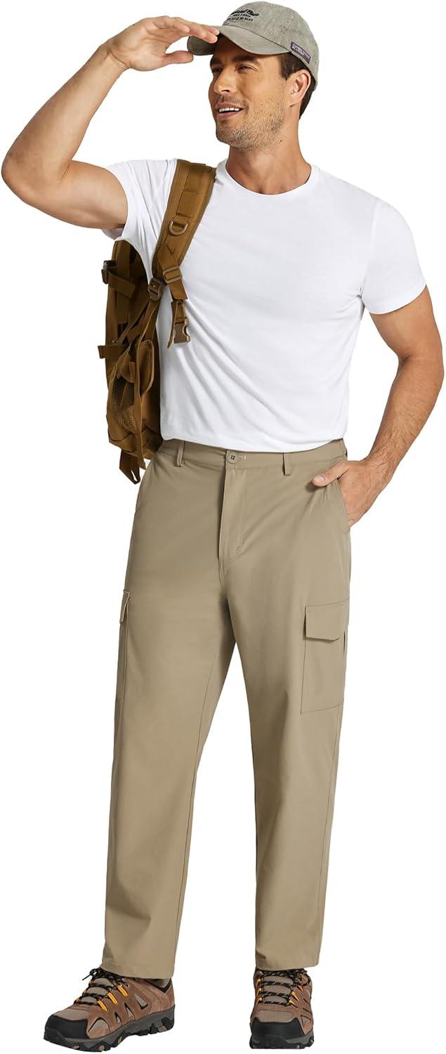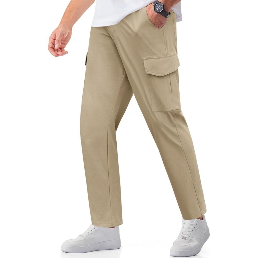 COOFANDY Men’s Casual Pants Lightweight Hiking Cargo Pants Stretch Outdoor Work Pant with Multi Pockets(Khaki)