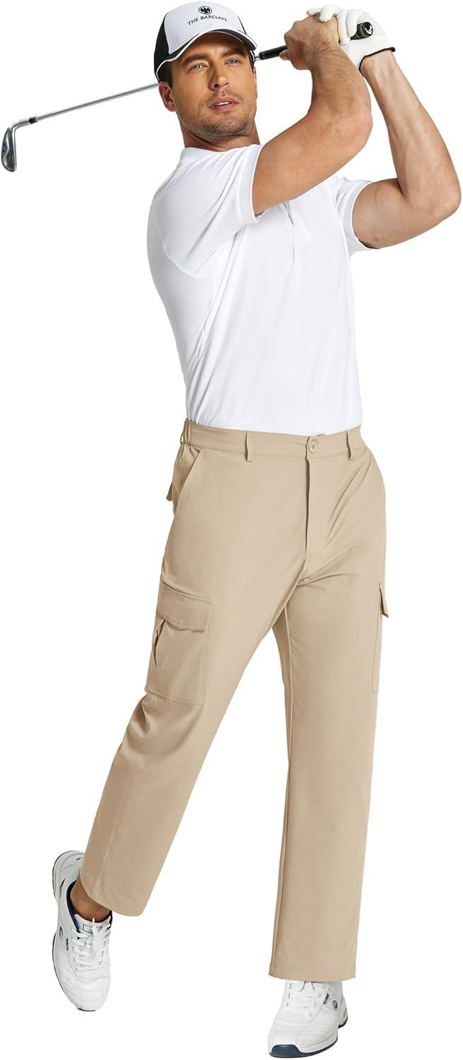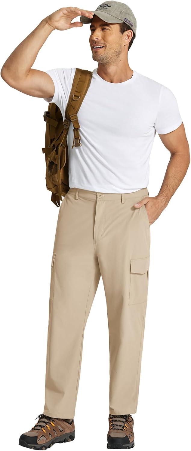COOFANDY Men’s Casual Pants Lightweight Hiking Cargo Pants Stretch Outdoor Work Pant with Multi Pockets(Light Khaki)