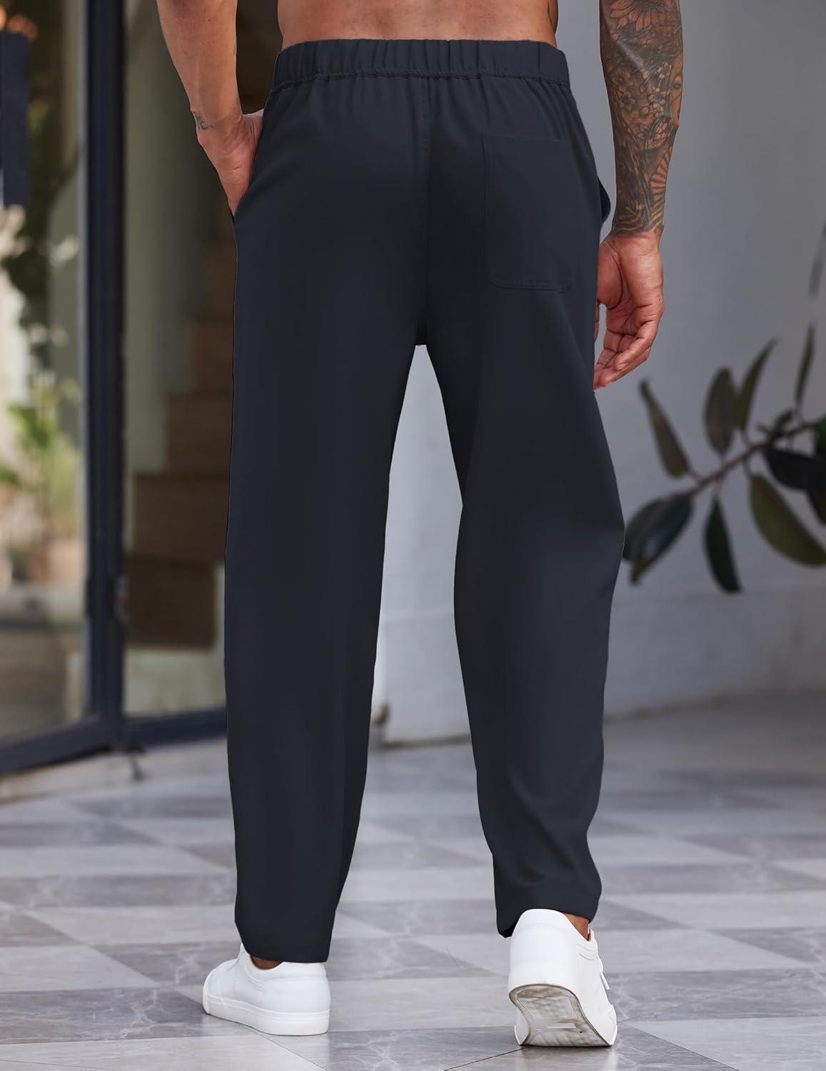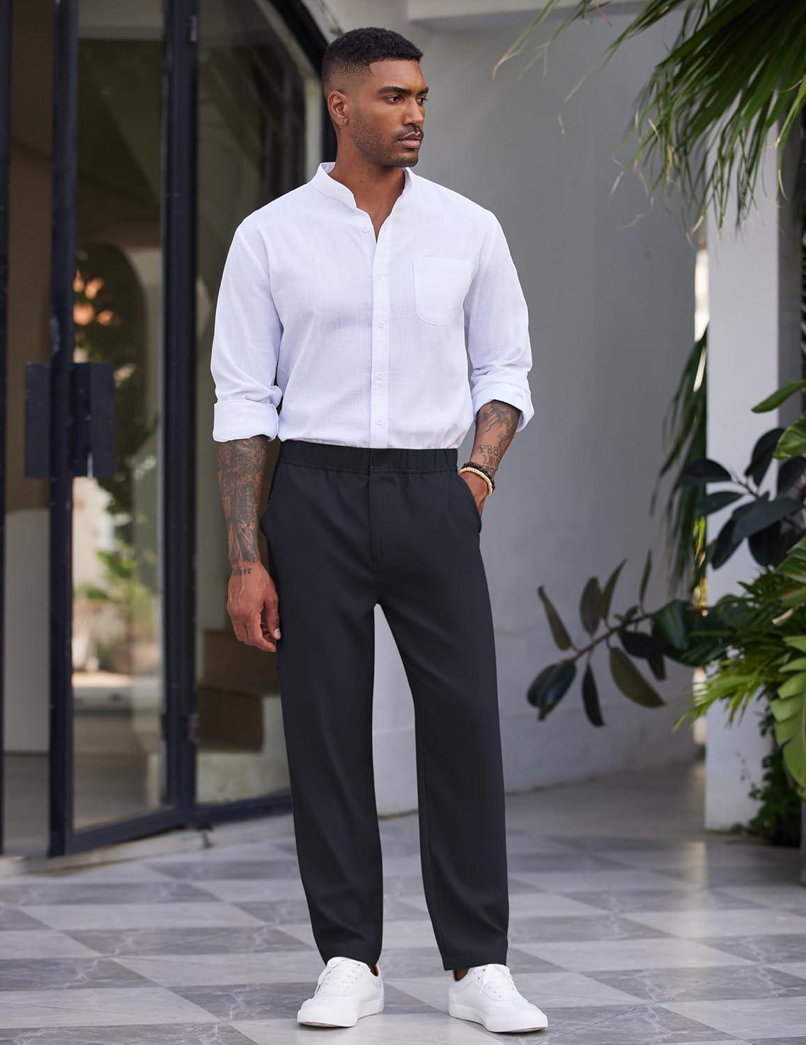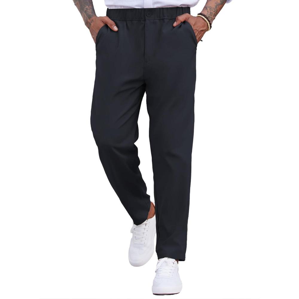 COOFANDY Men’s Casual Pants Relaxed Fit Flat Front Expandable Waist Chino Slack Trousers(Black)