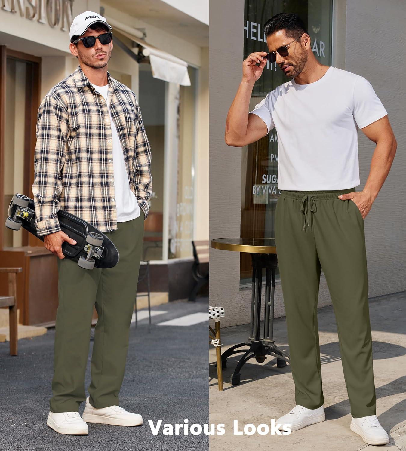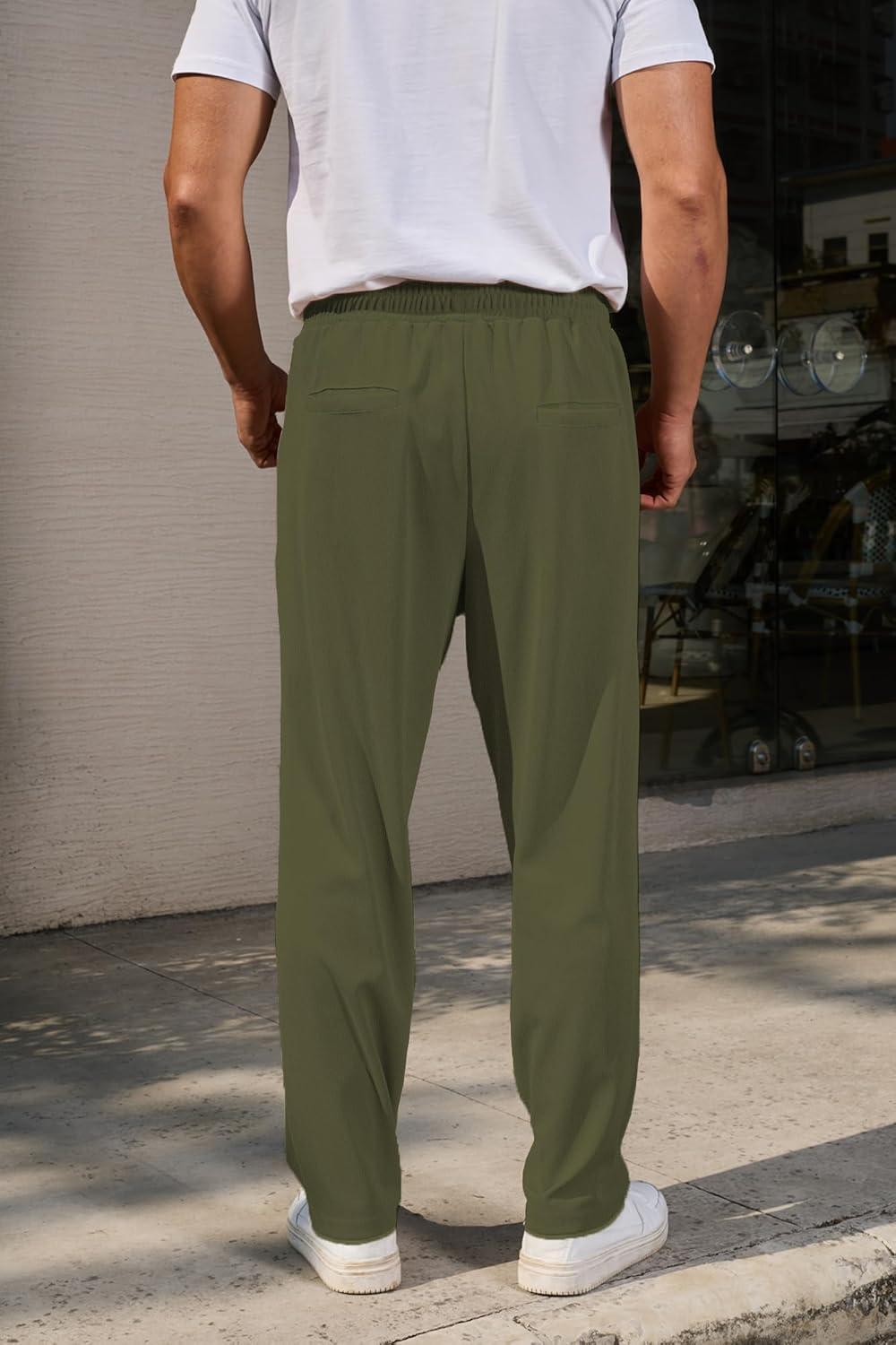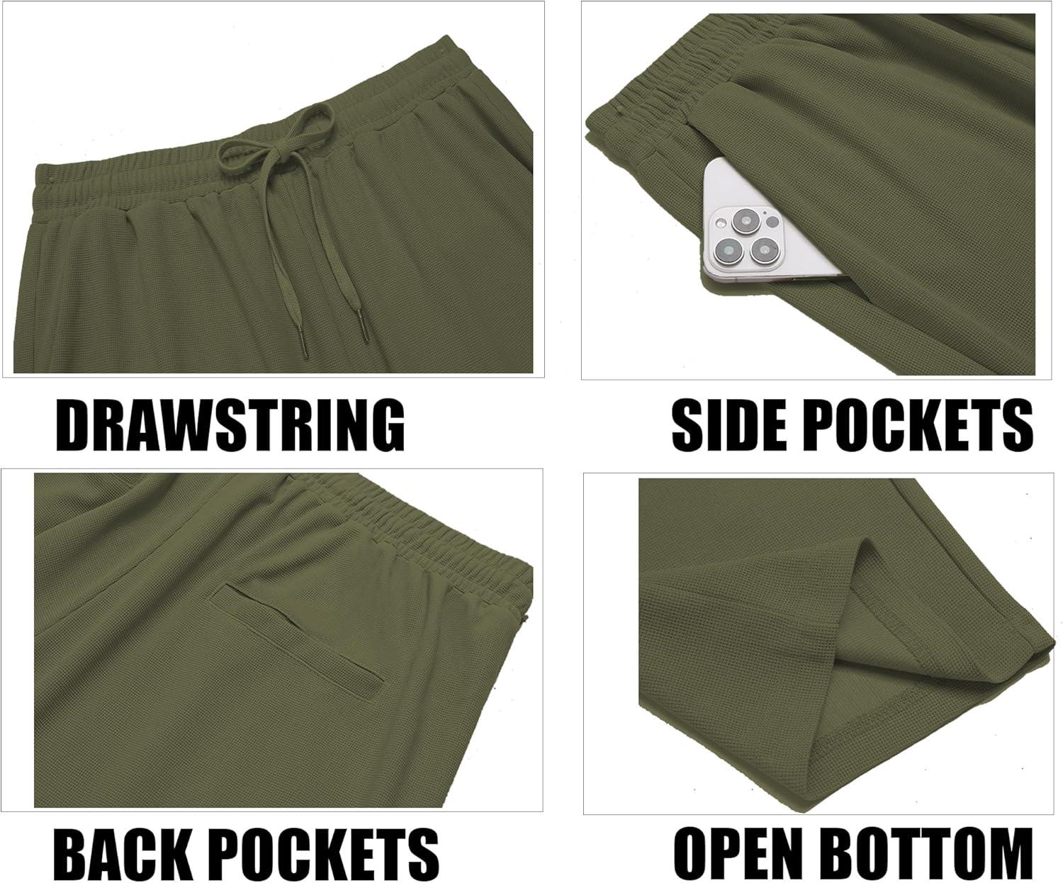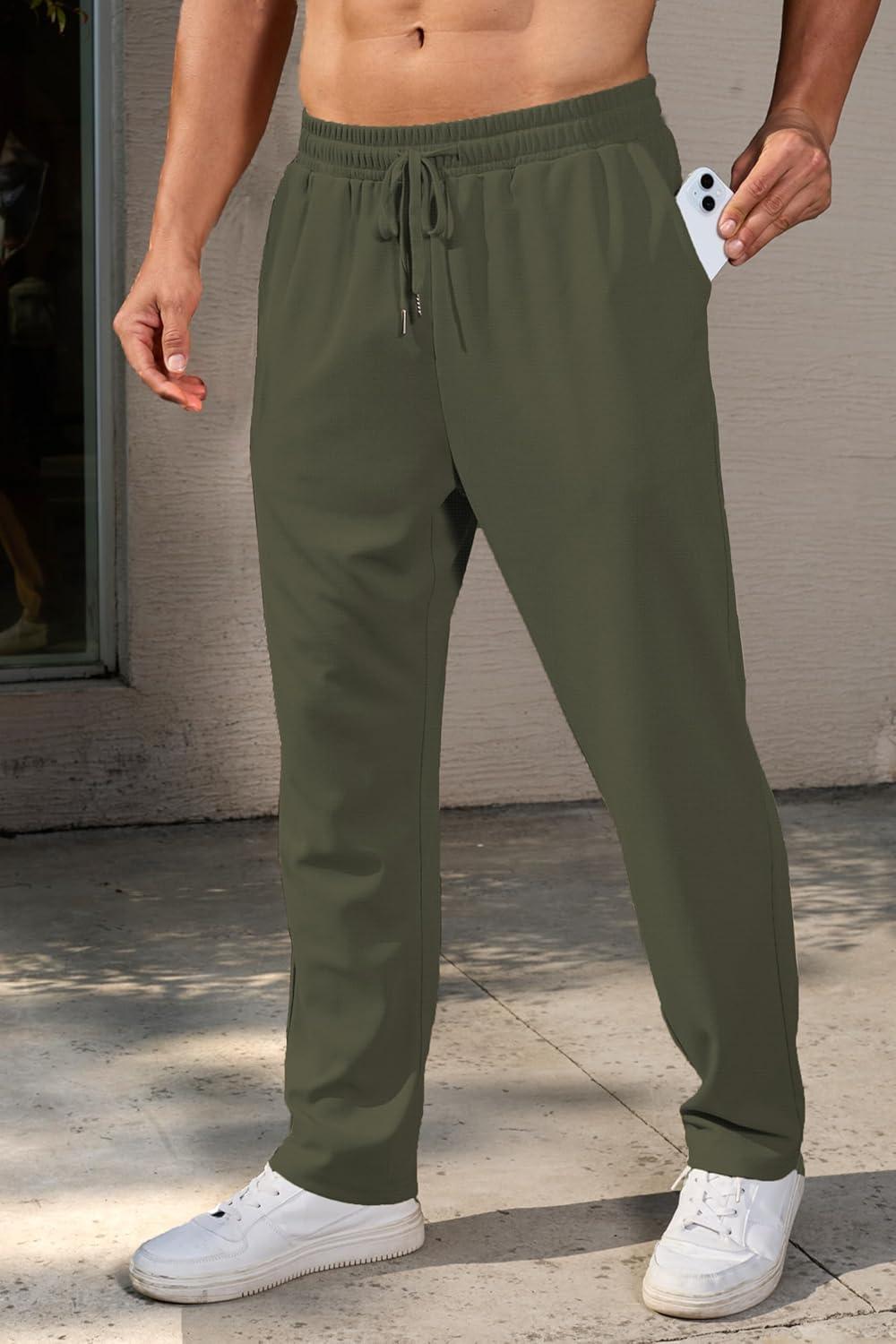 COOFANDY Men’s Casual Pants Waffle Knit Yoga Pants Lightweight Sweatpants Open Bottom Lounge Trousers(Army Green)