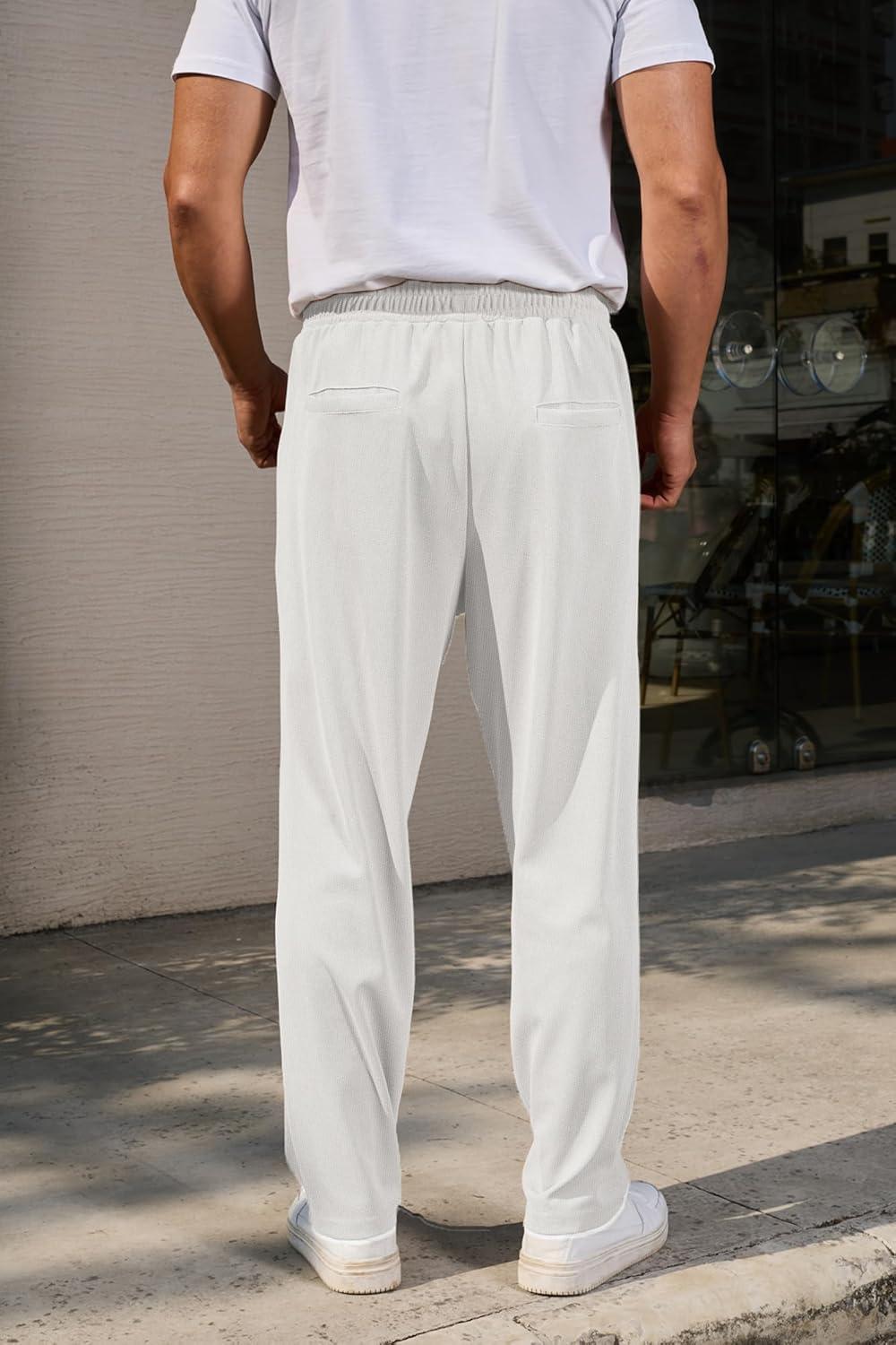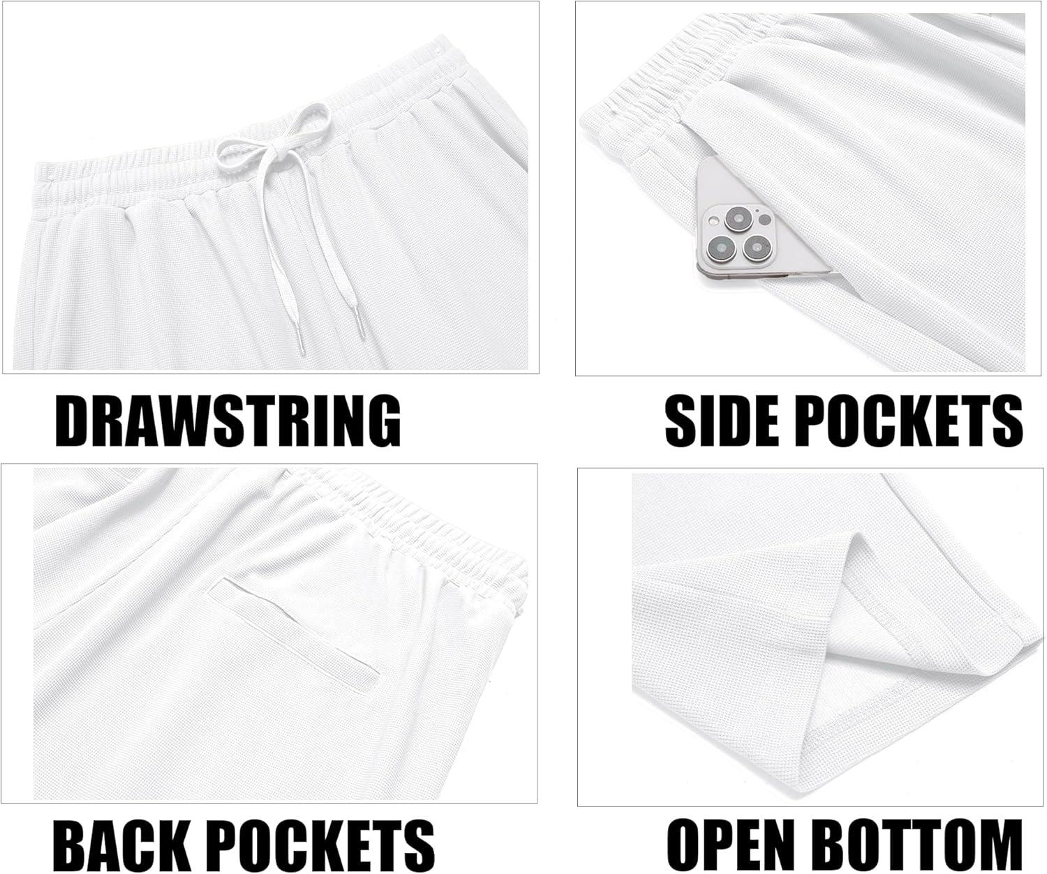 COOFANDY Men’s Casual Pants Waffle Knit Yoga Pants Lightweight Sweatpants Open Bottom Lounge Trousers(White)