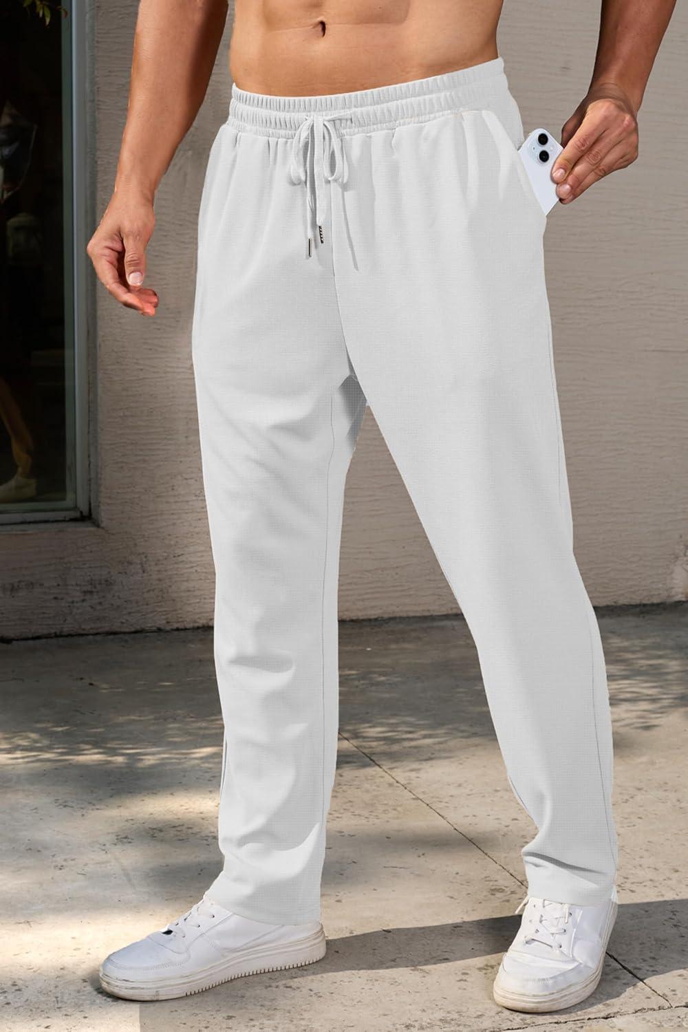 COOFANDY Men's Casual Pants Waffle Knit Yoga Pants Lightweight Sweatpants Open Bottom Lounge Trousers(White)