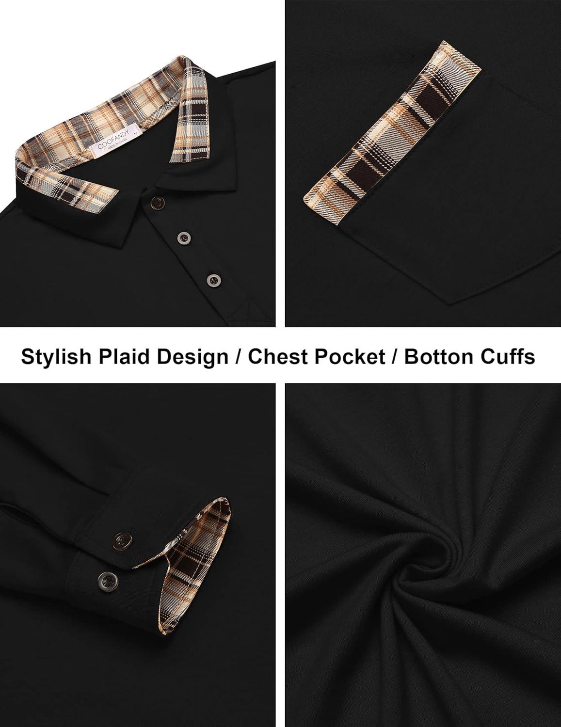 Don’t wait, get up to 50% off on COOFANDY Men’s Casual Polo Shirt Long Sleeve Classic Plaid Button Tees with Pockets(Black) during our end-of-season sale event.