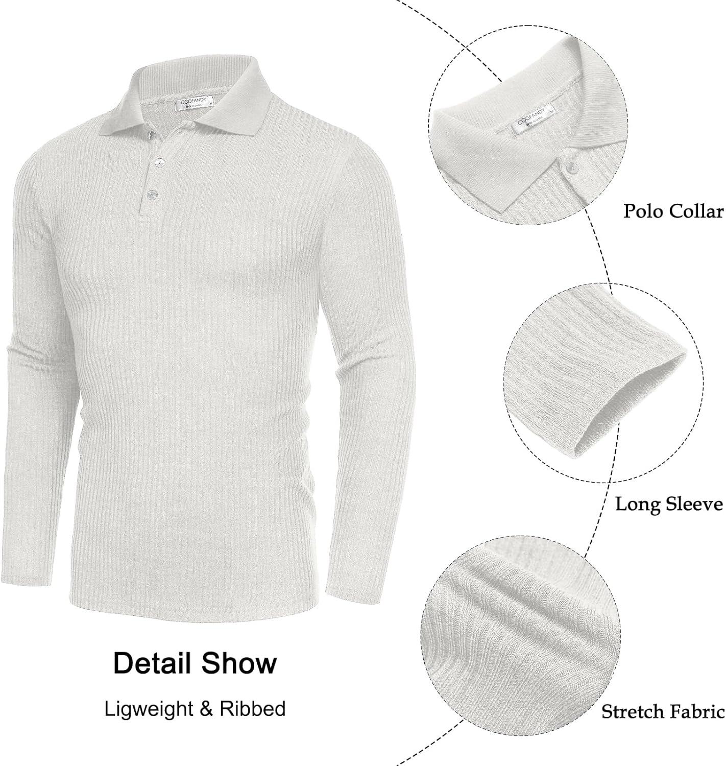 COOFANDY Men’s Casual Polo Shirts Long Sleeve Textured Knit Tee Shirt Wrok Tshirts(White)