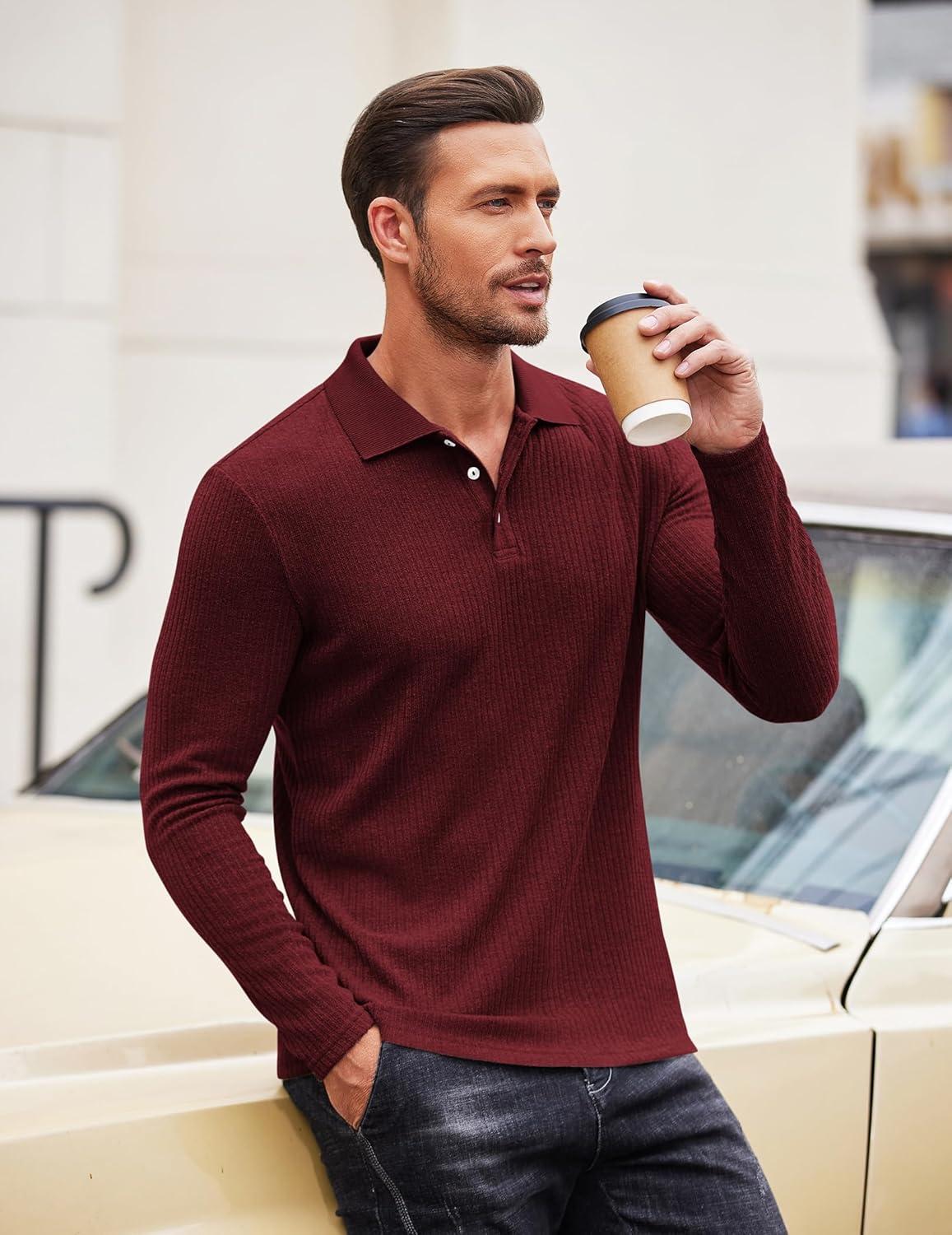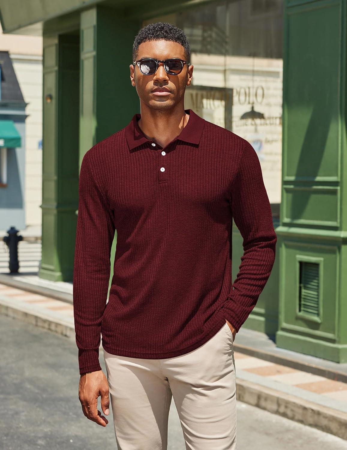 Get up to 50% off on COOFANDY Men’s Casual Polo Shirts Long Sleeve Textured Knit Tee Shirt Wrok Tshirts(Wine Red) styles during our spring sale event.