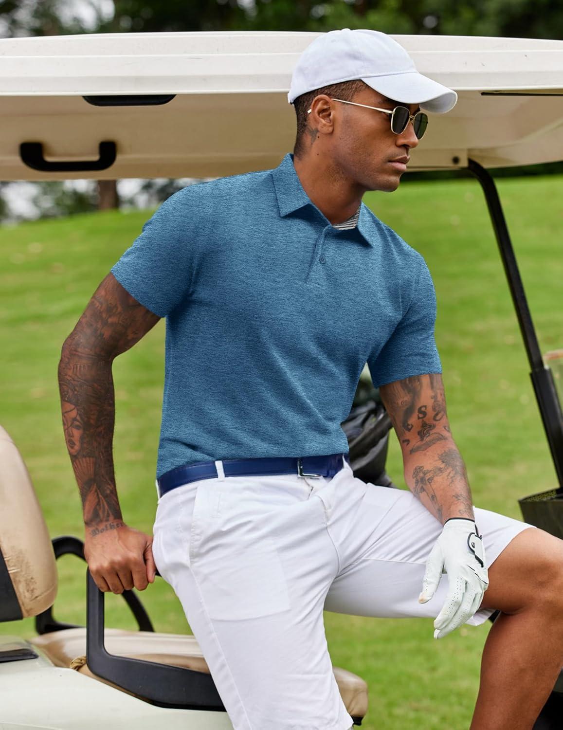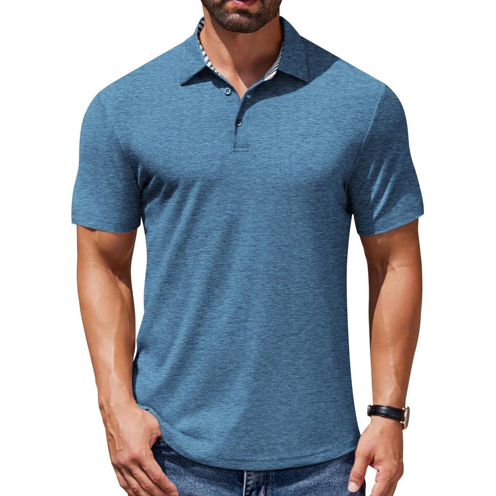 COOFANDY Men’s Casual Polo Shirts Short Sleeve Classic Basic Tee Button Collar Shirt Summer Golf T-Shirt(Blue)