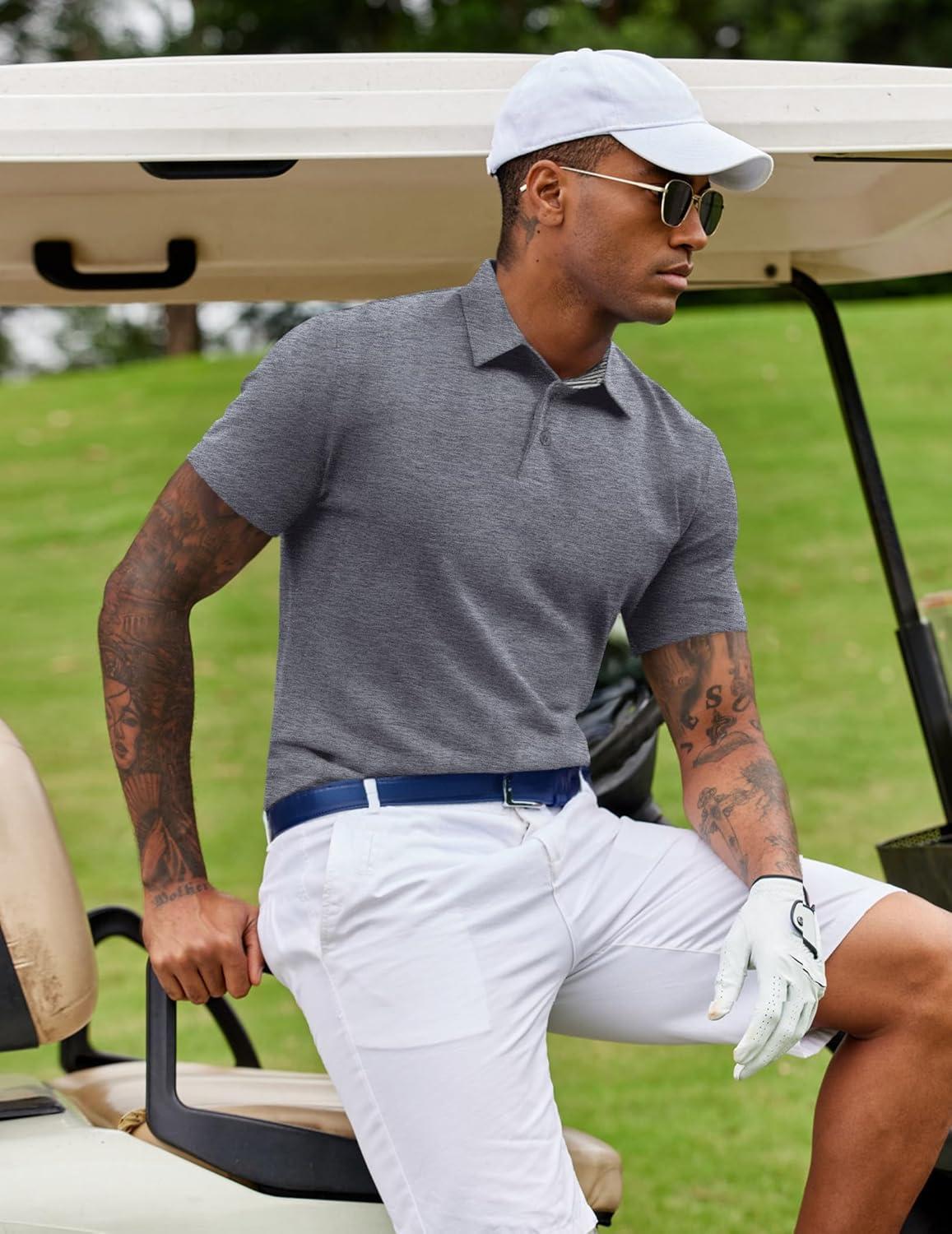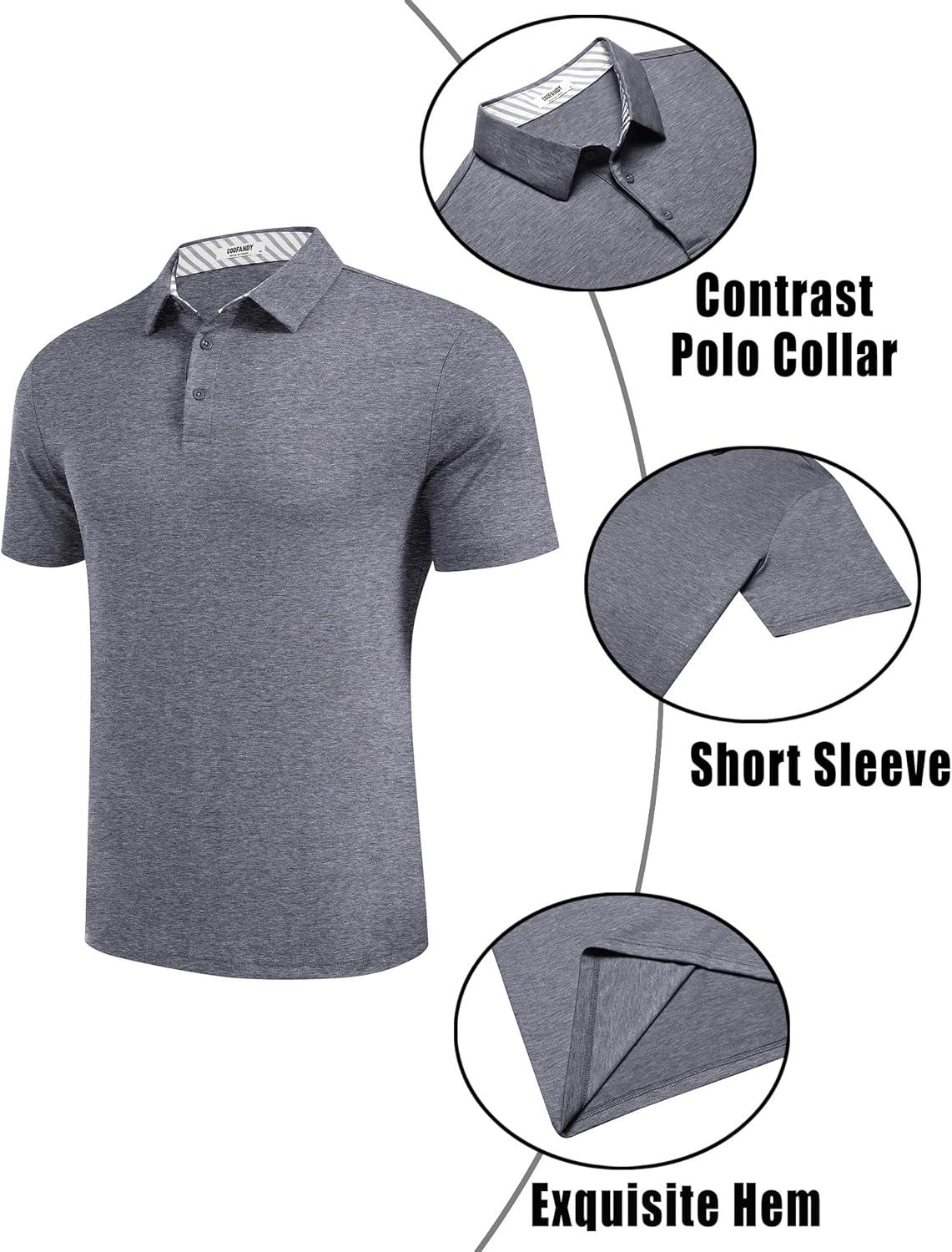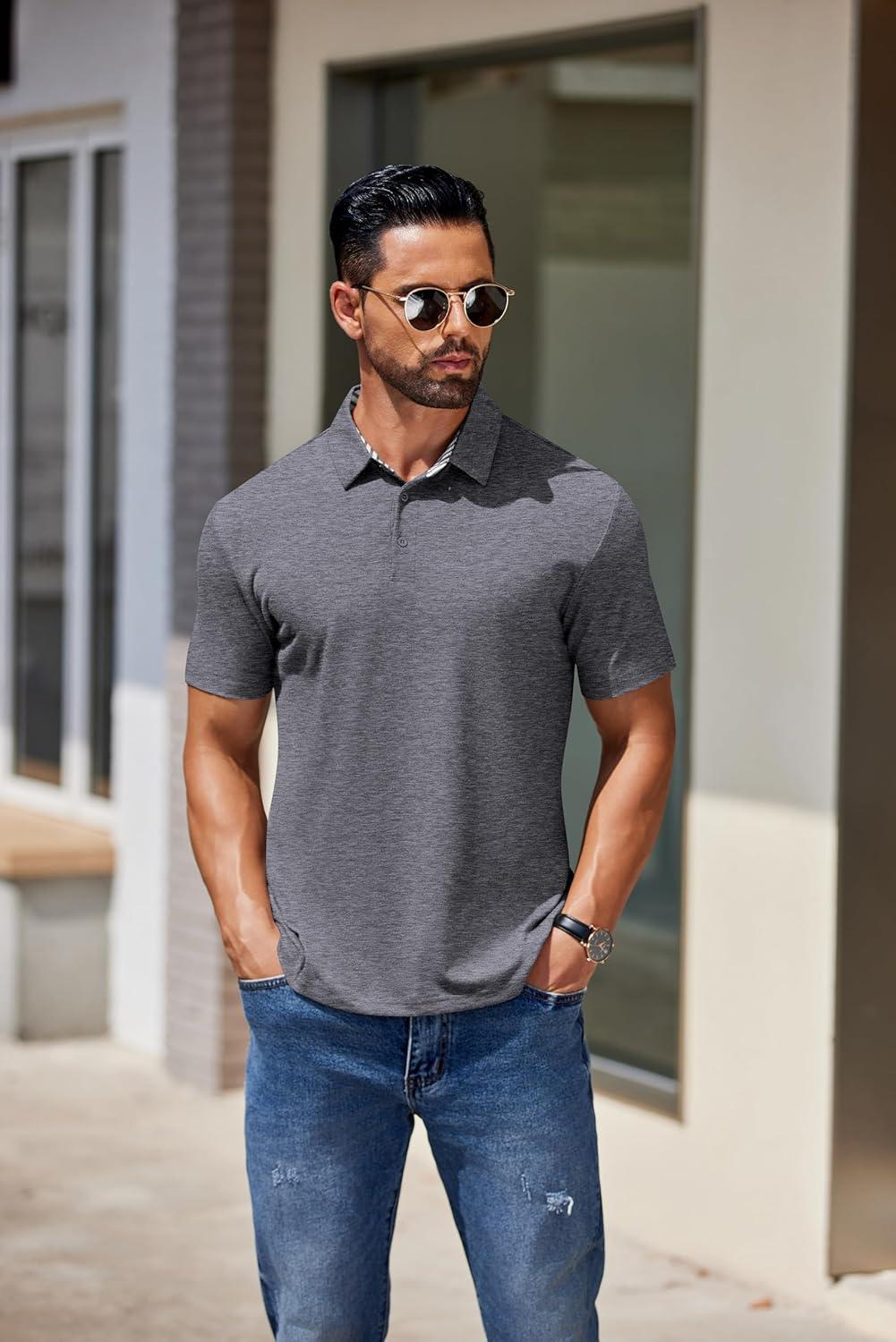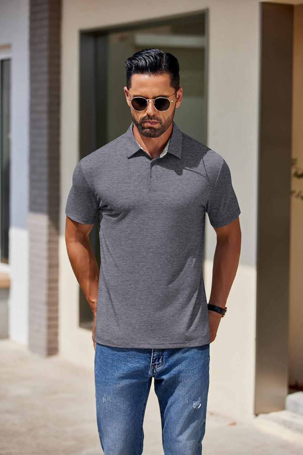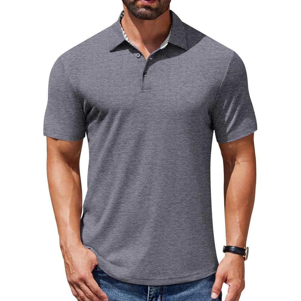 COOFANDY Men’s Casual Polo Shirts Short Sleeve Classic Basic Tee Button Collar Shirt Summer Golf T-Shirt(Dark Grey)