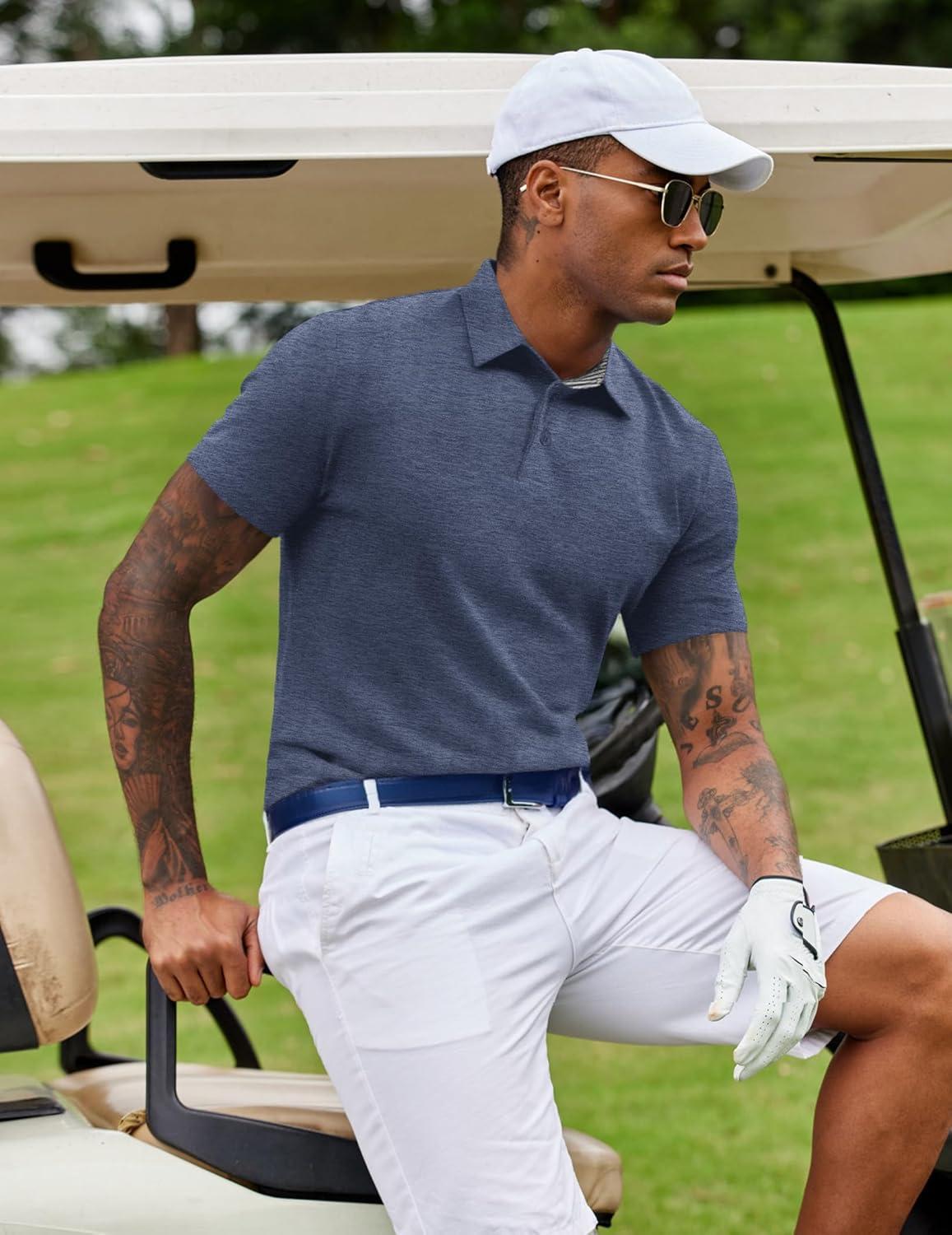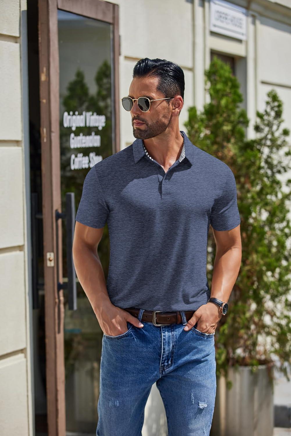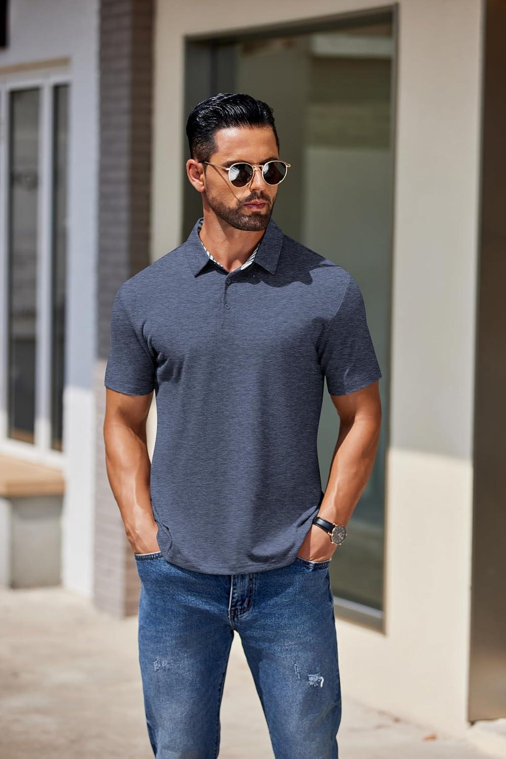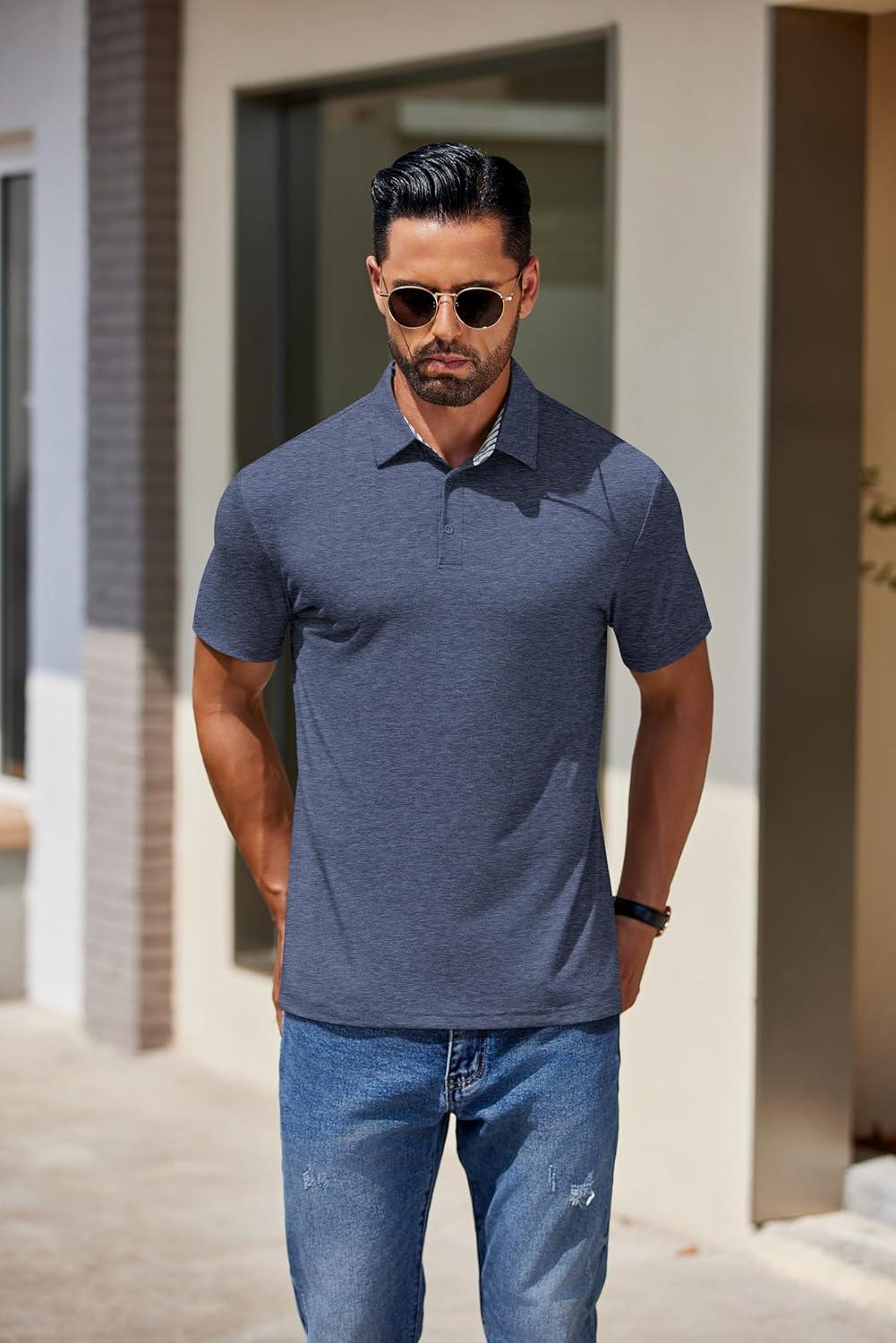 COOFANDY Men’s Casual Polo Shirts Short Sleeve Classic Basic Tee Button Collar Shirt Summer Golf T-Shirt(Navy Blue)