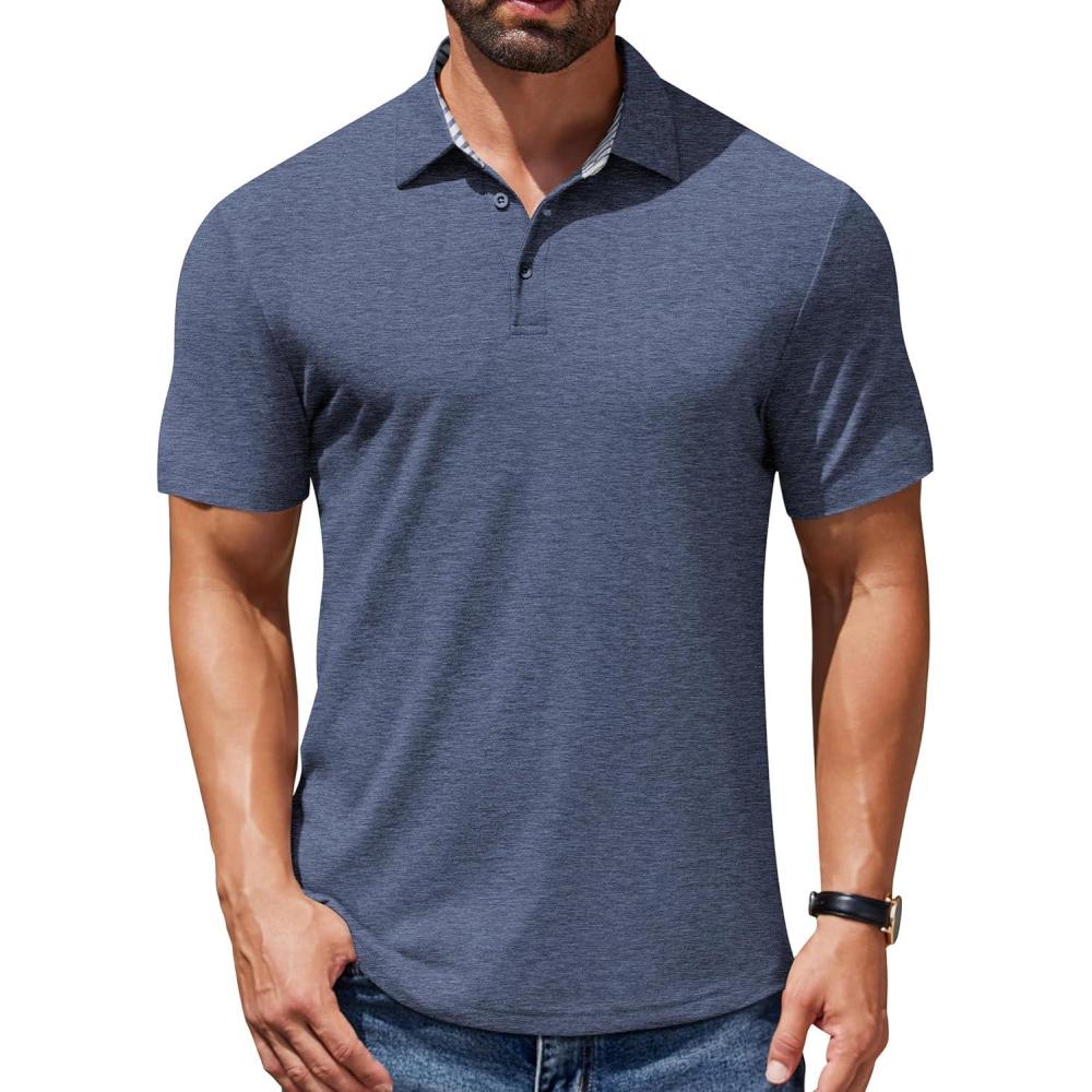 COOFANDY Men's Casual Polo Shirts Short Sleeve Classic Basic Tee Button Collar Shirt Summer Golf T-Shirt(Navy Blue)