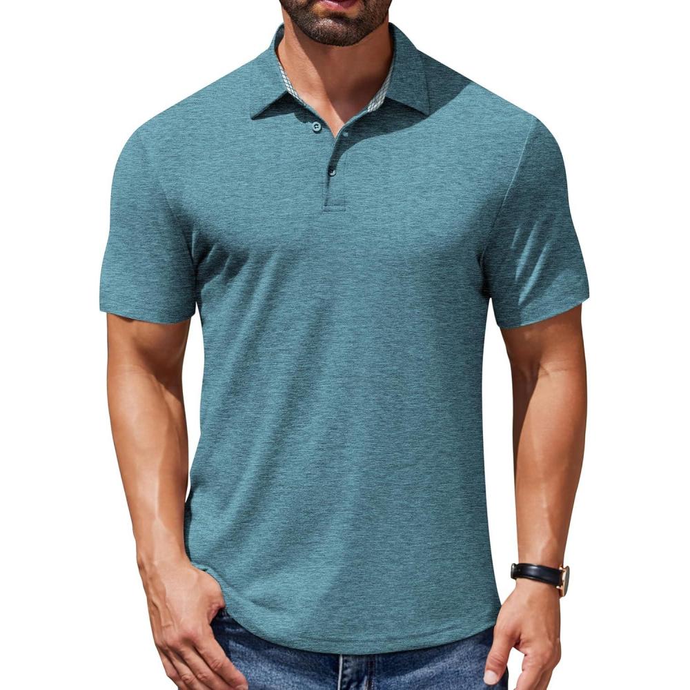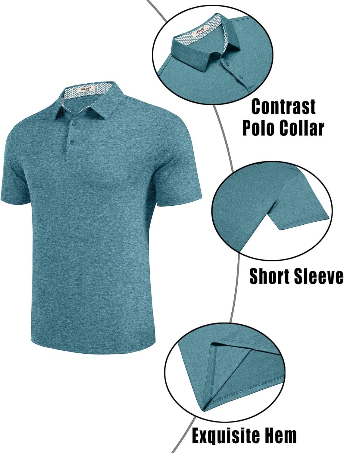 COOFANDY Men's Casual Polo Shirts Short Sleeve Classic Basic Tee Button Collar Shirt Summer Golf T-Shirt(Peacock Blue)