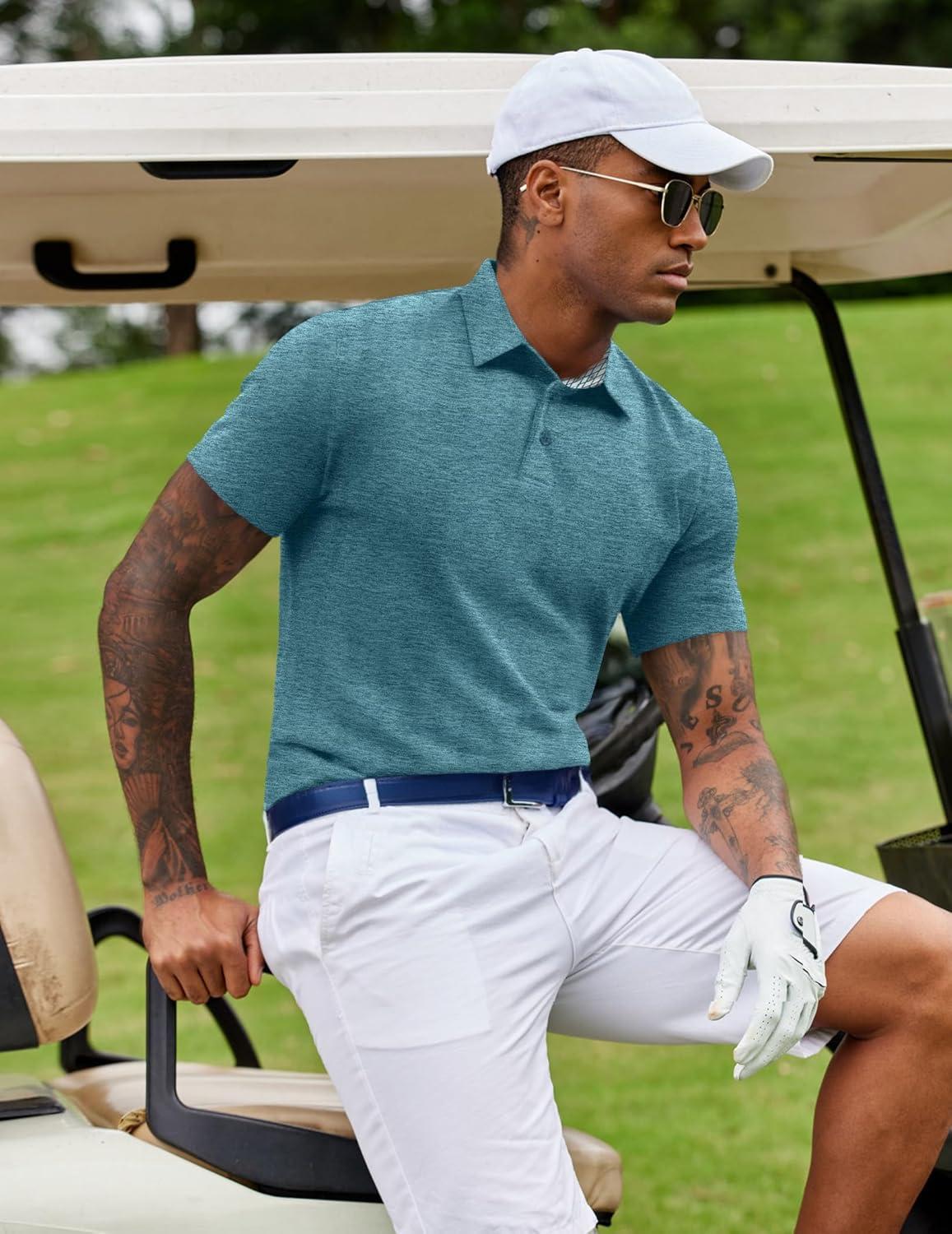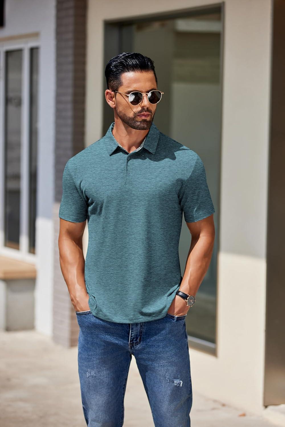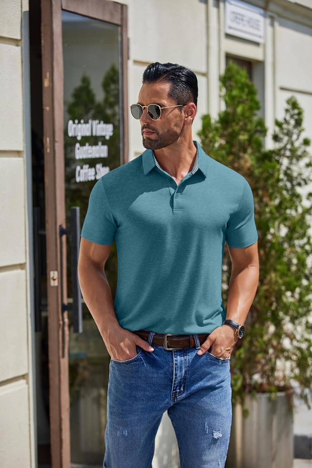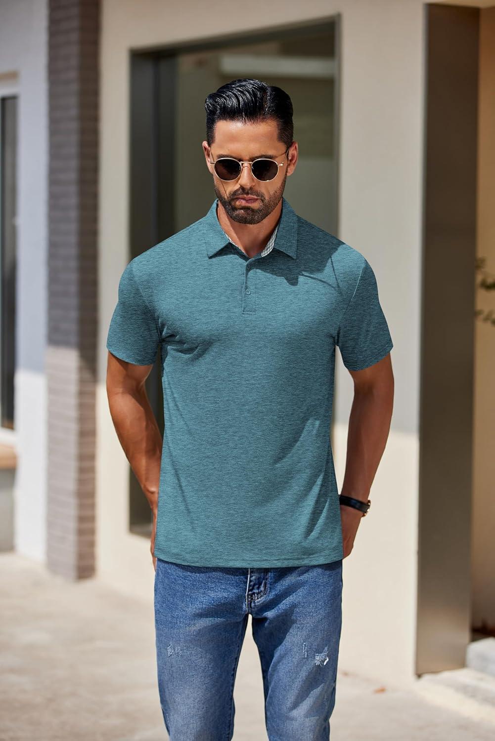 COOFANDY Men’s Casual Polo Shirts Short Sleeve Classic Basic Tee Button Collar Shirt Summer Golf T-Shirt(Peacock Blue)