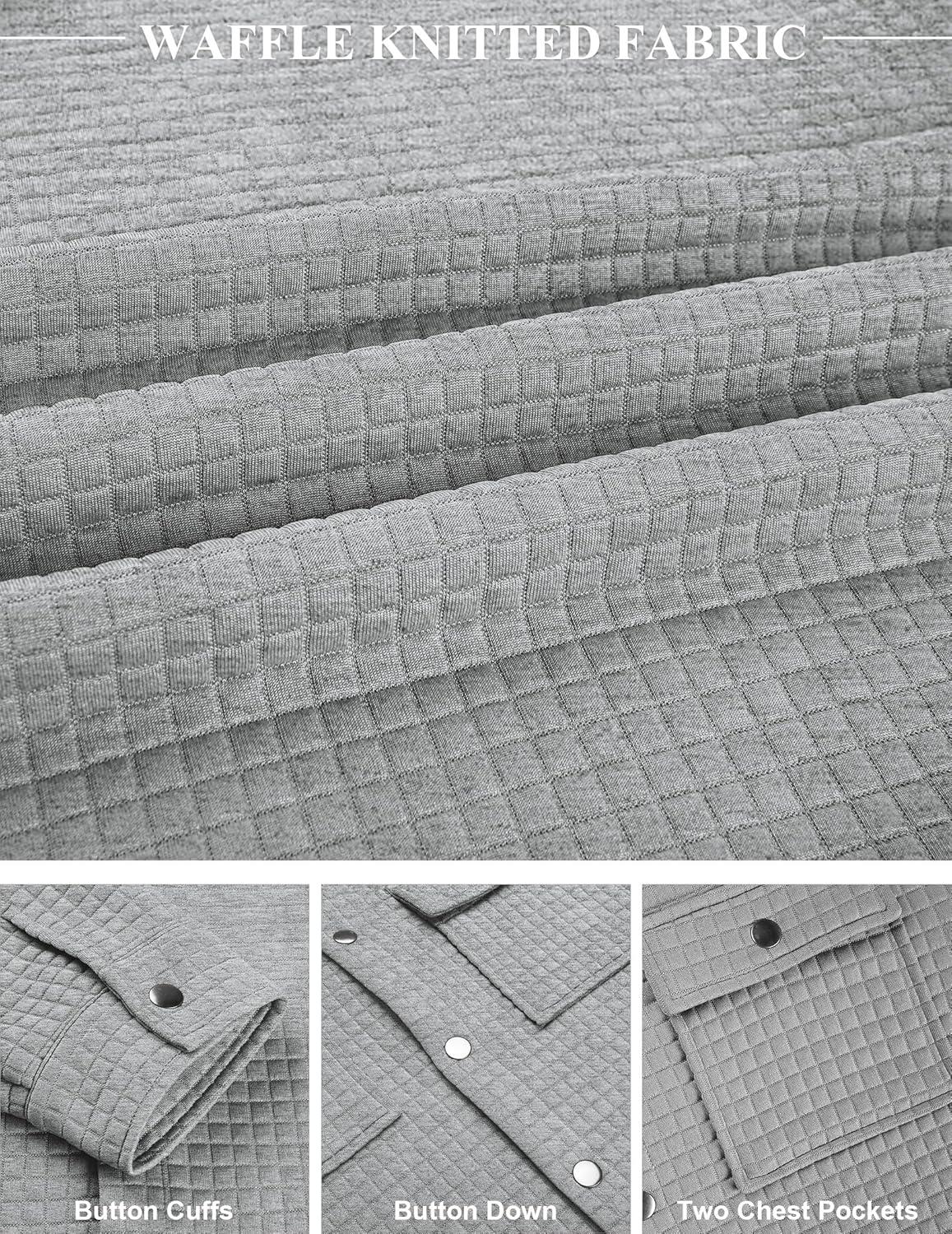 COOFANDY Mens Casual Shirt Jacket Button Down Waffle Jacket Long Sleeve Sweater Jackets Quilted Shacket Overshirt(Medium Grey)
