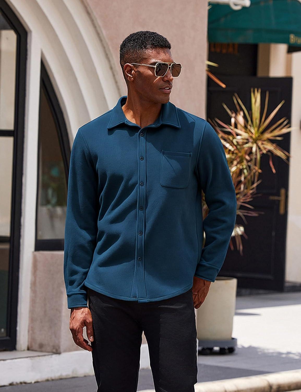 COOFANDY Men’s Casual Shirt Long Sleeve Button Down Lightweight Flannel Shirts(Dark Blue)