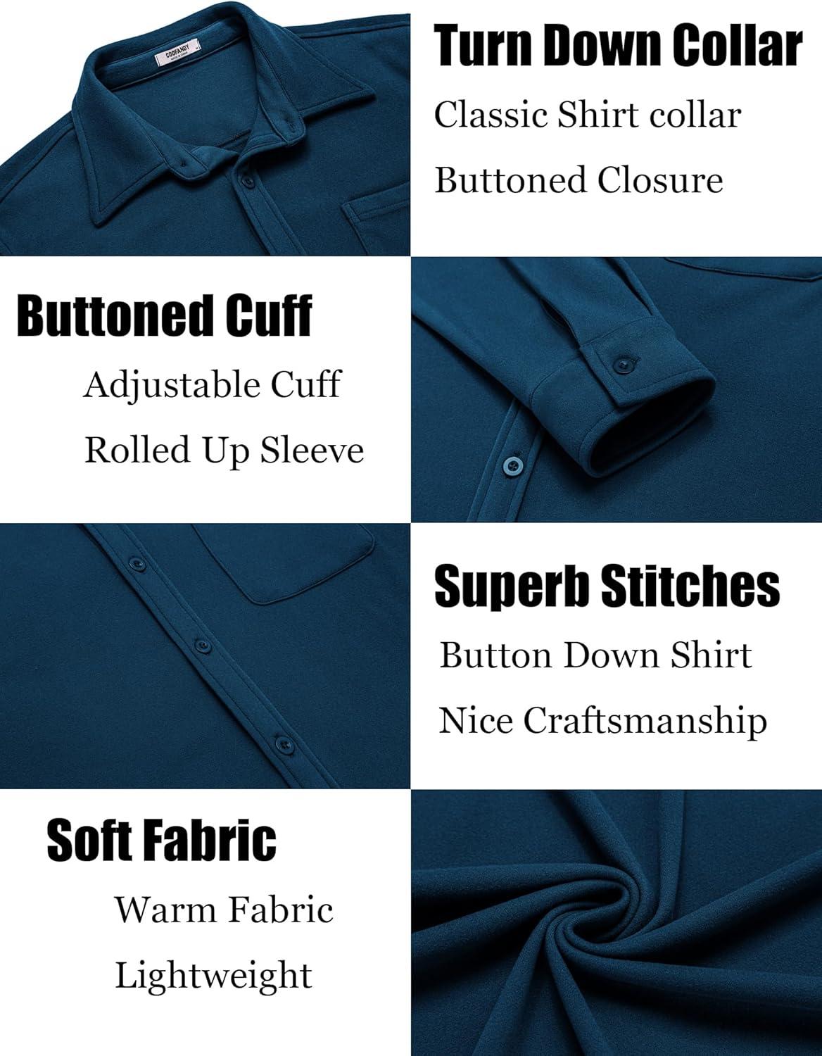 COOFANDY Men's Casual Shirt Long Sleeve Button Down Lightweight Flannel Shirts(Dark Blue)