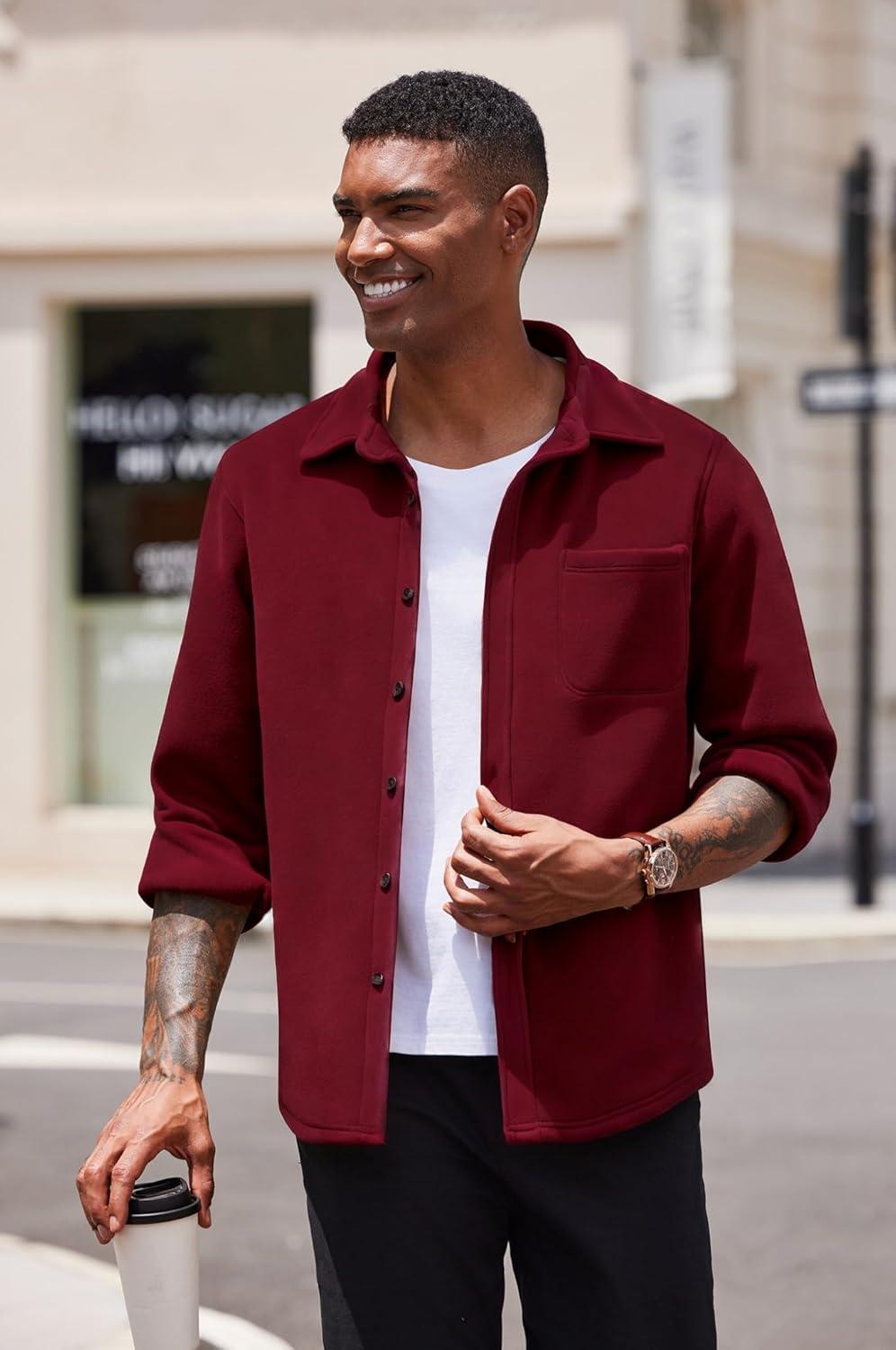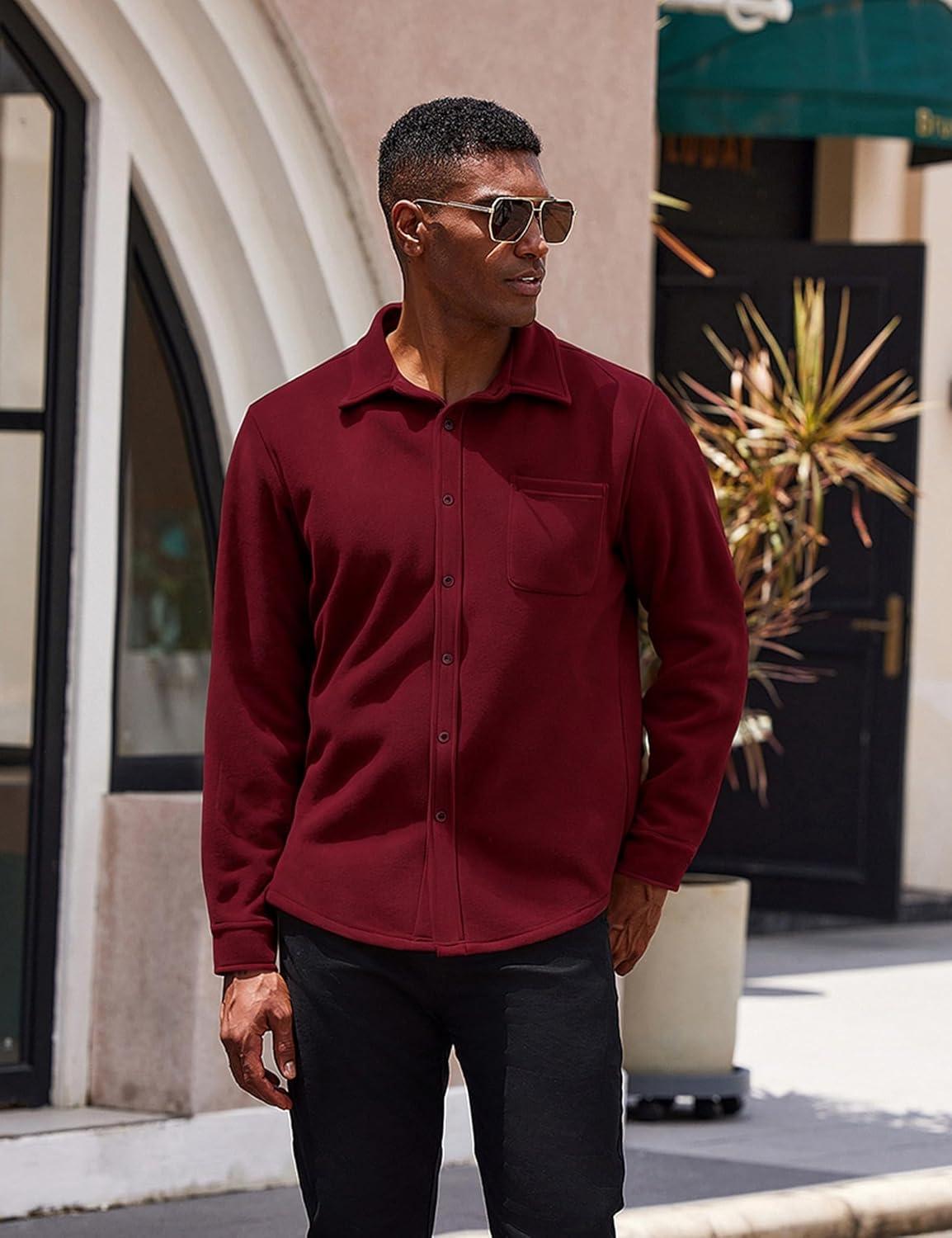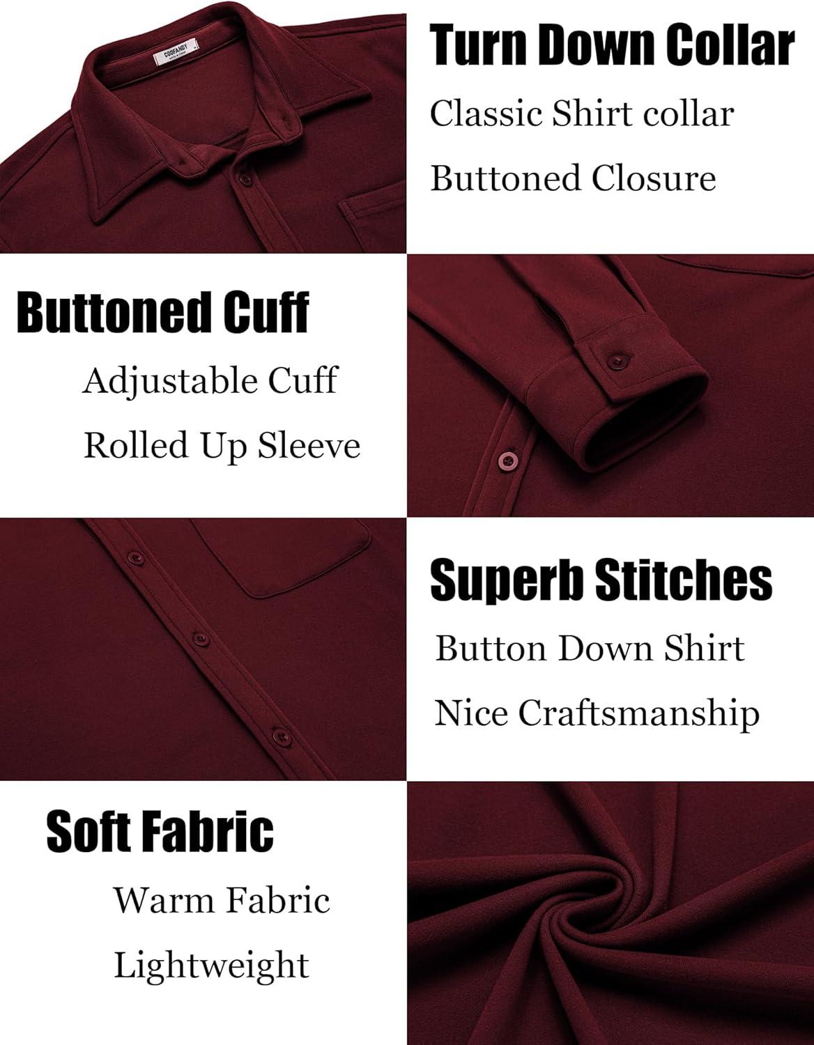 COOFANDY Men's Casual Shirt Long Sleeve Button Down Lightweight Flannel Shirts(Dark Red)