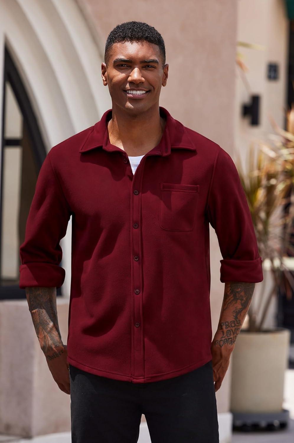 COOFANDY Men’s Casual Shirt Long Sleeve Button Down Lightweight Flannel Shirts(Dark Red)