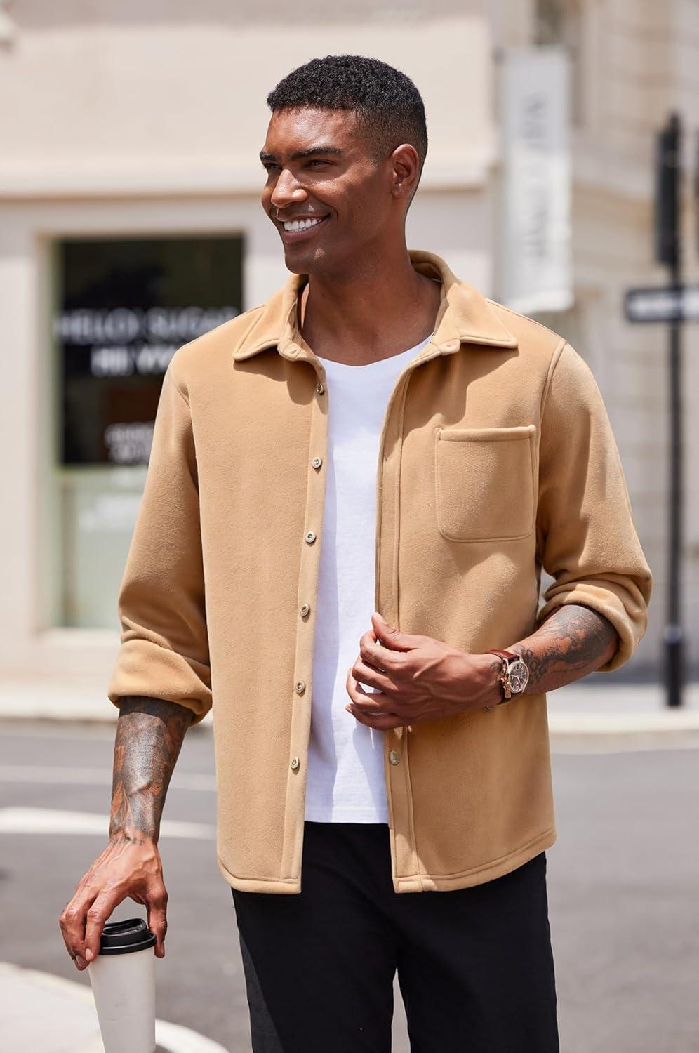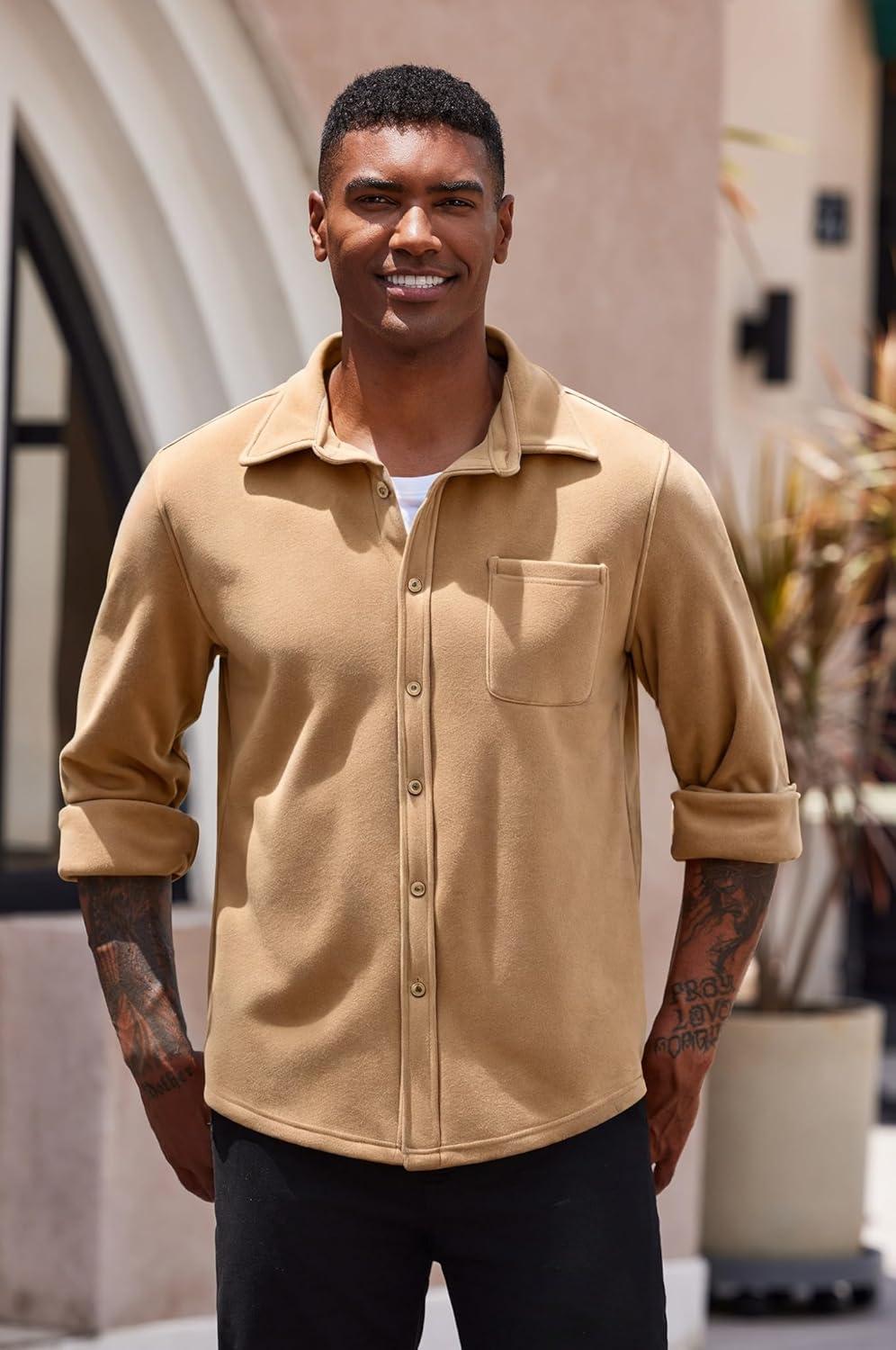 COOFANDY Men’s Casual Shirt Long Sleeve Button Down Lightweight Flannel Shirts(Light Brown)