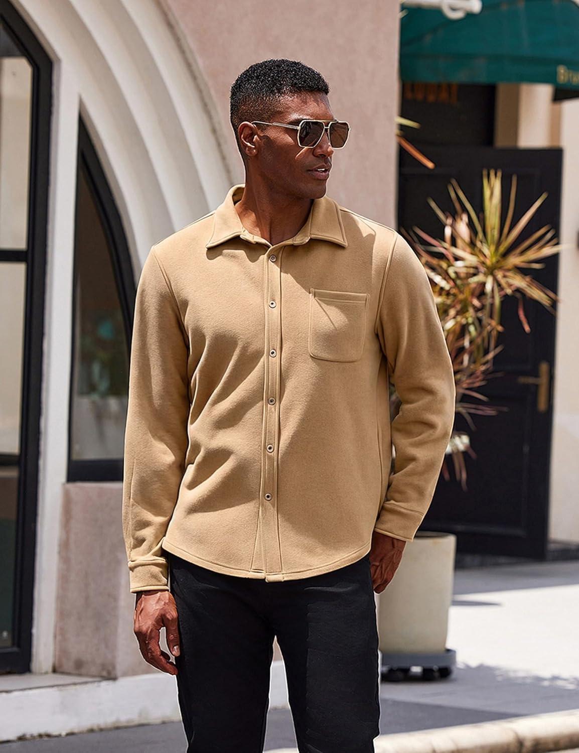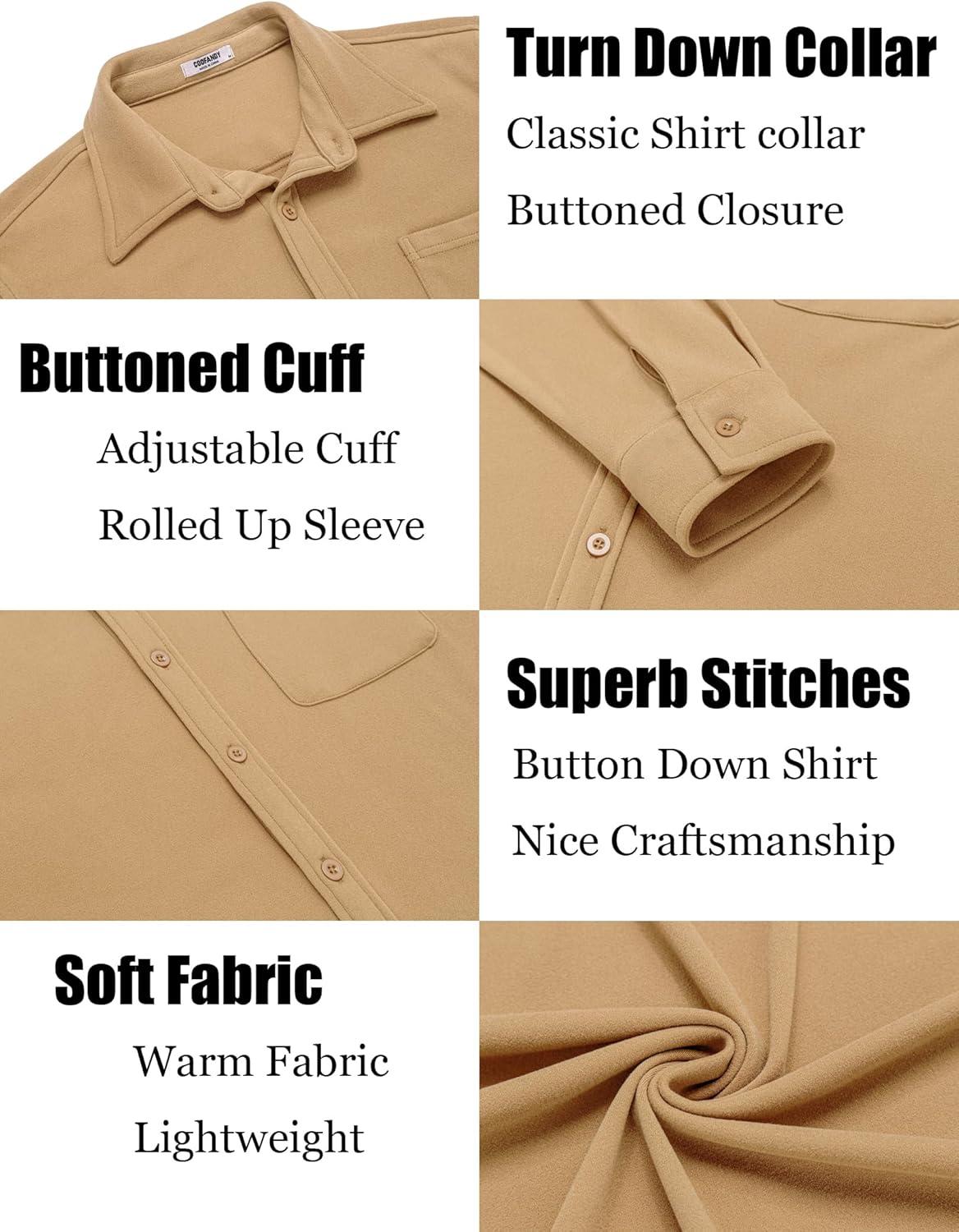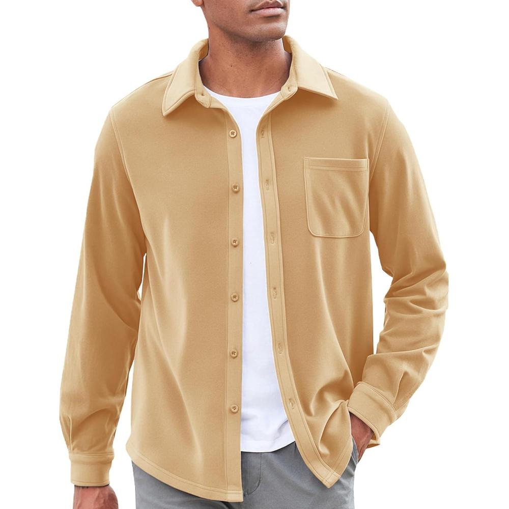 COOFANDY Men's Casual Shirt Long Sleeve Button Down Lightweight Flannel Shirts(Khaki)