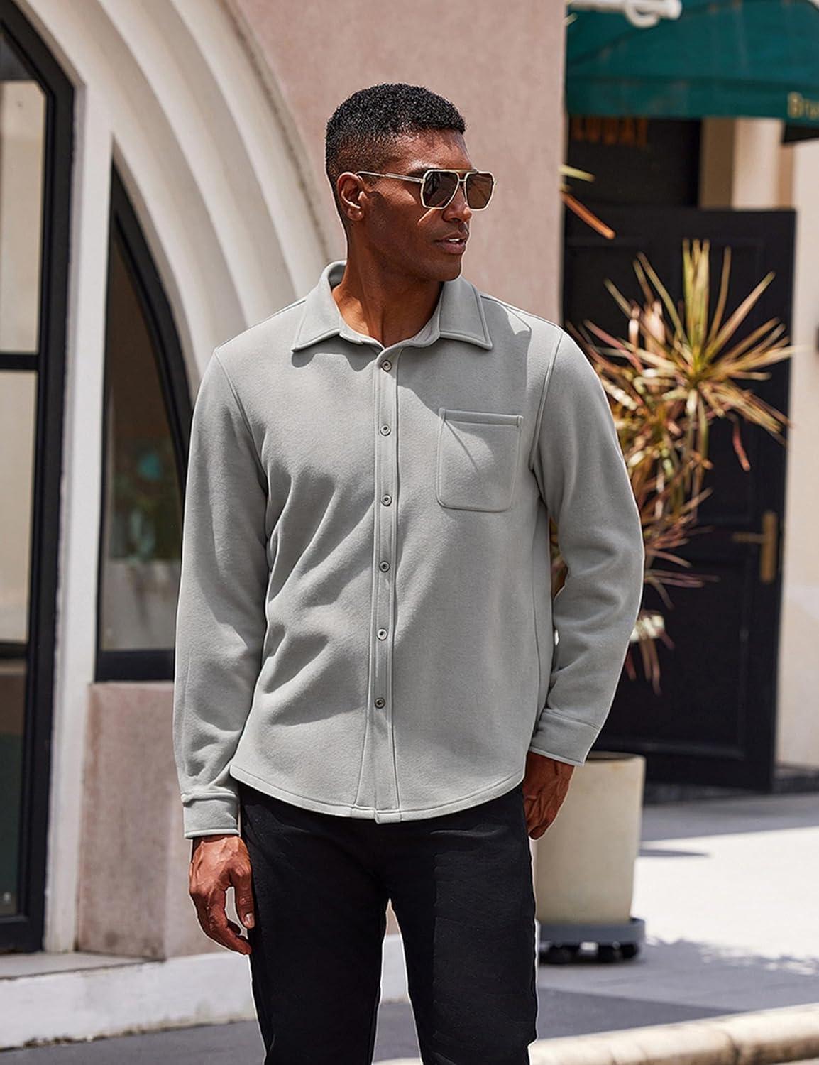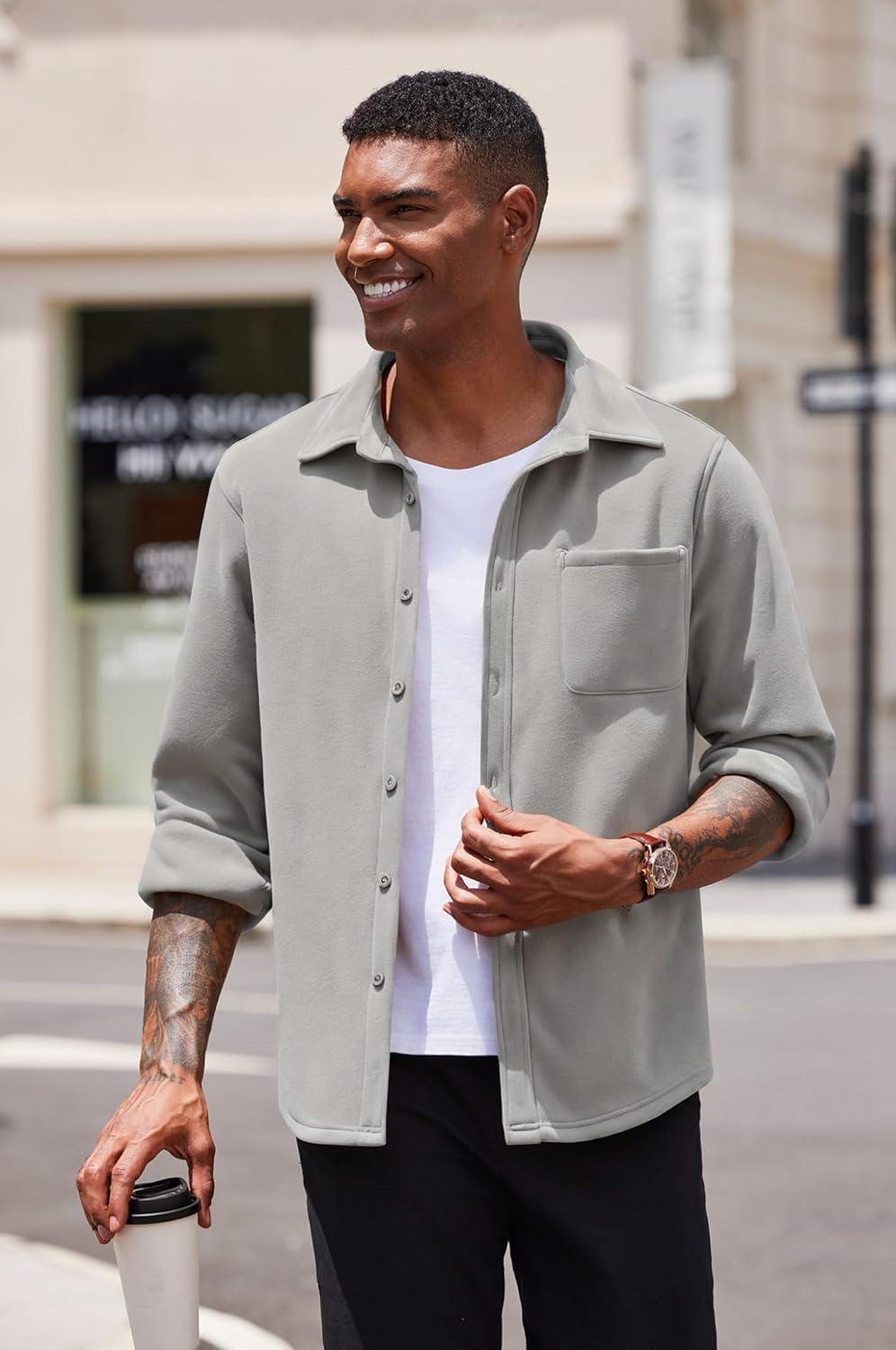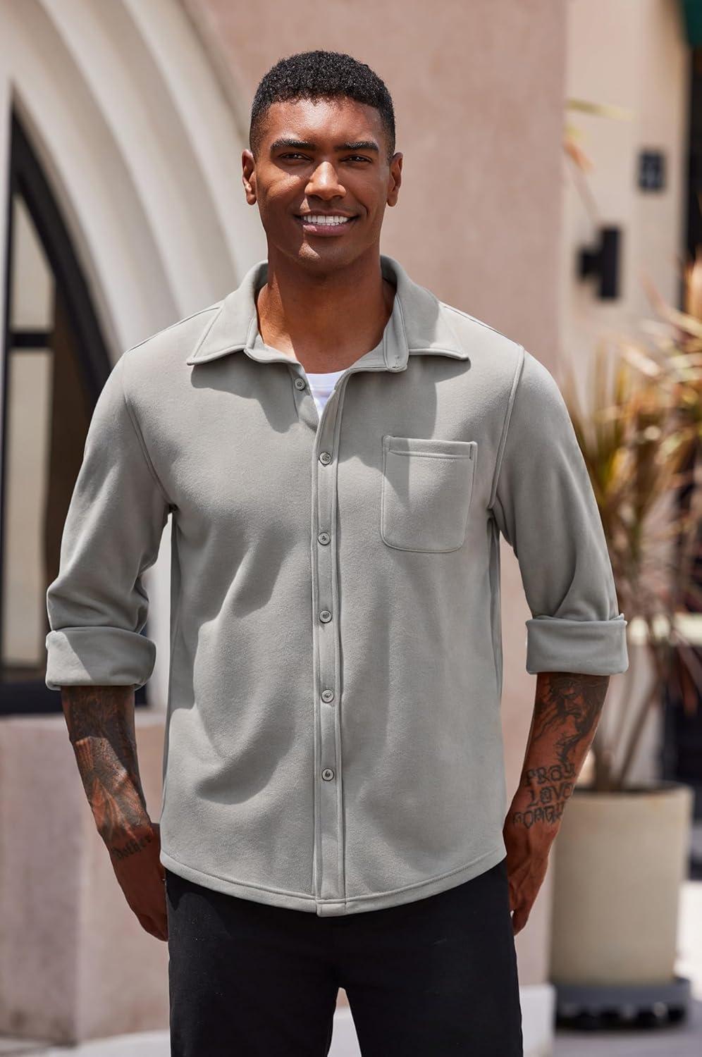 COOFANDY Men’s Casual Shirt Long Sleeve Button Down Lightweight Flannel Shirts(Light Grey)