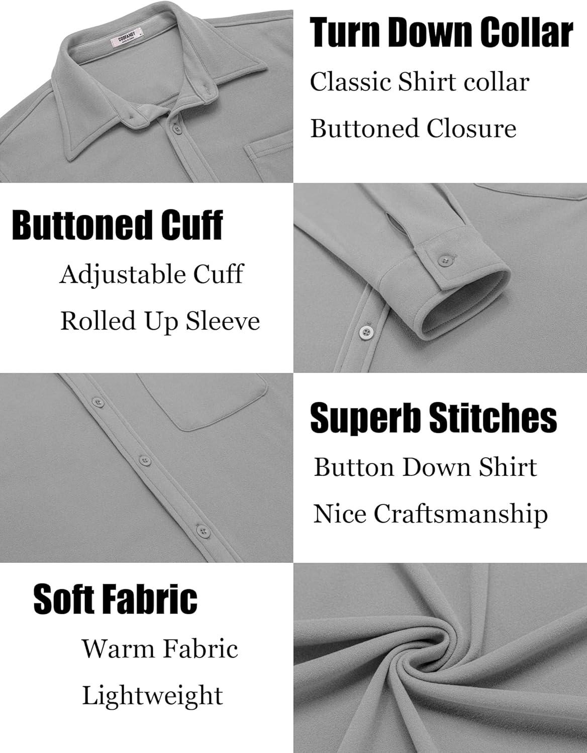 COOFANDY Men's Casual Shirt Long Sleeve Button Down Lightweight Flannel Shirts(Light Grey)