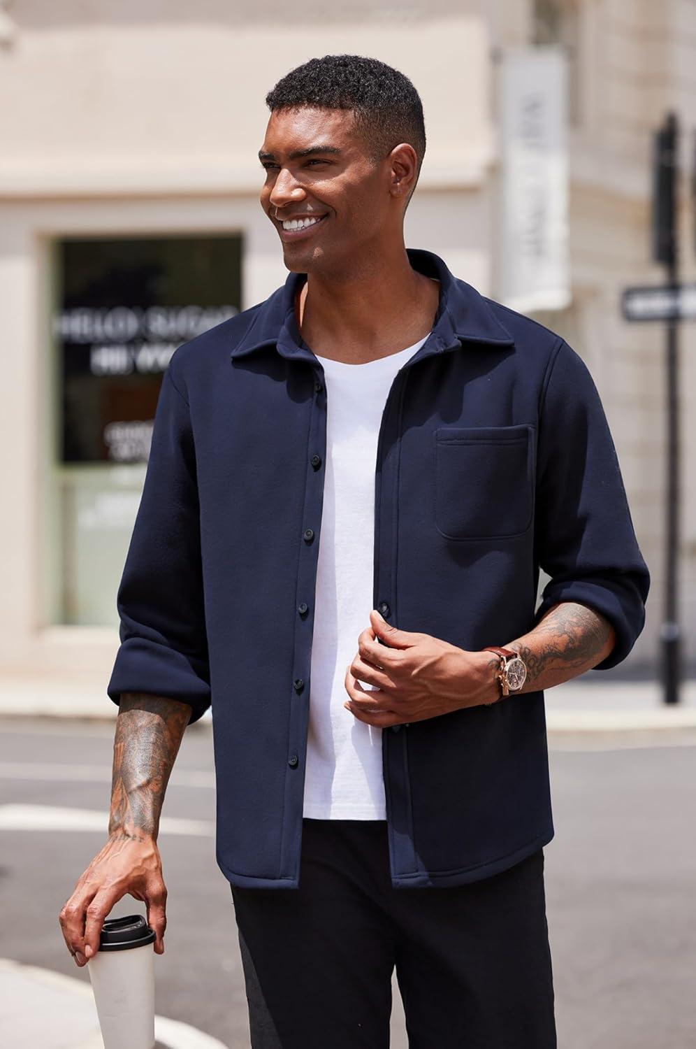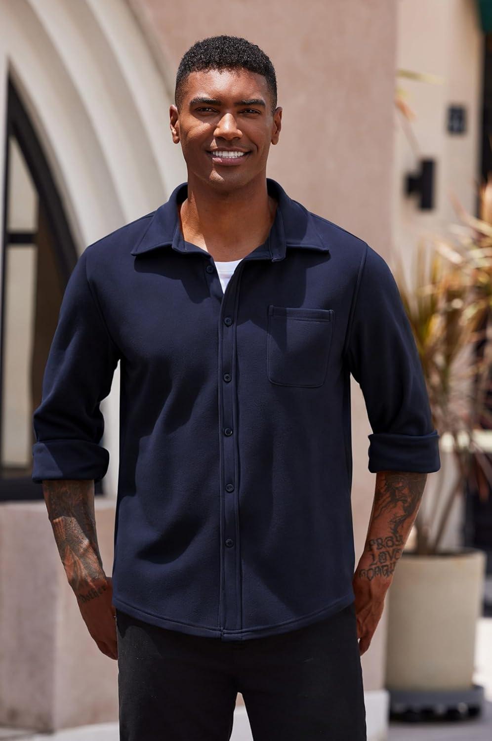 COOFANDY Men’s Casual Shirt Long Sleeve Button Down Lightweight Flannel Shirts(Navy)