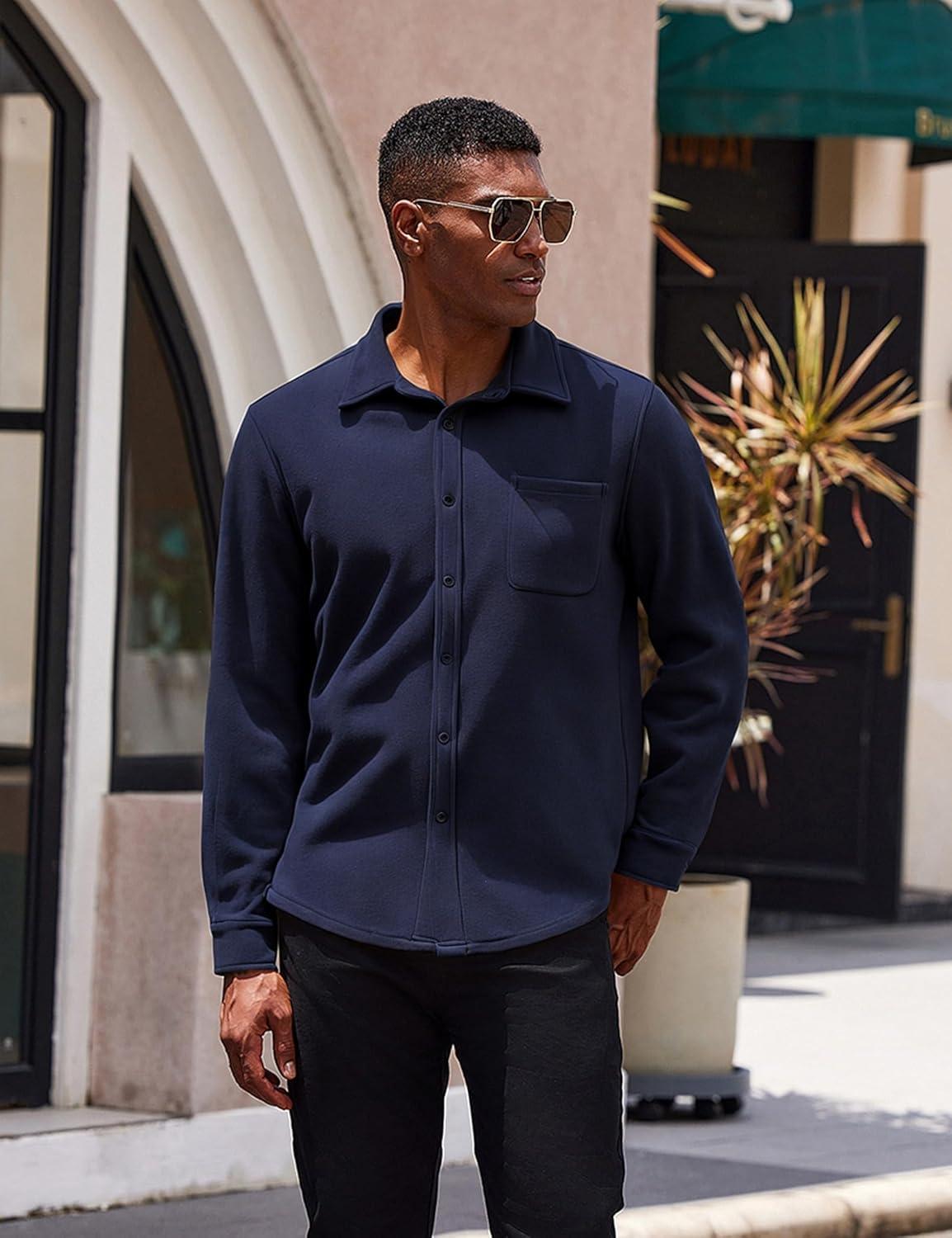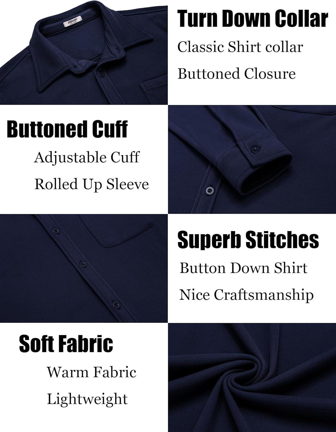 COOFANDY Men's Casual Shirt Long Sleeve Button Down Lightweight Flannel Shirts(Navy)