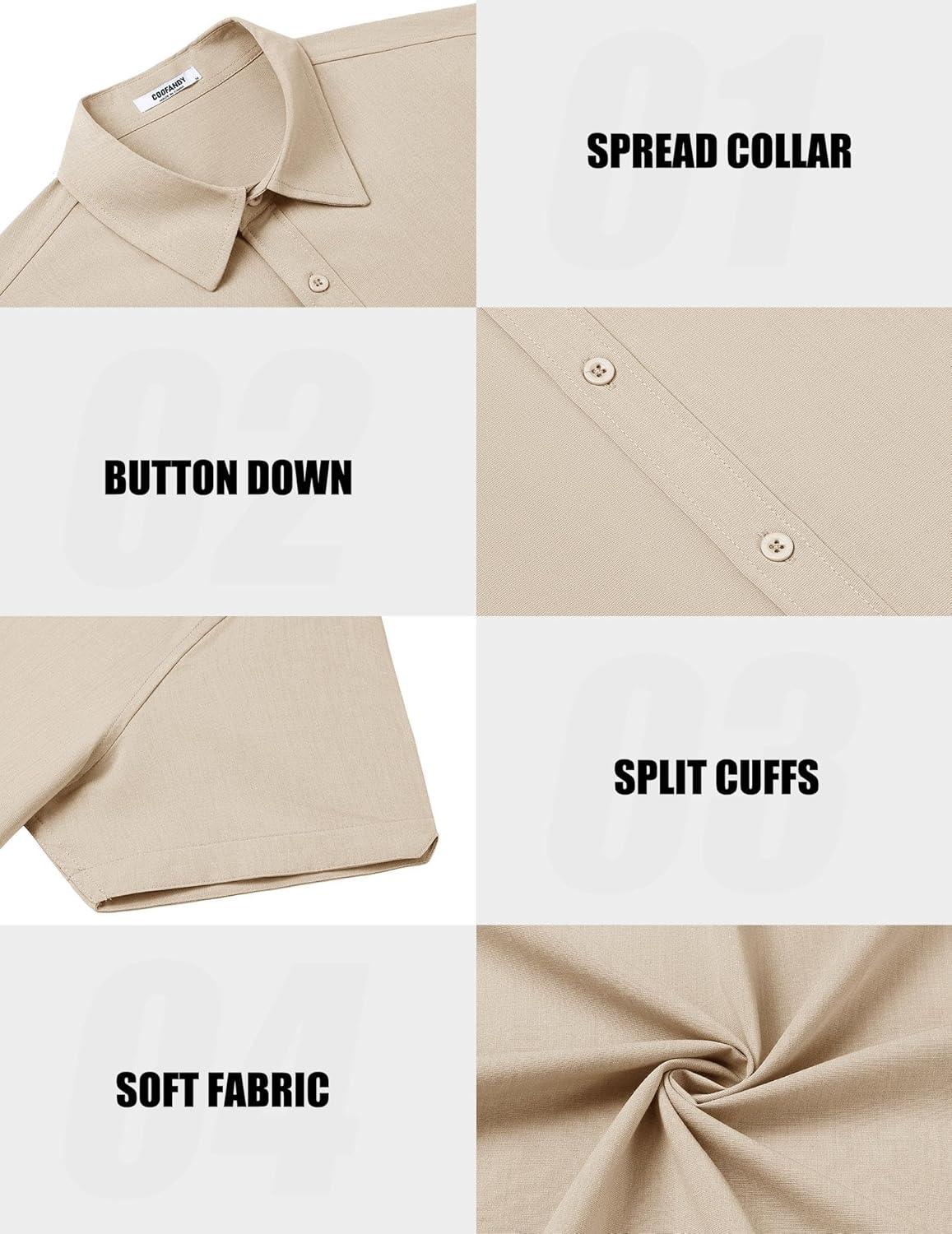 imageCOOFANDY Mens Casual Shirts Short Sleeve Button Down Shirt Wrinkle Free Summer ShirtBeige