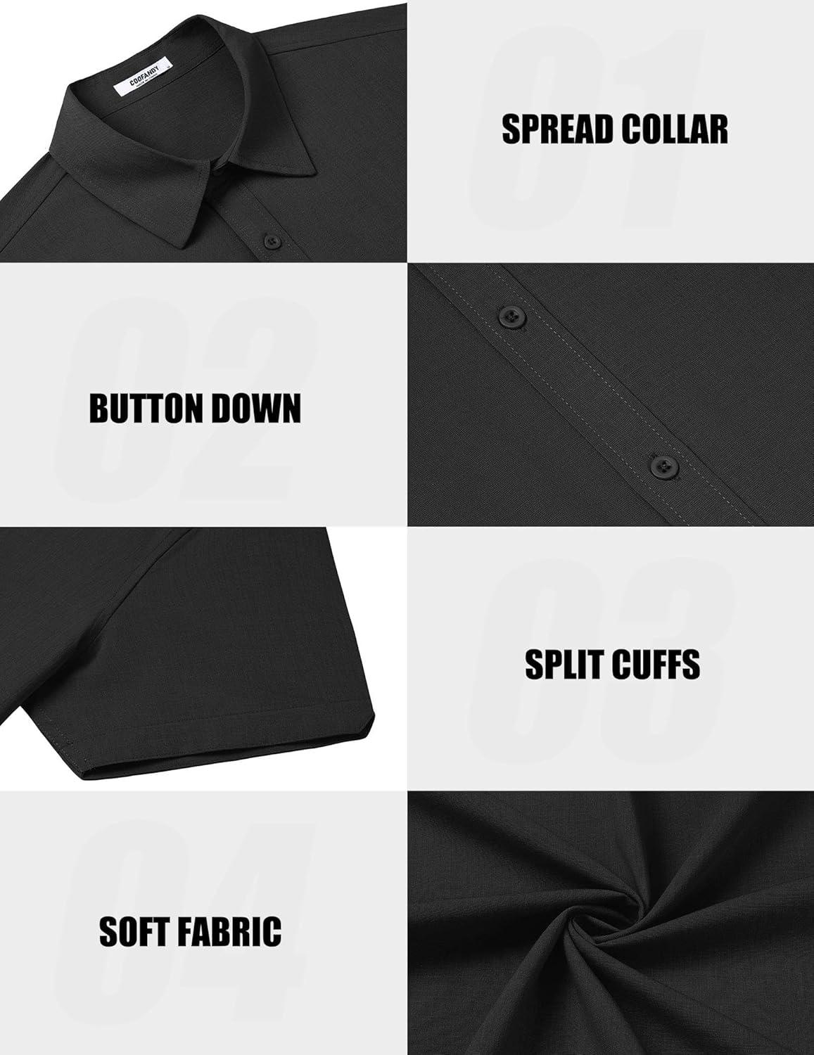 imageCOOFANDY Mens Casual Shirts Short Sleeve Button Down Shirt Wrinkle Free Summer ShirtBlack
