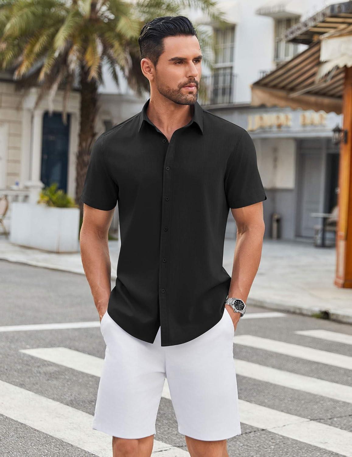 COOFANDY Mens Casual Shirts Short Sleeve Button Down Shirt Wrinkle Free Summer Shirt(Black)