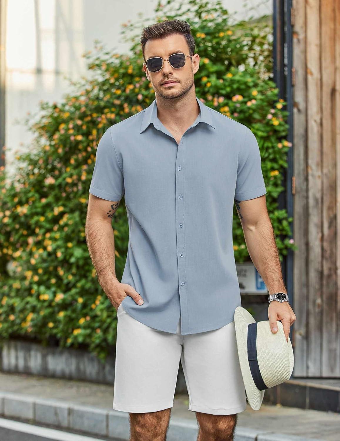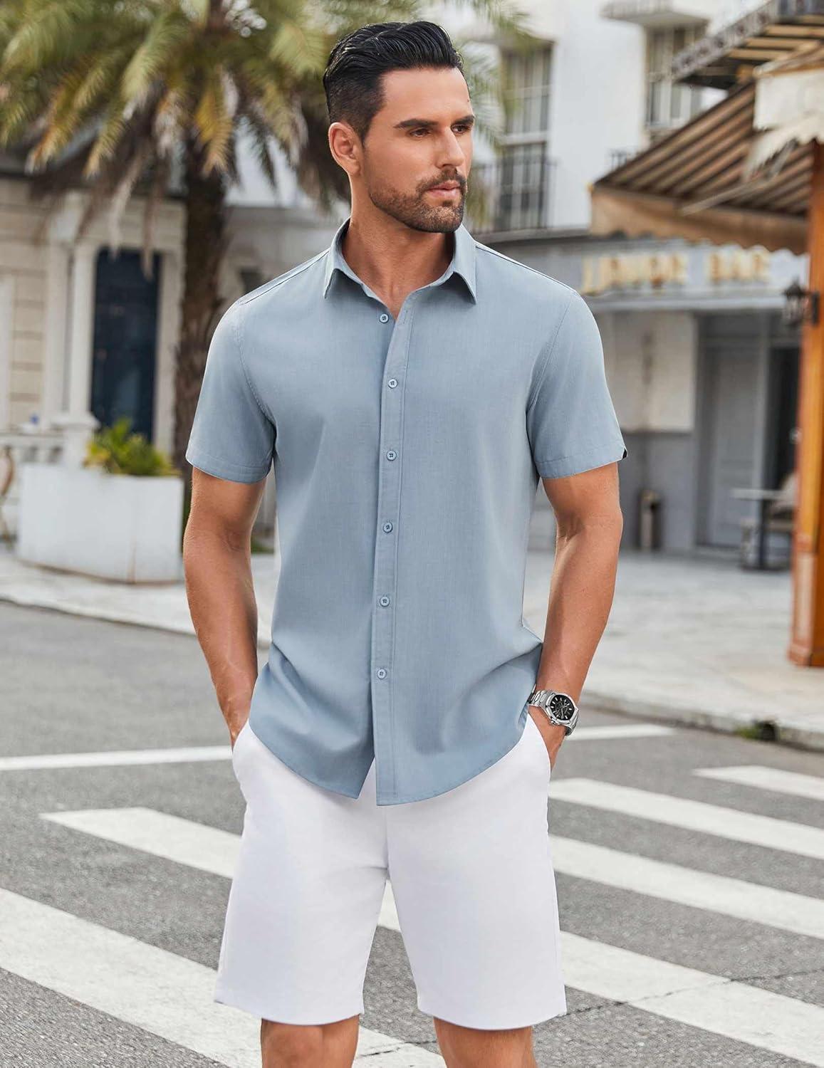 Save big on COOFANDY Mens Casual Shirts Short Sleeve Button Down Shirt Wrinkle Free Summer Shirt(Light Blue) during our summer blowout sale. Limited quantities available.