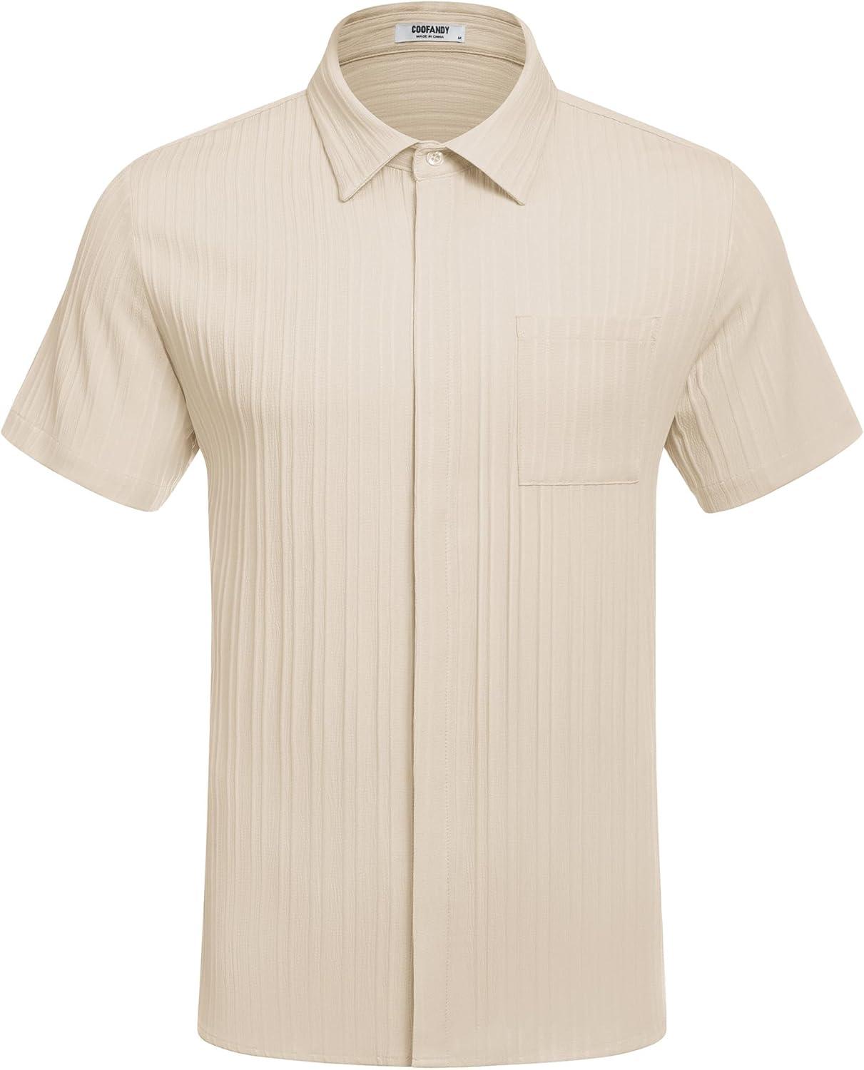 COOFANDY Mens Casual Shirts Short Sleeve Button Down Shirts Fashion Textured Summer Beach Shirt(Beige)