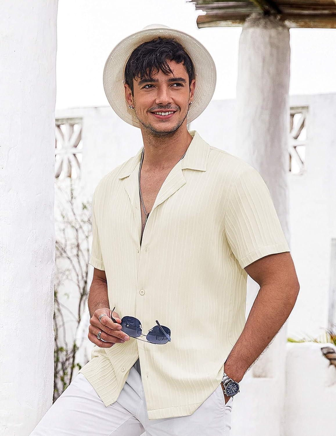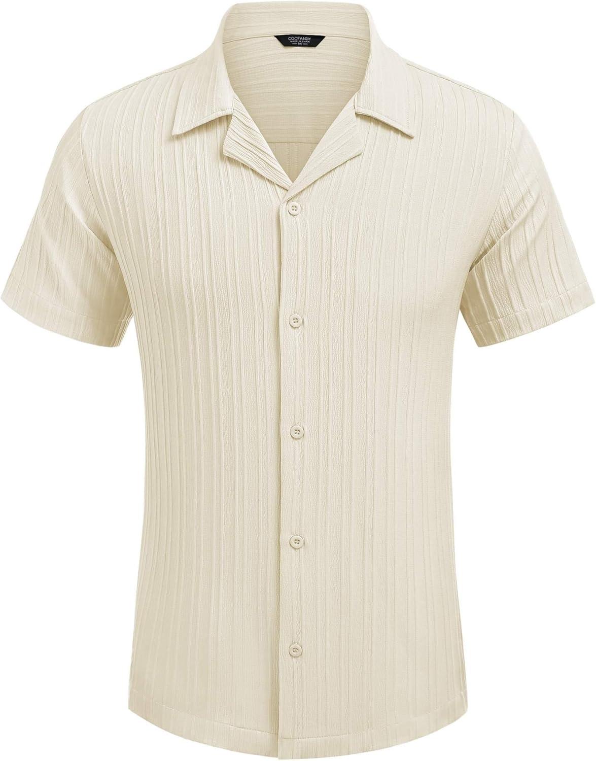 COOFANDY Men’s Casual Shirts Short Sleeve Button Down Shirts Fashion Textured Summer Beach Shirt(Beige)