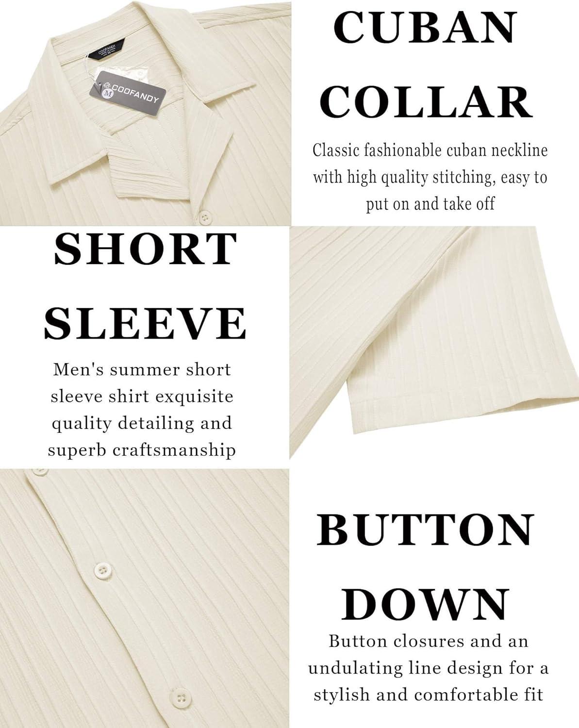 COOFANDY Men's Casual Shirts Short Sleeve Button Down Shirts Fashion Textured Summer Beach Shirt(Beige)