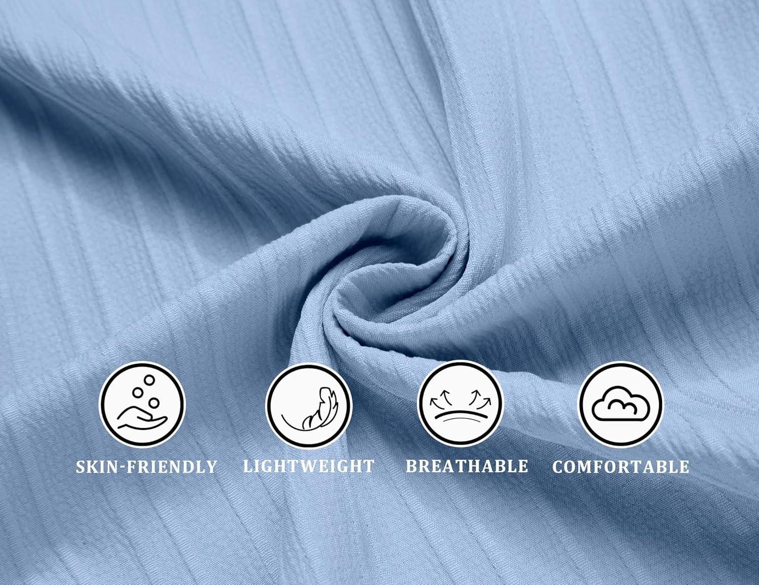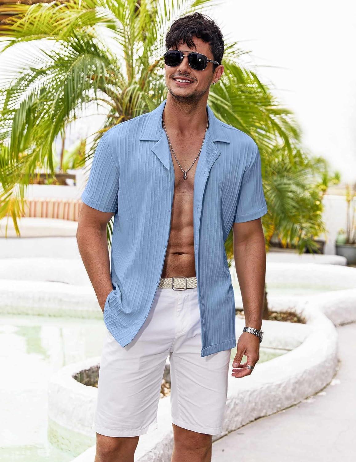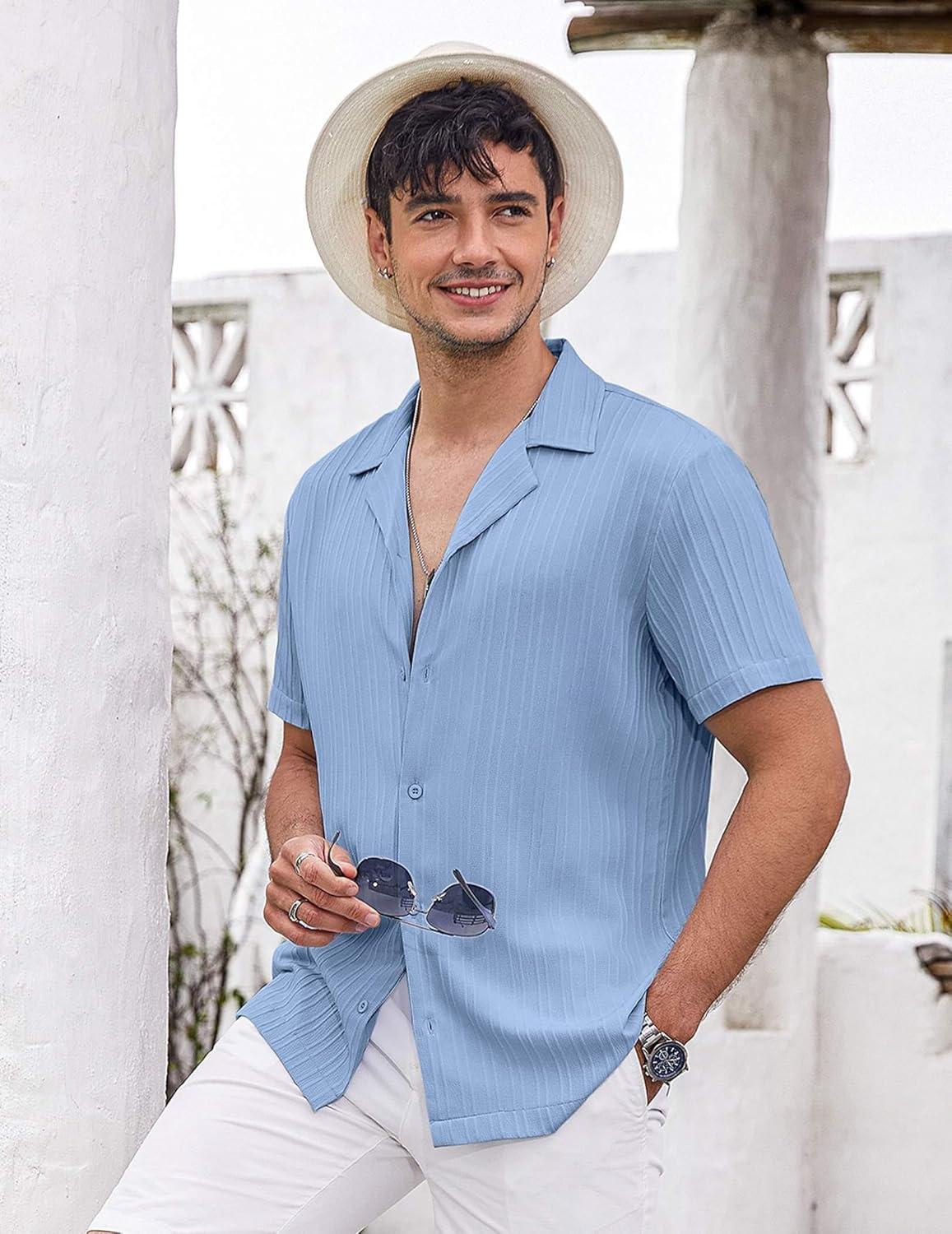 COOFANDY Men’s Casual Shirts Short Sleeve Button Down Shirts Fashion Textured Summer Beach Shirt(Blue)